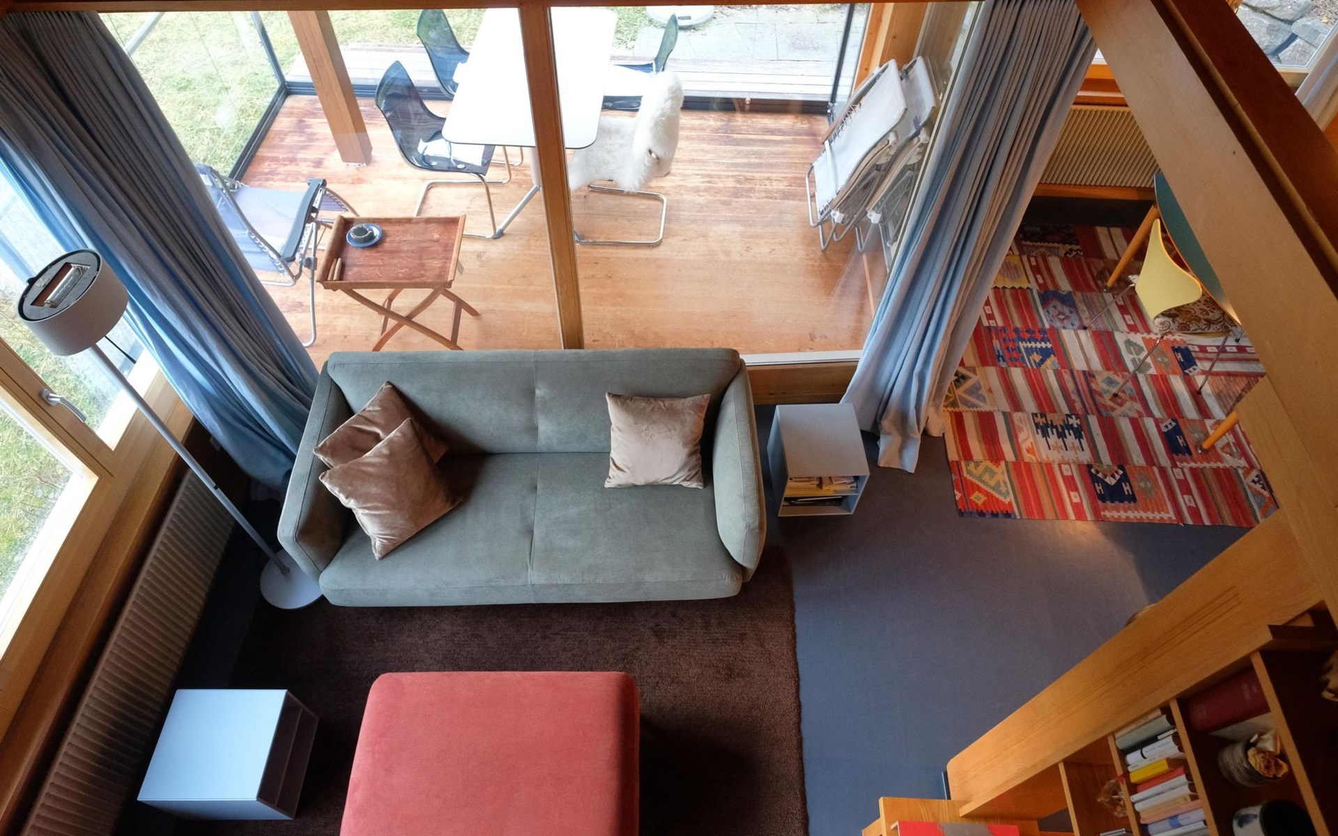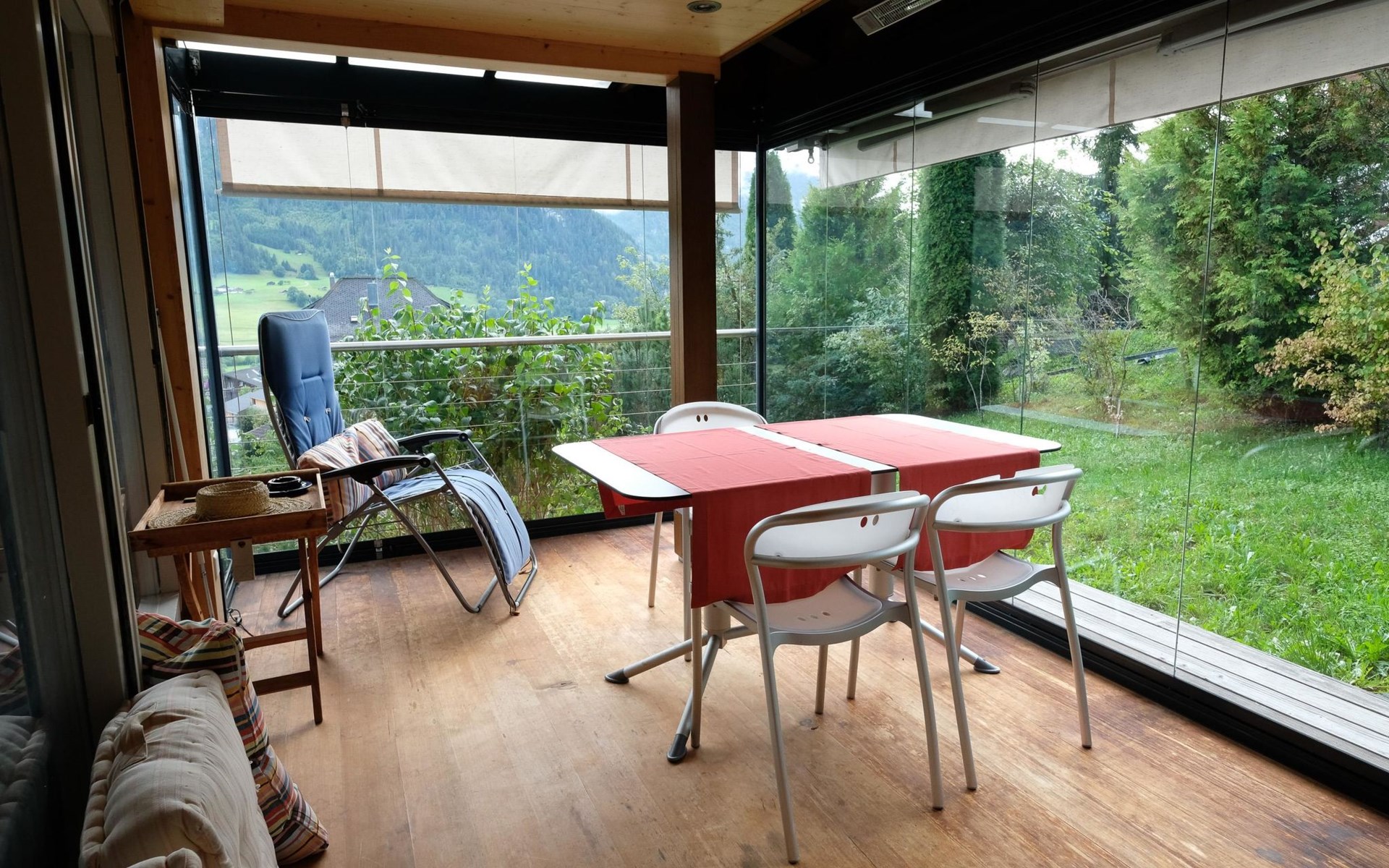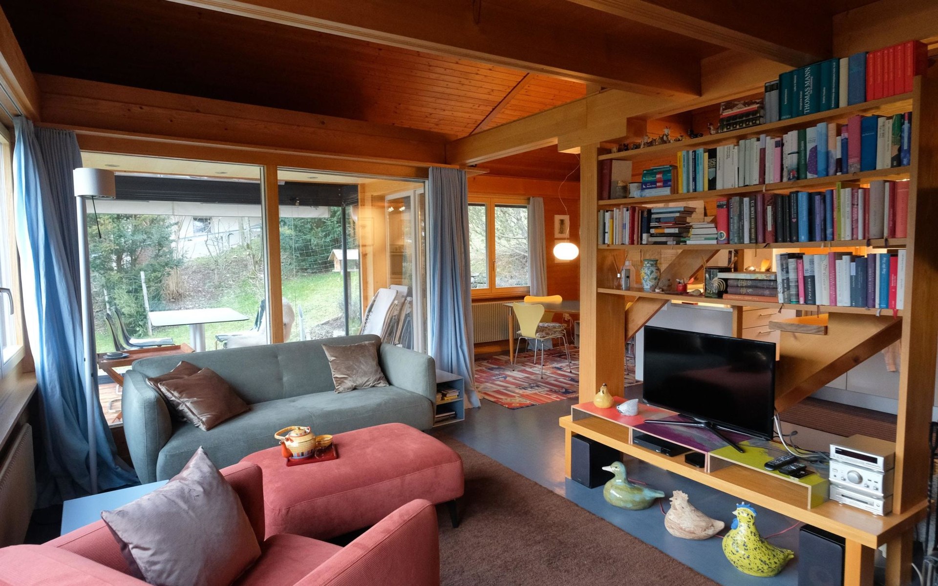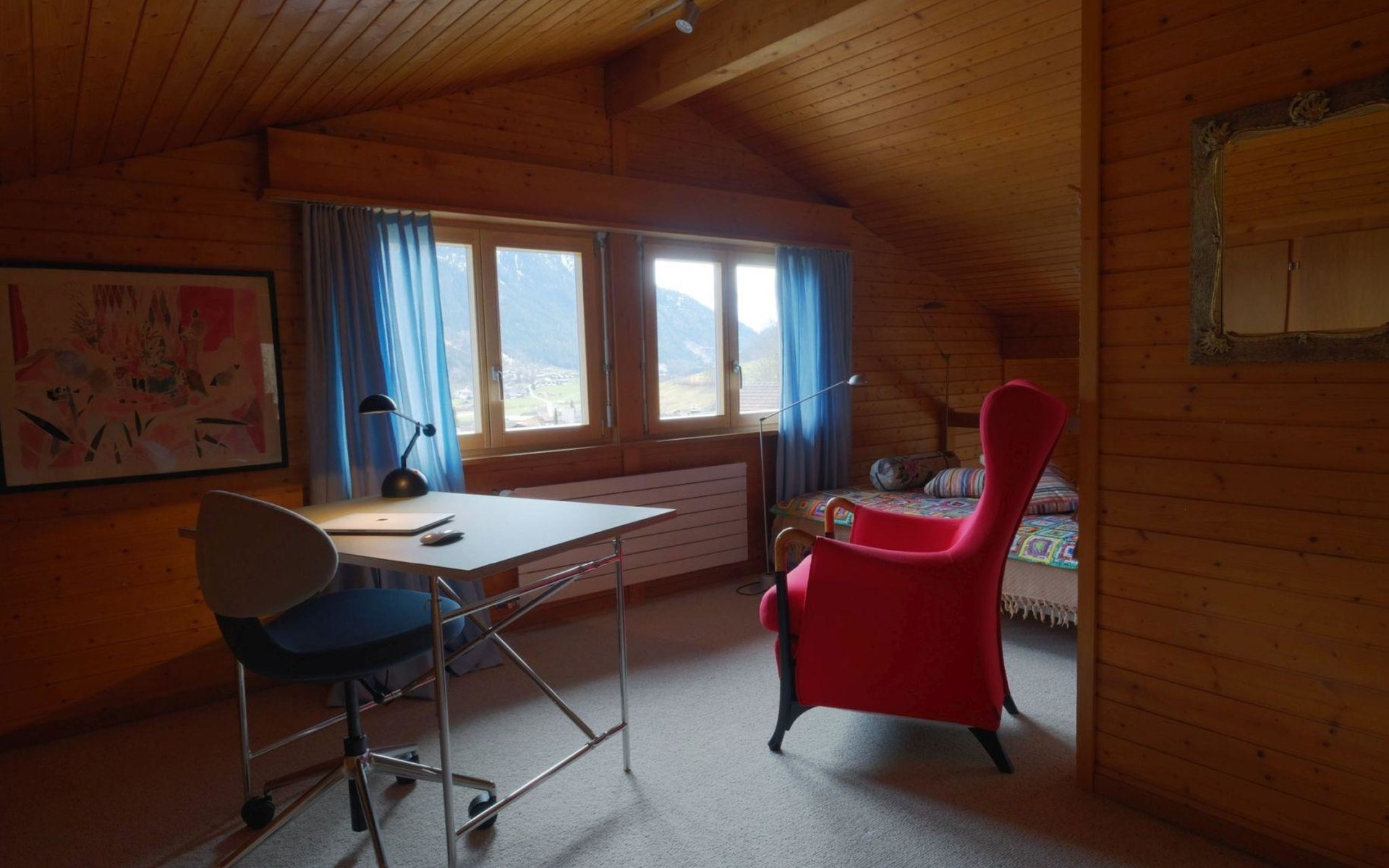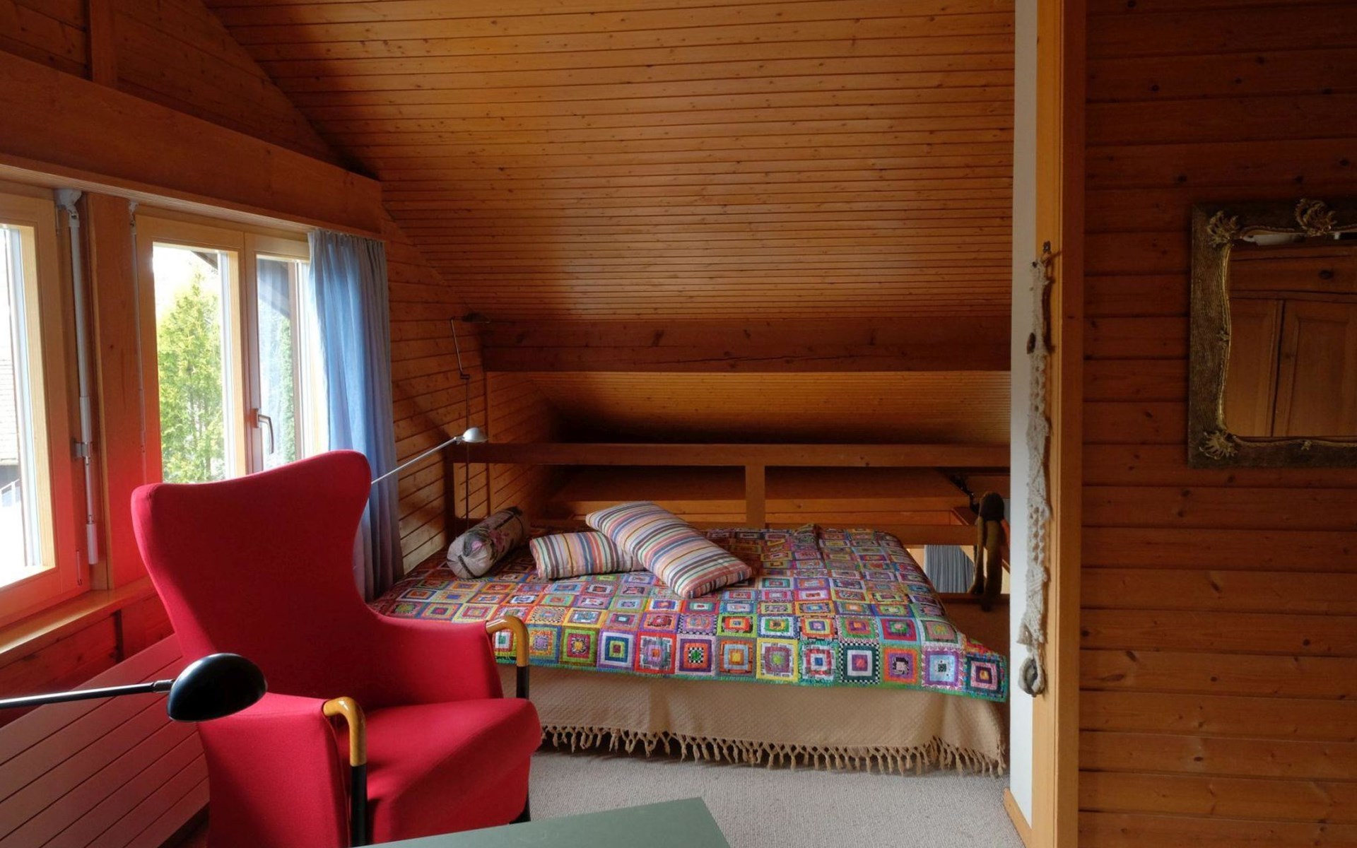 Hochparterre (Eingang): Grosses und helles Wohn-/Esszimmer mit Sofa, 2 Sesseln, TV, Teleboy mit über 250 Sendern, Apple TV und Netflix (eigenes Abo nötig), Essecke mit Esstisch. Offene Küche mit Geschirrspüler, Kapsel-Kaffeemaschine (Nespresso), Fondue- und Raclette-Set sowie diversen weiteren Küchengeräten. 1 Schlafzimmer mit Grand Lit (160x200cm). 1 Badezimmer mit Badewanne/WC. 1. Stock (Galerie): 1 separates Schlafzimmer mit 1 Grand Lit (140x200cm). 1 Grand Lit (140x200cm / automatisch verstellbares ergonomisches Bettsystem) auf der Galerie (kein abgeschlossener Raum). WiFi (1000MB/s).