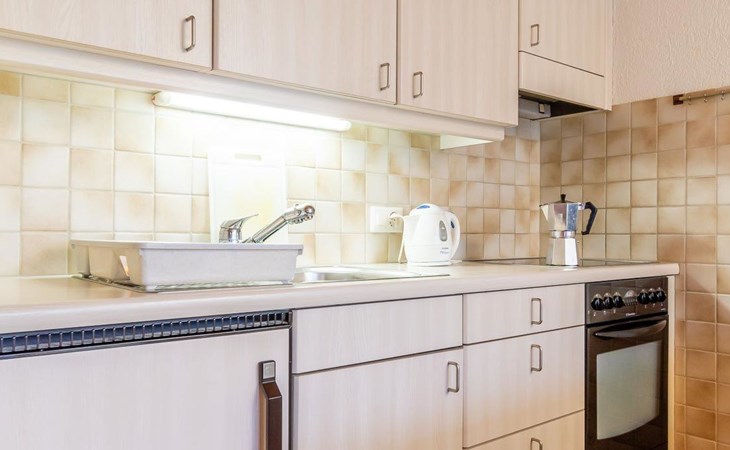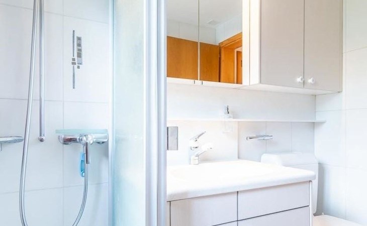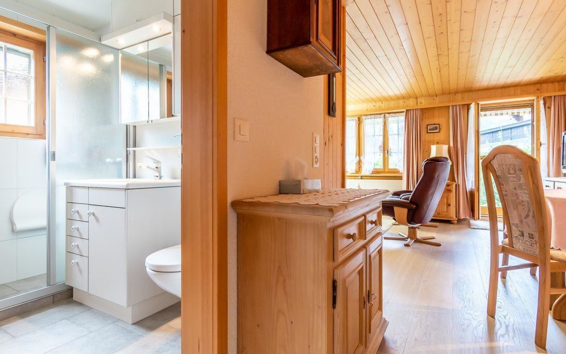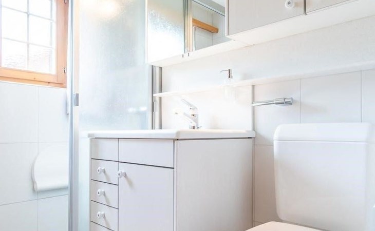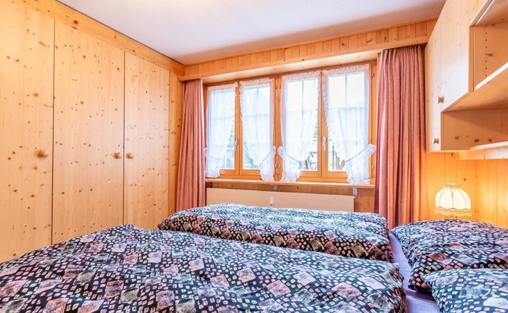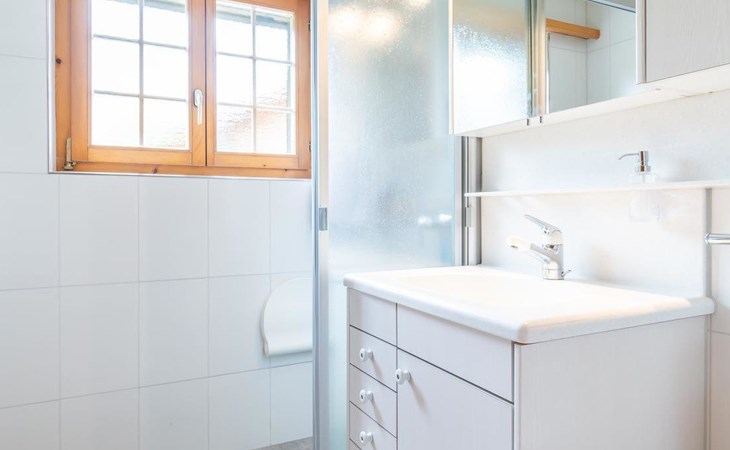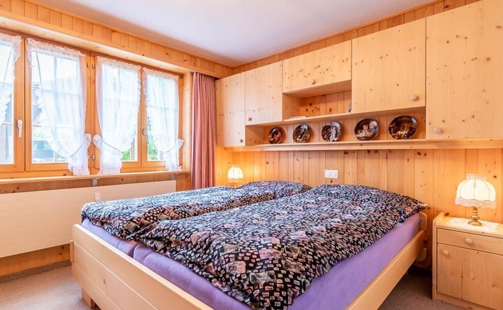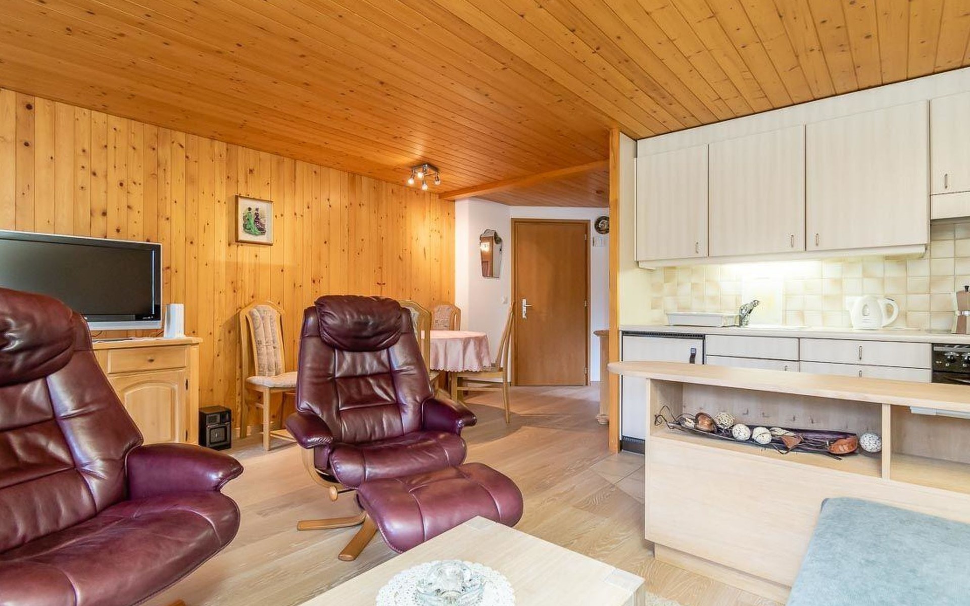 Wohn-/Esszimmer mit Esstisch, Bettsofa (80x200cm), 2 Sesseln, TV und offener Küche (u.a. ausgestattet mit Backofen, Kühlschrank mit Gefrierfach, Kapsel-Kaffeemaschine (Nespresso), Toaster, Wasserkocher sowie Raclette- und Fondue-Set). 1 Schlafzimmer mit 1 Doppelbett (2x90x200cm), TV und Einbauschrank. 1 Badezimmer mit Dusche und WC. WiFi.