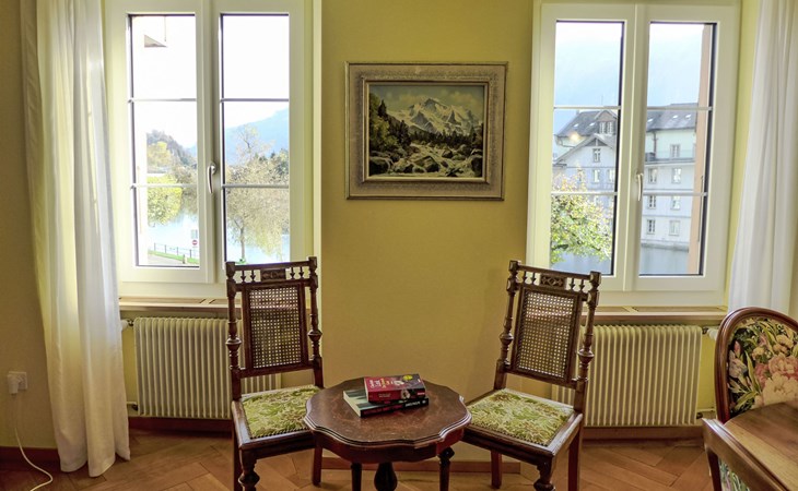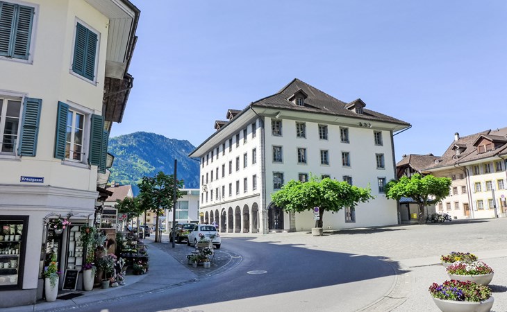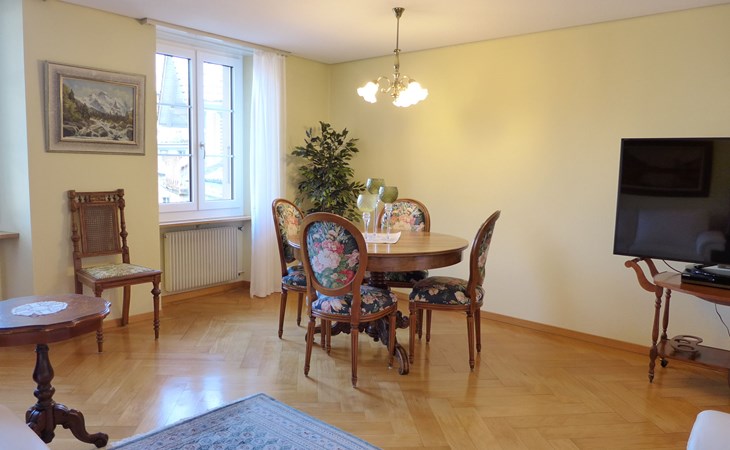 Historisches Mehrfamilienhaus "Bieri-Haus", auf 3 Stockwerken. Im Ortszentrum von Unterseen, 500 m vom Zentrum von Interlaken, belebte, sonnige Lage, im Herzen der Stadt. Im Hause: Zentralheizung. Einkaufsgeschäft 500 m, Supermarkt 350 m, Restaurant 100 m, Bäckerei 100 m, Bushaltestelle 50 m, Bahnstation "Interlaken West" 700 m, Freibad 800 m, Hallenbad. Golfplatz (18 Loch) 3 km, Tennis 1.1 km, Tennishalle 750 m, Minigolf 800 m, Wanderwege ab Haus 50 m, Skisportanlagen 15 km, Kinderspielplatz 150 m. Nahe gelegene Sehenswürdigkeiten: Jungfraujoch, Freilichtmuseum Ballenberg, Beatushöhlen. Bekannte Skigebiete sind gut erreichbar: Jungfrau Ski Region. Bekannte Seen in der Umgebung sind gut erreichbar: Thunersee, Brienzersee.