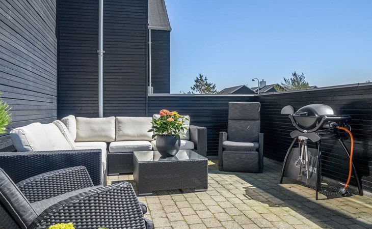 Einfamilienhaus, Baujahr 2007. 25 m vom Meer. Zur Alleinbenutzung: Grundstück 188 m2. Terrasse (45 m2). Im Hause: Waschmaschine, Wäschetrockner. Parkplatz beim Haus. Lebensmittelgeschäft 500 m. Golfplatz 14 km. Der Besitzer akzeptiert keine Jugendgruppen.