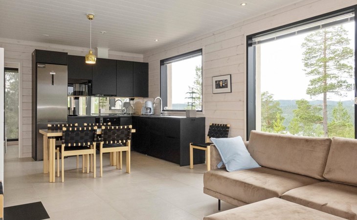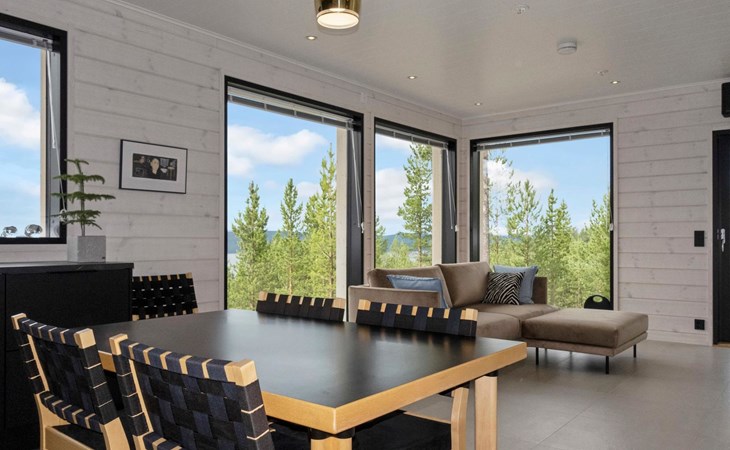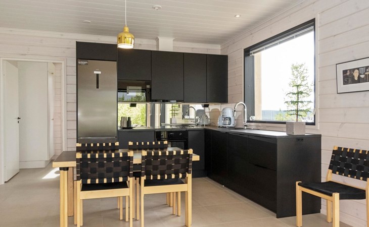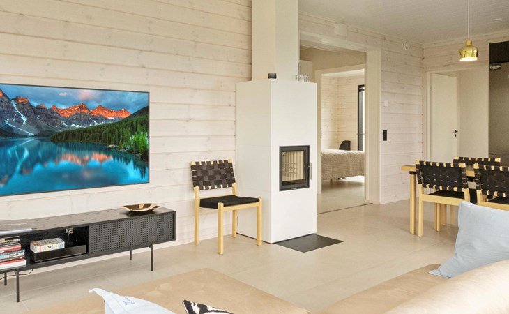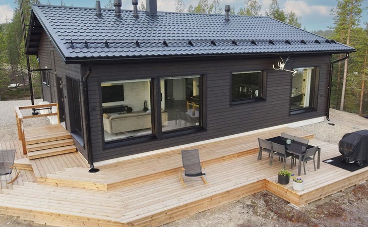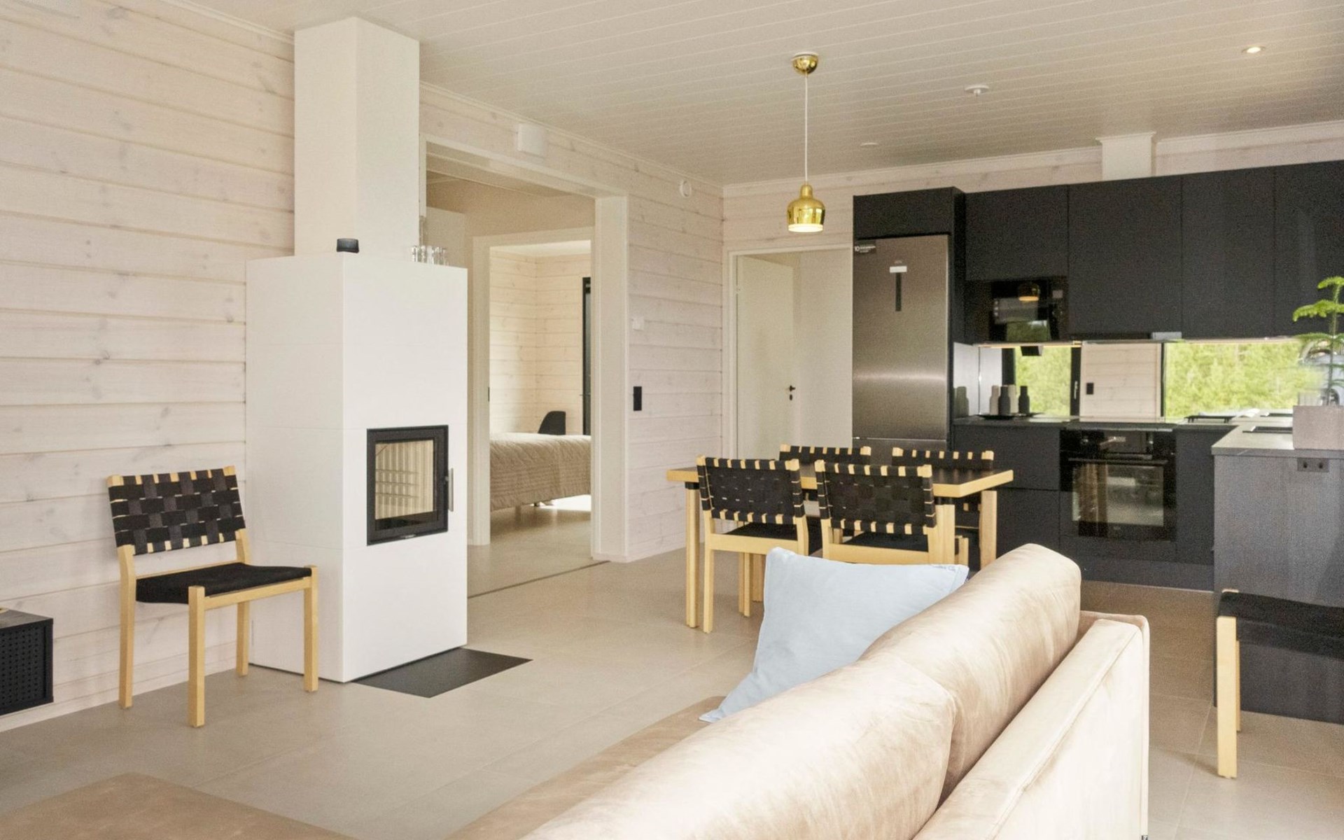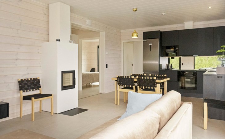 Wooden villa. Sofa bed in the living room/kitchen, 2 motorized beds in the bedroom, beds width 90 cm, in the another bedroom 2 beds (width 90 cm), sauna, washroom and separate WC.