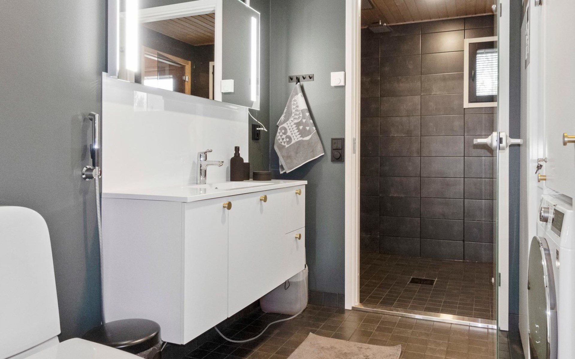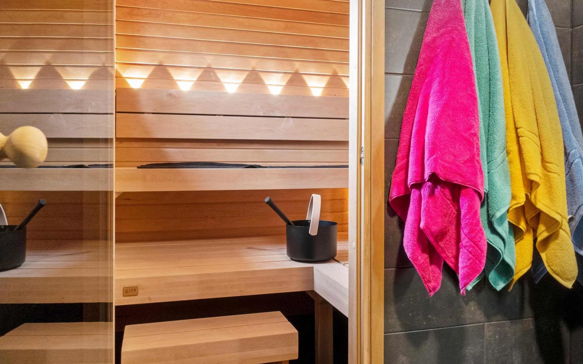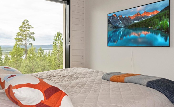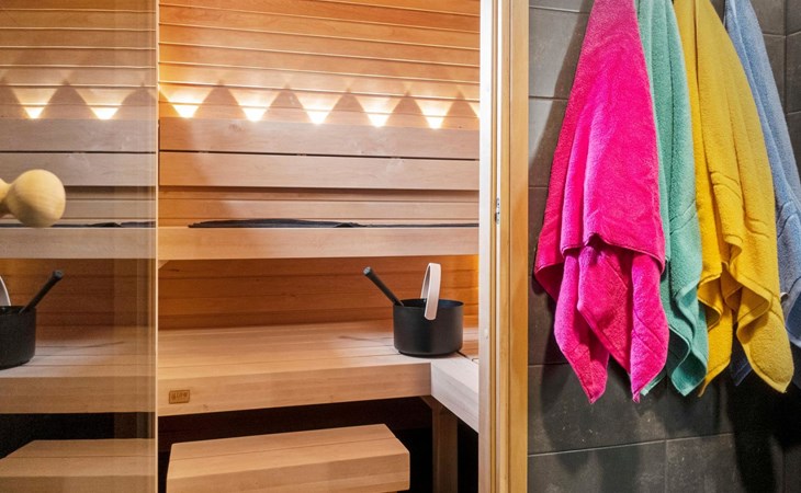 Wooden villa. Sofa bed in the living room/kitchen, 2 motorized beds in the bedroom, beds width 90 cm, in the another bedroom 2 beds (width 90 cm), sauna, washroom and separate WC.