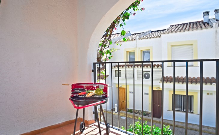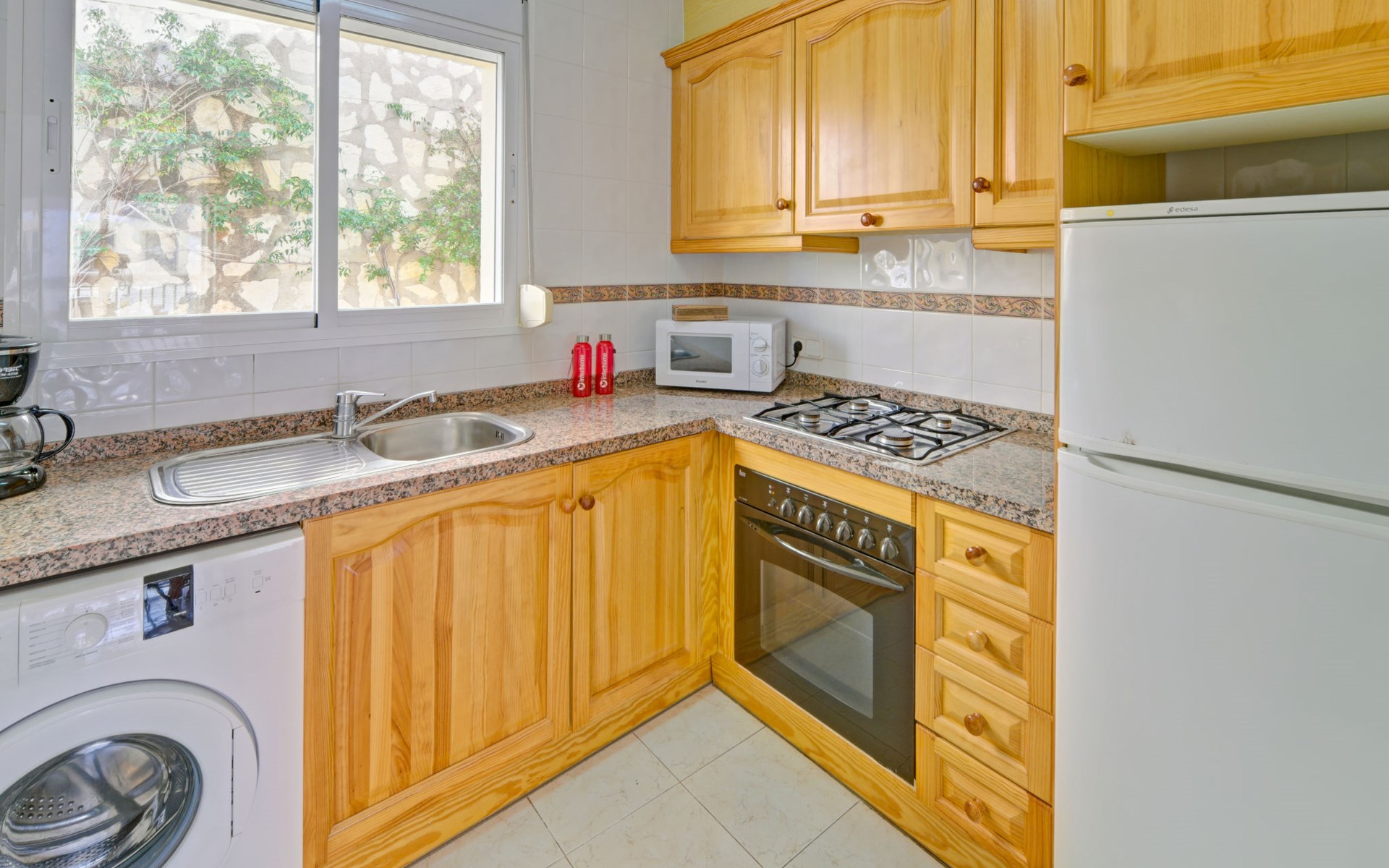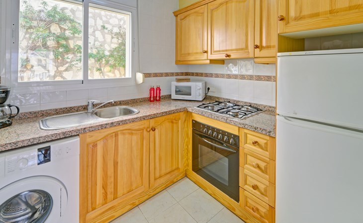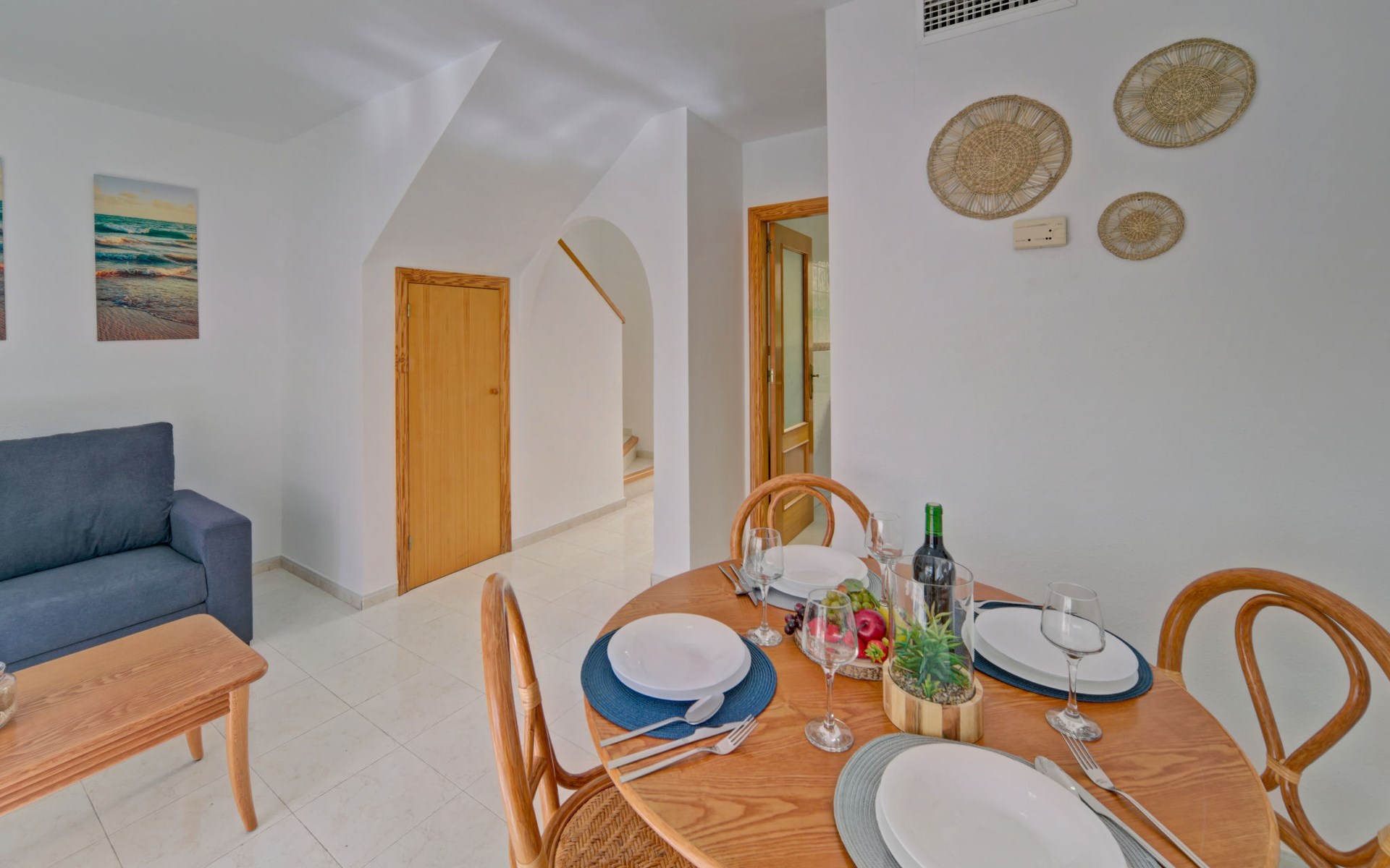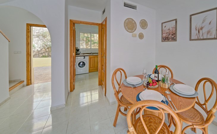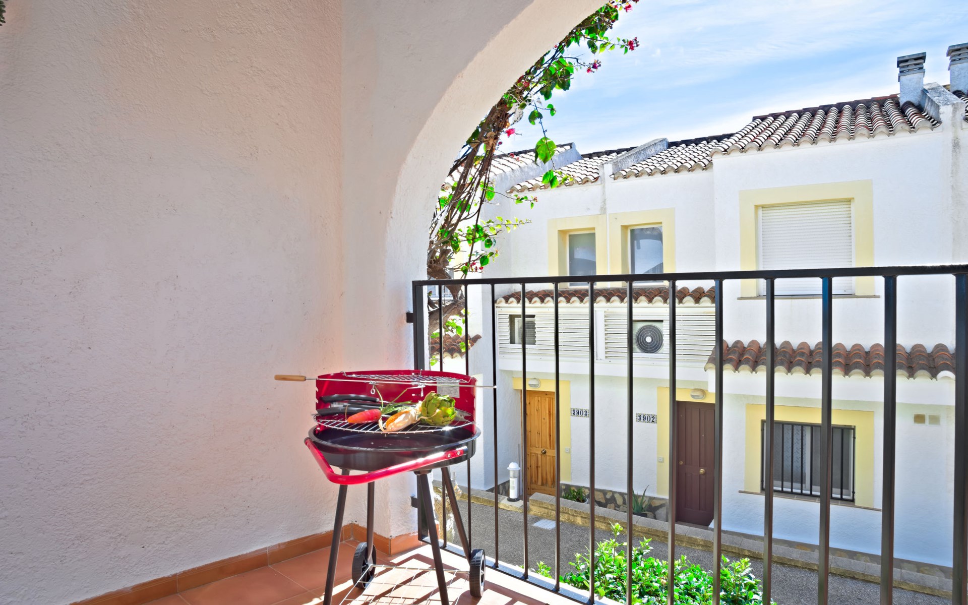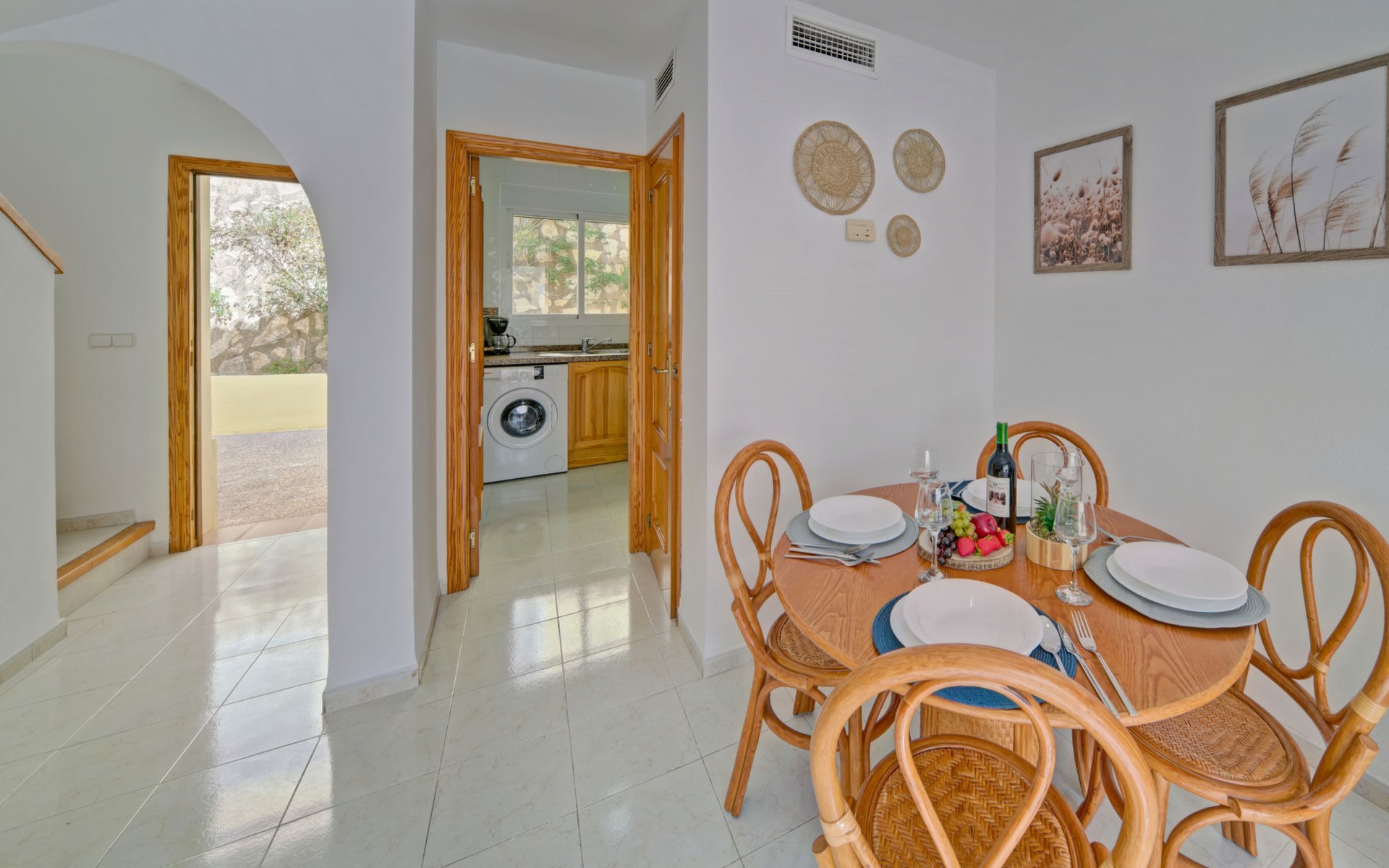 Gran Sol: Modernes Reihenhaus "Imperial Park". 3.3 km vom Zentrum von Calpe, belebte, sonnige, erhöhte Lage, 2.5 km vom Meer, 2.5 km vom Strand. Zur Mitbenutzung: grosser, gepflegter terrassierter Garten (eingezäunt), Naturgarten, 3 Schwimmbäder (saisonale Verfügbarkeit: 01.Jan. - 31.Dez. Öffnungszeiten Schwimmbad: 10:00-20:00) mit Innentreppe. Ungleichmässige Schwimmbadform, Kinderbecken, Aussendusche, Sitzplatz, Pergola, Gartenmöbel. Im Hause: Empfang, Fahrstuhl. Einkaufsgeschäft 2 km, Supermarkt 2 km, Restaurant 50 m, Bar 200 m, Café 50 m, Bushaltestelle 1.3 km, Sandstrand "Playa De La Fosa" 3 km, Tauchzentrum 1.5 km. Sporthafen 2.5 km, Jacht-Hafen 2.5 km, Golfplatz (18 Loch) 10 km, Surfschule 2.5 km, Segelschule 2.5 km, Tennis 2.8 km, Minigolf 3 km. Nahe gelegene Sehenswürdigkeiten: Aqualandia, Mundomar, Terra Mítica, Terra Natura, y Benidorm Palace (Benidorm). Bitte beachten: Fahrzeug empfohlen. Öffnungszeiten der Rezeption 10:00-15:00 Uhr. Geeignet für Familien. Bitte beachten: Bewachte Residenz. Weitere Unterkünfte sind buchbar. Alle Häuser/Wohnungen sind individuell eingerichtet. Die Nachbarschaft ist sehr lärmempfindlich. Ruhe und gutes Benehmen wird erwartet.
