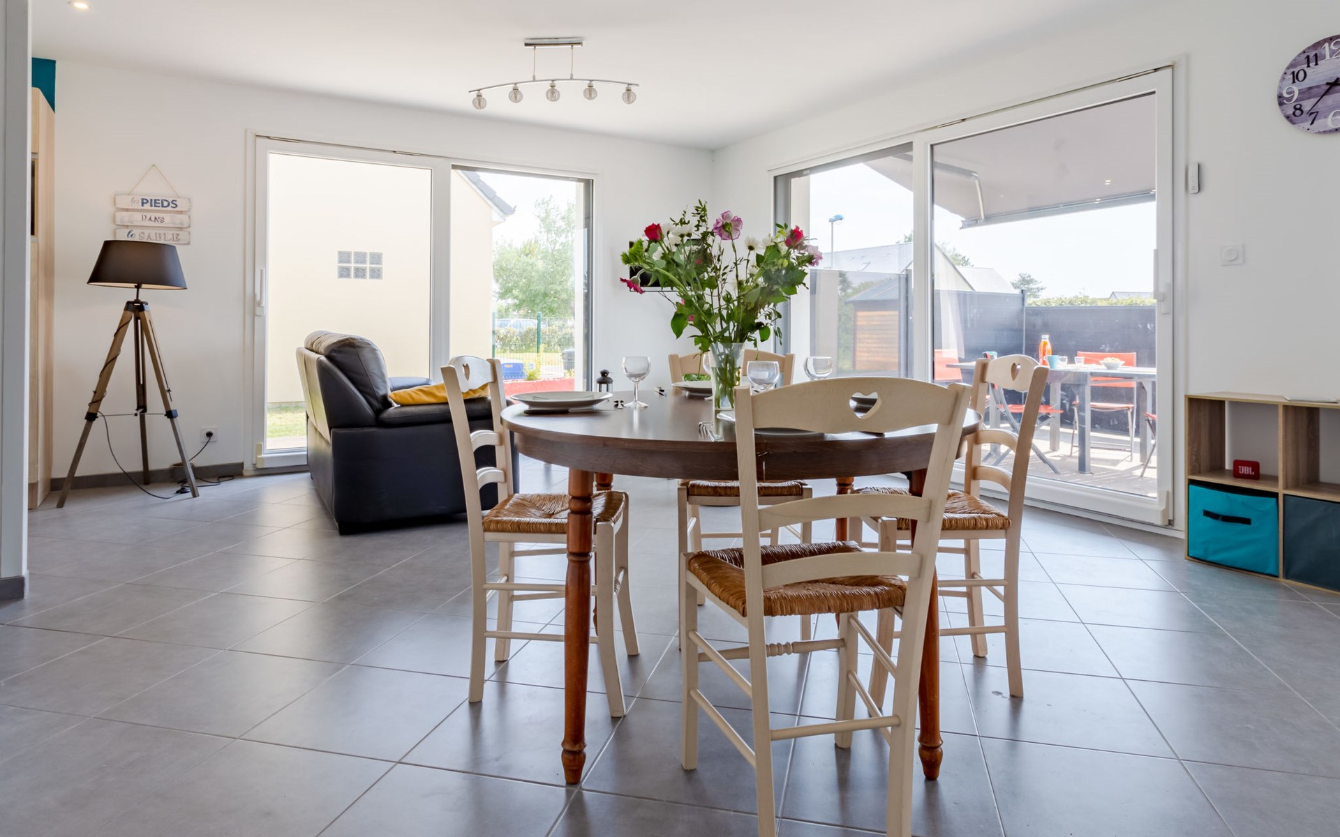 Modernes, freistehendes Einfamilienhaus "Chalmeignes", Baujahr 2019. 4.5 km vom Zentrum von Saint-Germain-sur-Ay, 13 km vom Zentrum von La Haye-du-Puits, 27 km vom Zentrum von Coutances, in einem Wohnquartier, 800 m vom Meer. Zur Alleinbenutzung: Grundstück 535 m2 (eingezäunt), Parkplatz (für 2 Autos) auf dem Grundstück. Einkaufsgeschäft 400 m, Bushaltestelle "Abbatiale" 9 km, Sandstrand 800 m. Golfplatz (18 Loch) 27 km. Die Residenz wird durch elektrische Tore geschlossen.
