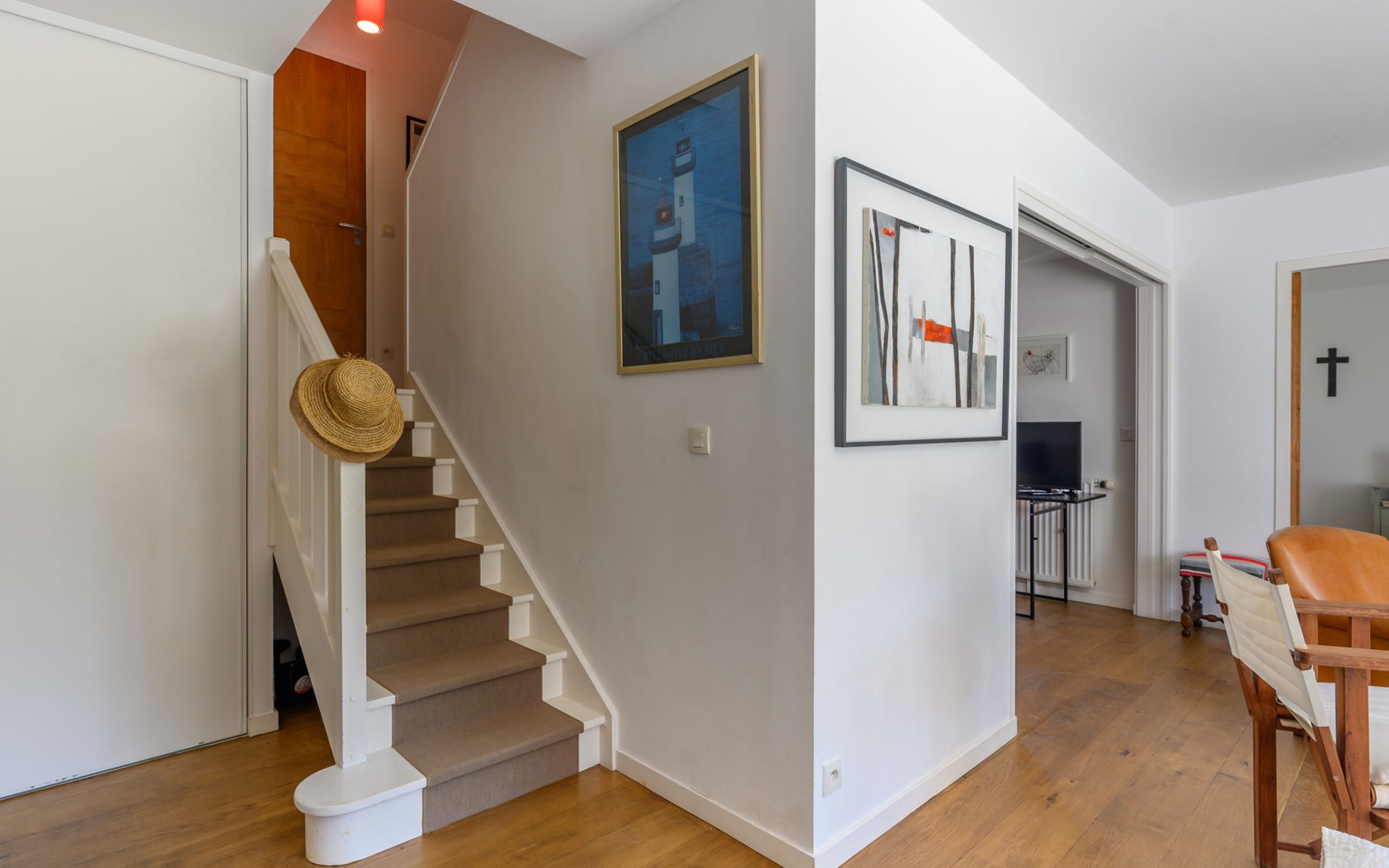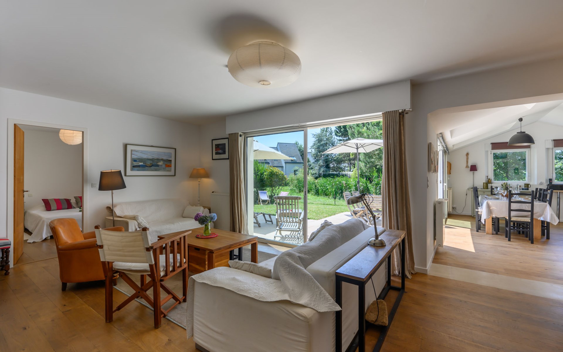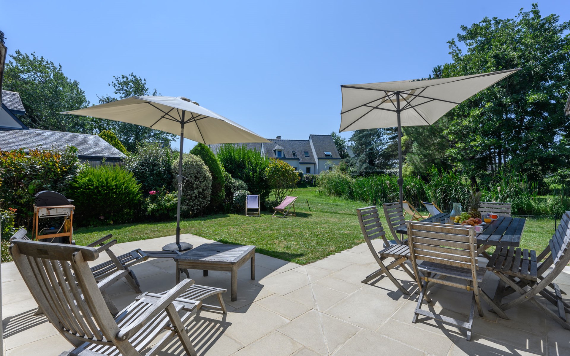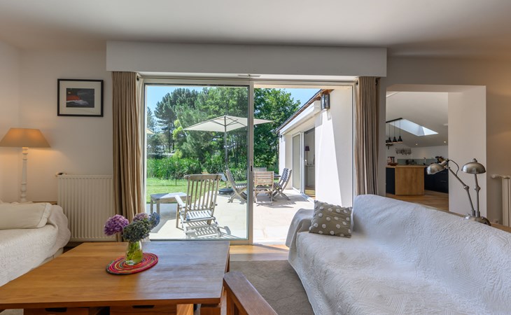 Einfamilienhaus "Les Roseaux". Im Ort, 800 m vom Zentrum von Carnac Plage, in einem Wohnquartier, 500 m vom Meer, vom Strand. Zur Alleinbenutzung: Garten 500 m2 (nicht eingezäunt), Parkplatz beim Haus. Einkaufsgeschäft 900 m, Lebensmittelgeschäft, Restaurant 300 m, Bar, Bäckerei 950 m, Café, Sandstrand "Légenèse" 500 m. Golfplatz (18 Loch) 15 km, Surfschule 5 km, Segelschule 1 km. Nahe gelegene Sehenswürdigkeiten: Yacht club de Carnac 800 m, Alignements du Ménec 3 km, Port de la Trinité-sur-mer 6 km, Presqu'île de Quiberon 15 km, Auray & Saint Goustan 15 km, Vannes et les remparts 34 km. Wandergebiete: Golf du Morbihan 25 km.