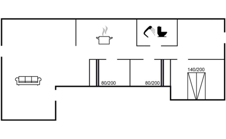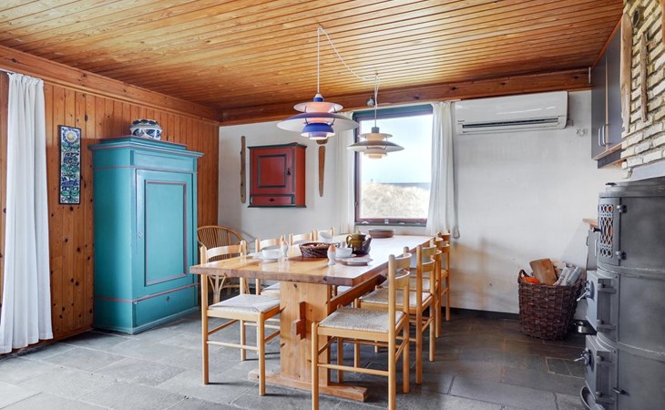 Einfamilienhaus, Baujahr 1970. 200 m vom Meer. Zur Alleinbenutzung: naturbelassenes Grundstück 2'500 m2. Grill, Kinderspielplatz. Im Hause: Waschmaschine. Parkplatz beim Haus. Lebensmittelgeschäft 4 km. Der Besitzer akzeptiert keine Jugendgruppen.