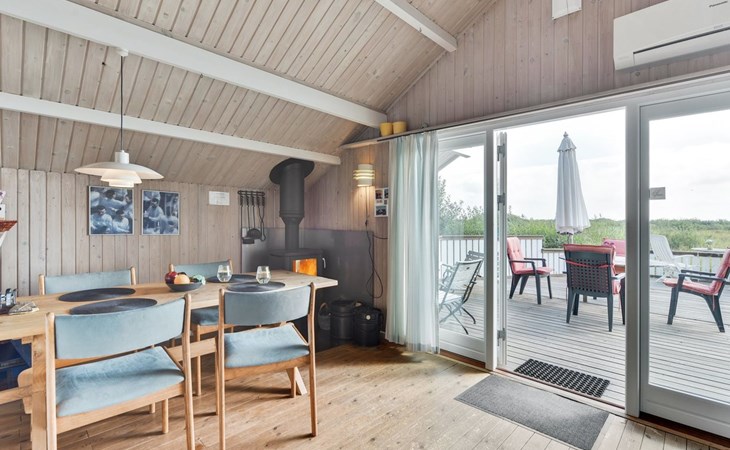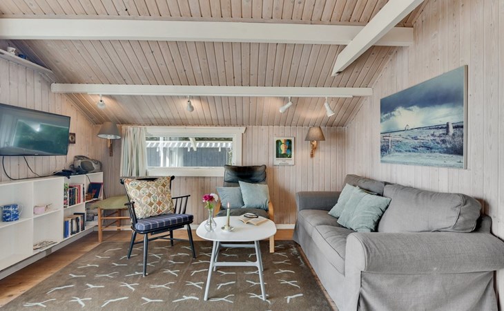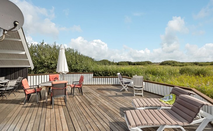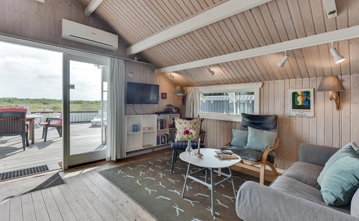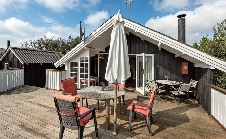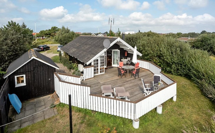 Einfamilienhaus, Baujahr 1983. 600 m vom Meer. Zur Alleinbenutzung: naturbelassenes Grundstück 1'200 m2. Terrasse (66 m2), Kinderspielplatz. Im Hause: Sauna, Waschmaschine. Parkplatz beim Haus. Lebensmittelgeschäft 700 m. Der Besitzer akzeptiert keine Jugendgruppen.