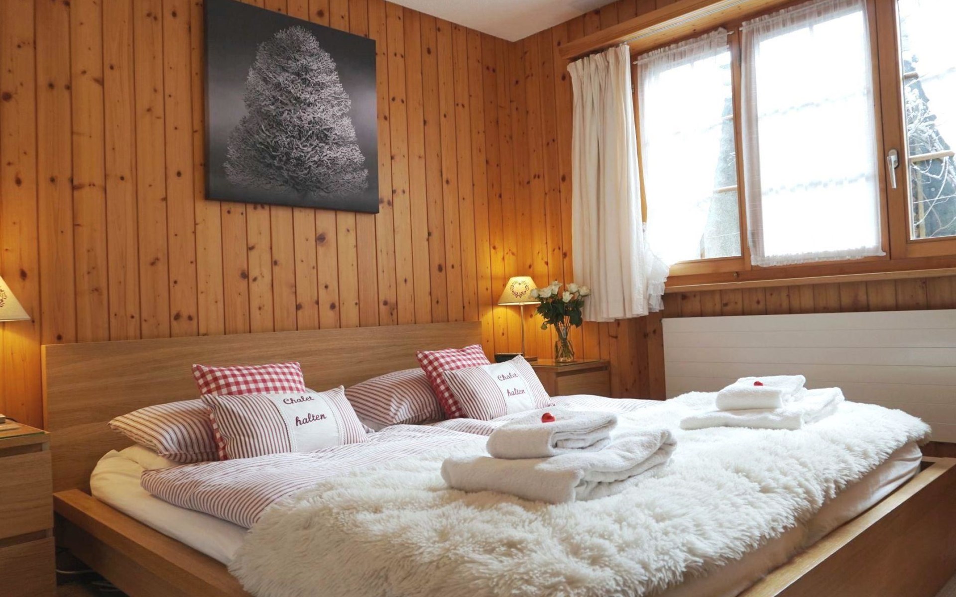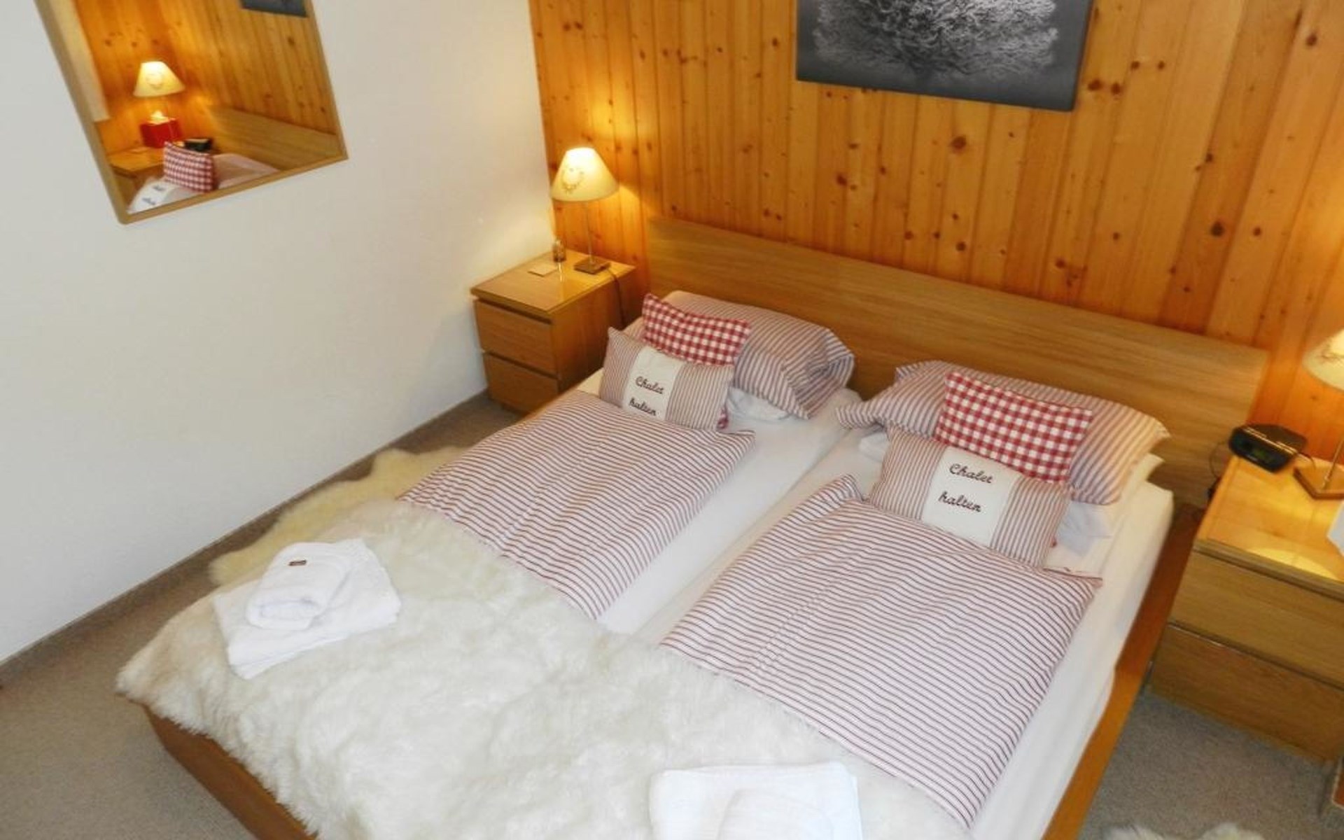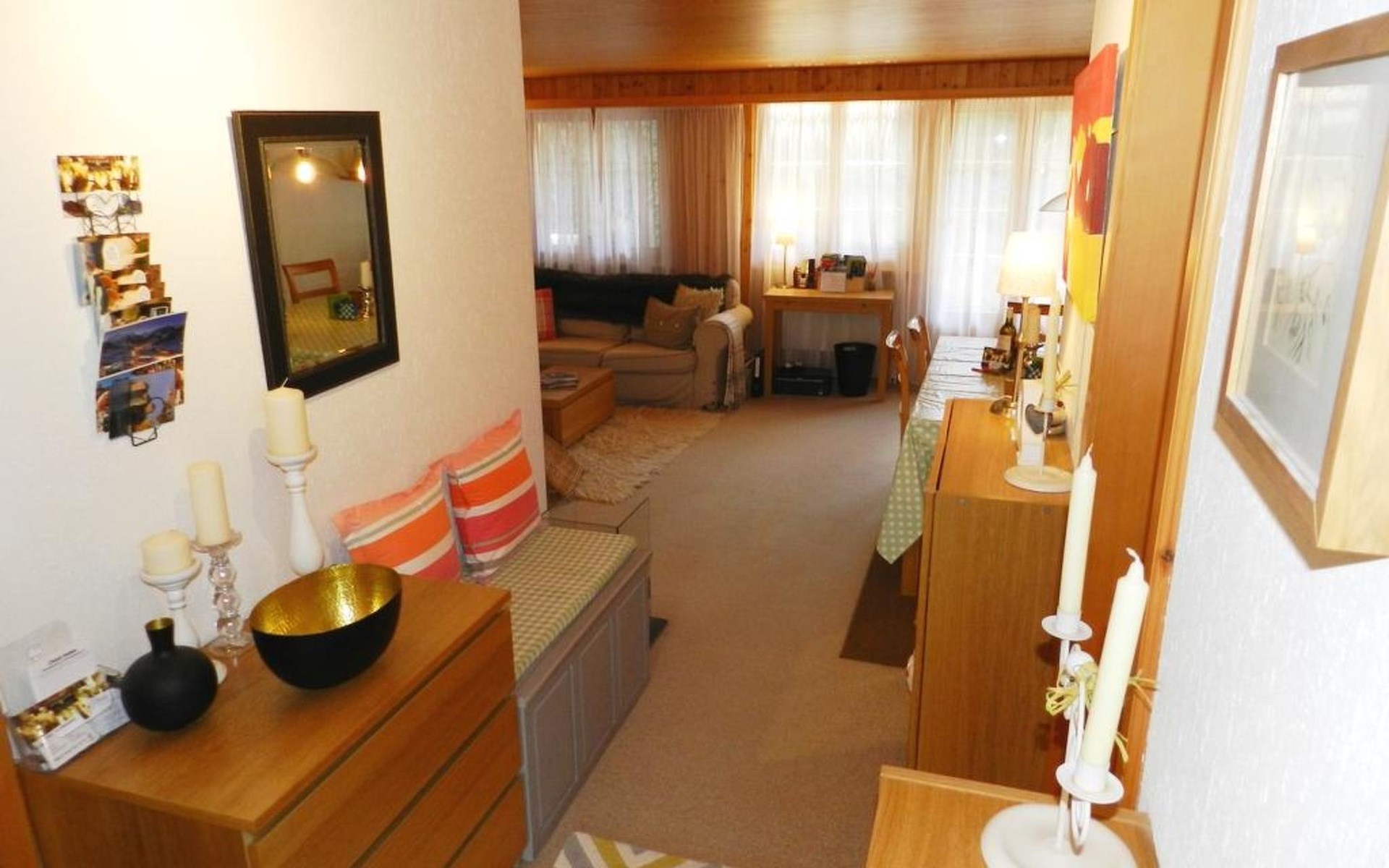 Wohn-/Esszimmer mit offener Küche (u.a. ausgestattet mit Kerramikherd, Backofen, Mikrowelle, Kühlschrank mit Gefrierfach, Geschierspülmaschine, Kapsel-Kaffeemaschine (Nespresso), Fondue- und Raclette-Set, Wasserkocher), Esstisch, Sitzgruppe und TV, Playstation (1), DVD/CD/Radio/Dolby surround System, kleinem Bio-Ethanol-Kamin. Beide Schlafzimmer haben Doppelbetten (2x90x190cm und 2x90x200cm). 1 Badezimmer mit Dusche/WC. WiFi. Kinderbett (71x112cm) inkl. Bettwäsche und Kinderhochstuhl vorhanden.