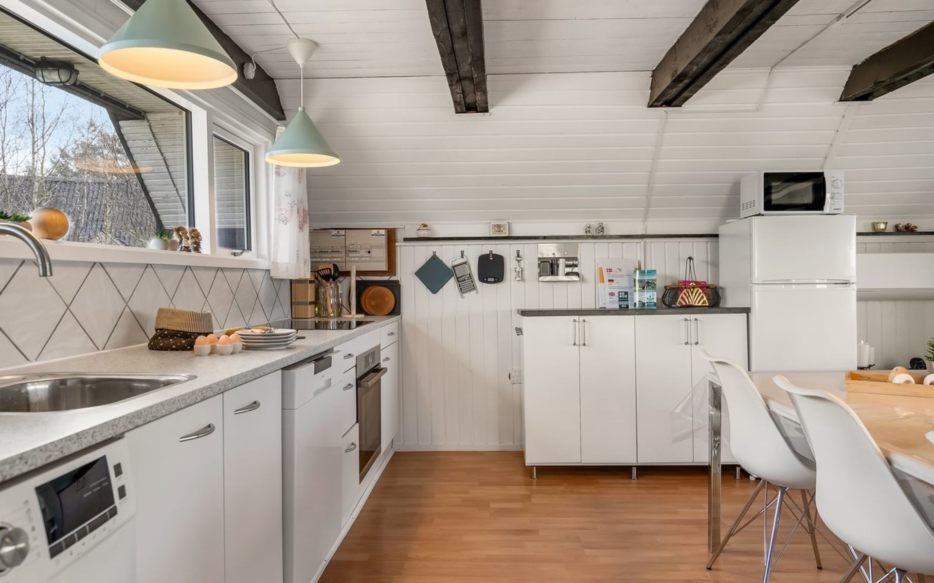Einfamilienhaus, Baujahr 1969. 900 m vom Meer. Zur Alleinbenutzung: Grundstück 1'682 m2, gepflegter Garten. Grill. Im Hause: Sauna, Tischfussball, Waschmaschine. Parkplatz beim Haus. Lebensmittelgeschäft 1.5 km. Der Besitzer akzeptiert keine Jugendgruppen.