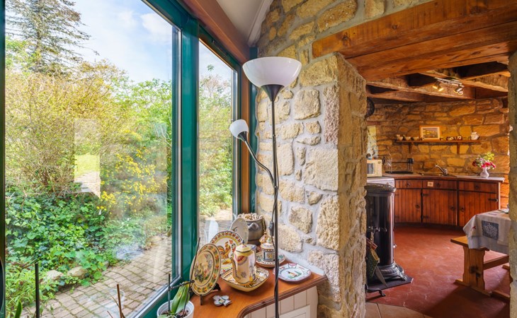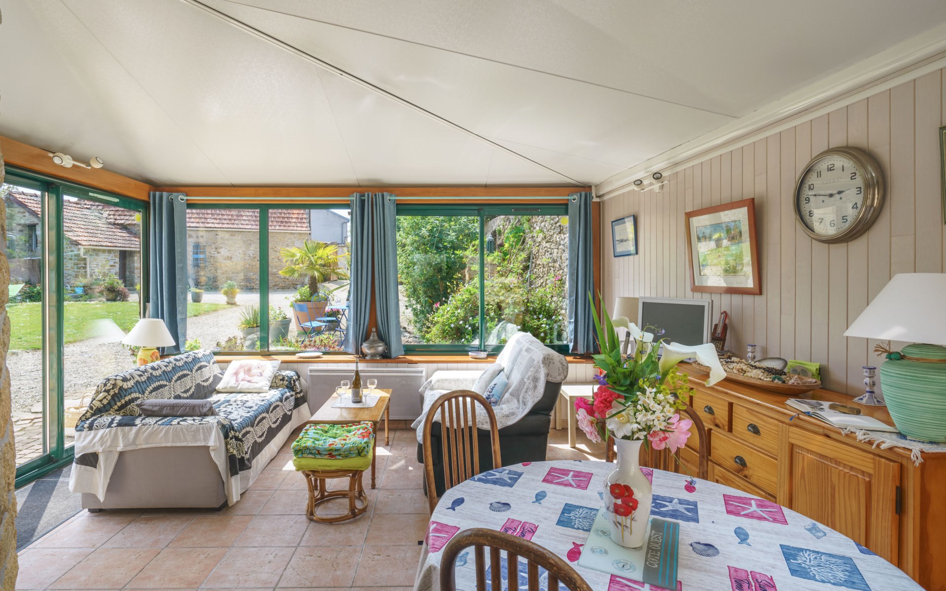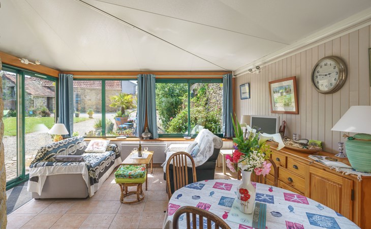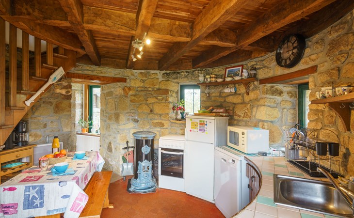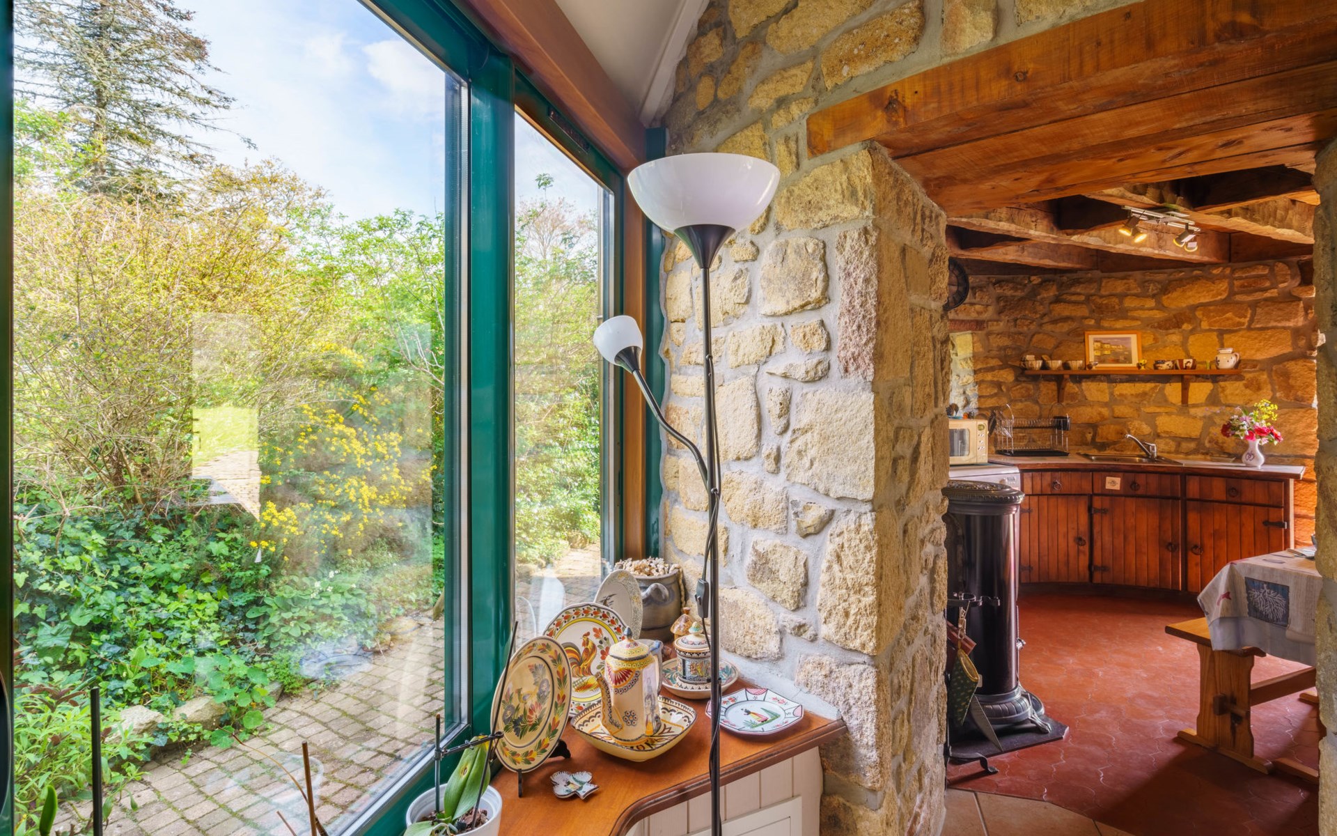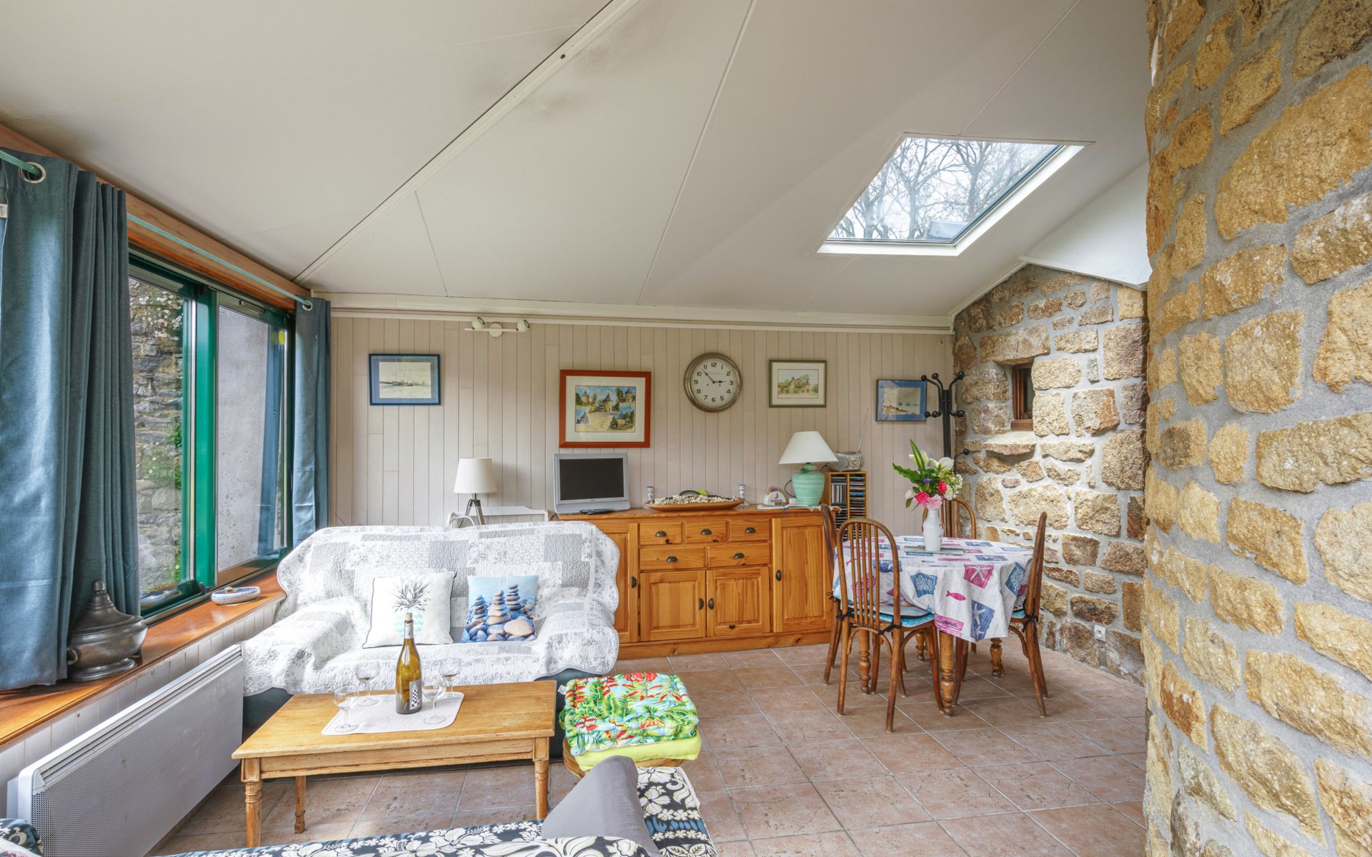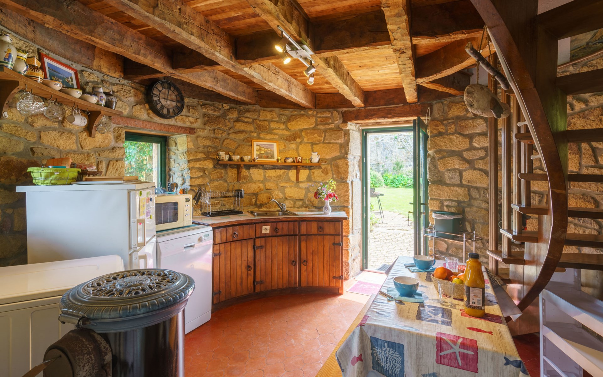 Roscanvel 11 km von Crozon: Einfamilienhaus "Le Pigeonnier". Ausserhalb des Ortes, 1 km vom Zentrum, ruhige Lage, 800 m vom Meer, 800 m vom Strand. Zur Alleinbenutzung: Park 1 ha, Garten 500 m2 (eingezäunt) mit Rasen und Blumen, Parkplatz auf dem Grundstück. Einkaufsgeschäft, Lebensmittelgeschäft 300 m, Supermarkt 5 km, Restaurant 300 m, Fahrradverleih 200 m, Bushaltestelle 11 km, Sandstrand "du petit Port de Roscanvel" 800 m. Nahe gelegene Sehenswürdigkeiten: Crozon 11 km, Morgat 12 km, Quimper 65 km. Wandergebiete: GR34 200 m. Bitte beachten: Fahrzeug empfohlen. Babyausstattung auf Anfrage (inkl.).