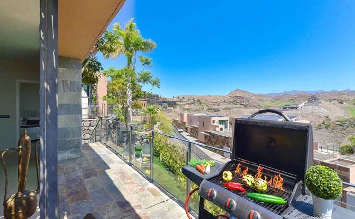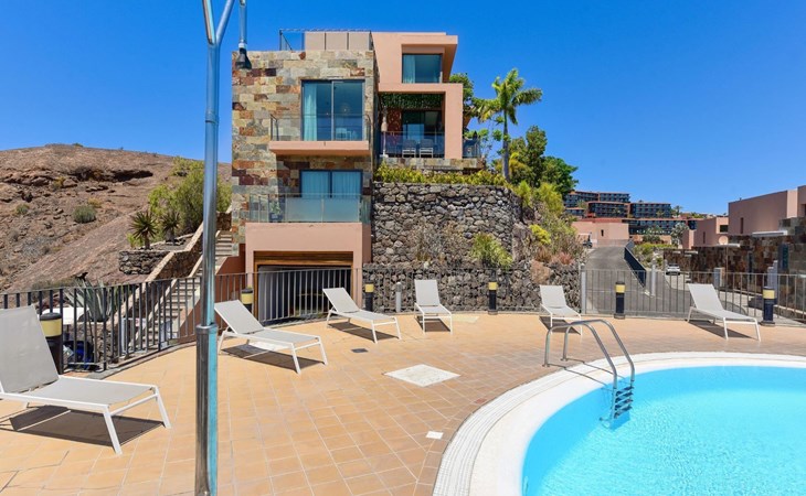 Moderne, komfortable Villa "Los Lagos 36". Am Ortsrand Maspalomas, alleinstehende, ruhige Lage, im Grünen. Zur Mitbenutzung: 2 Schwimmbäder (saisonale Verfügbarkeit: 01.Jan. - 31.Dez.). Zur Alleinbenutzung: Grundstück (eingezäunt). Im Hause: Klimaanlage. Parkplatz auf dem Grundstück, öffentliche Parkplätze auf der Strasse. Bushaltestelle "Las Crucitas" 19 km. Der Besitzer akzeptiert keine Jugendgruppen. Die Nachbarschaft ist sehr lärmempfindlich. Ruhe und gutes Benehmen wird erwartet.
