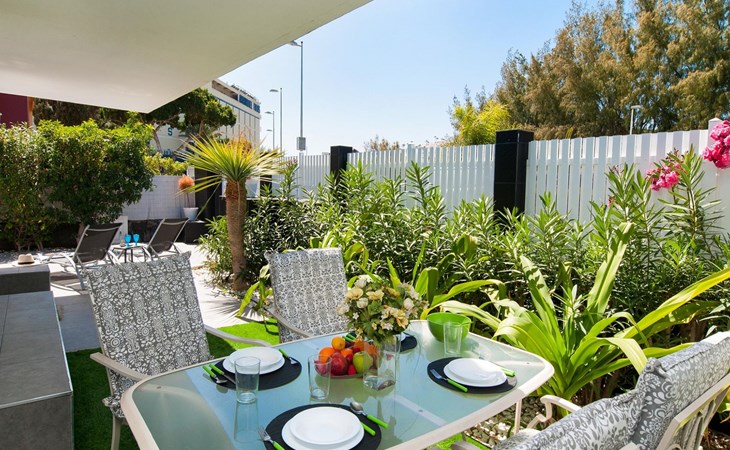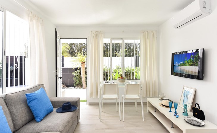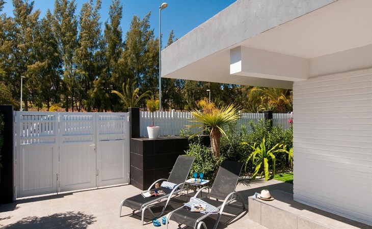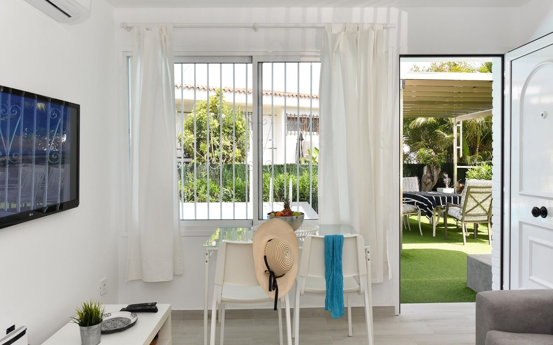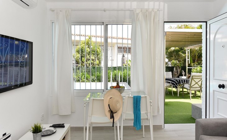 Sehr moderner, komfortabler Bungalow "San Agustin ET2". Zur Alleinbenutzung: wunderschöner Garten zum Entspannen, Schwimmbad eckig (3 x 2 m, 120 - 230 cm tief, saisonale Verfügbarkeit: 01.Jan. - 31.Dez.). Aussendusche, Tischtennis. Im Hause: Klimaanlage, Waschmaschine, Wäschetrockner. Einzelgarage beim Haus. Bushaltestelle "Clinica Roca" 300 m. Objekt geeignet für 4 Erwachsene. Der Besitzer akzeptiert keine Jugendgruppen. Die Nachbarschaft ist sehr lärmempfindlich. Ruhe und gutes Benehmen wird erwartet. Bei später Anreise sind folgende Gebühren in bar zu bezahlen: 20:30-22:00: 30€, 22:00-00:00: 50€, 00:00-01:30: 80€.