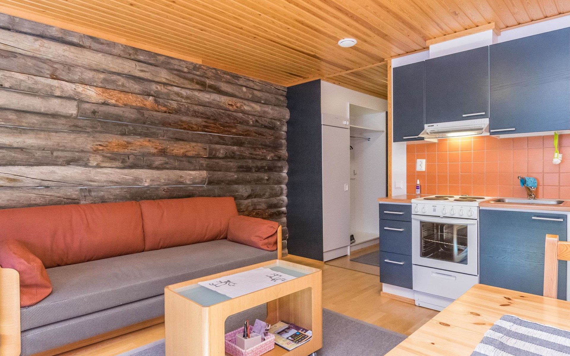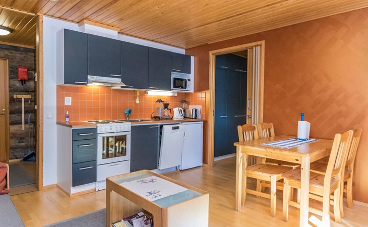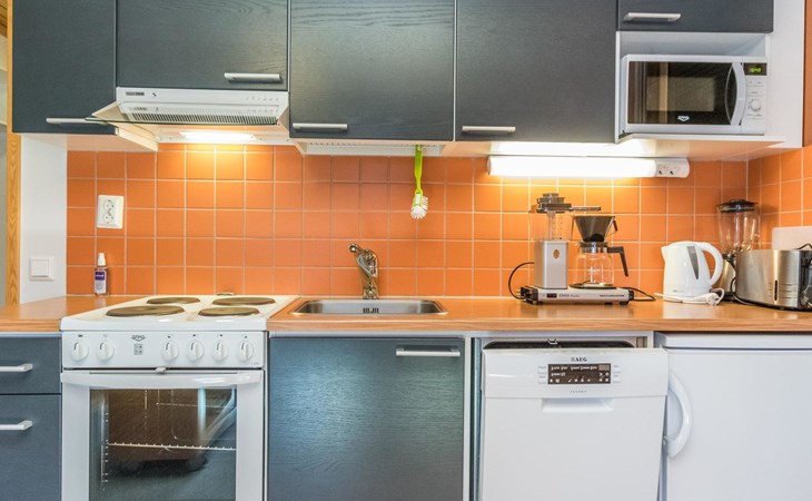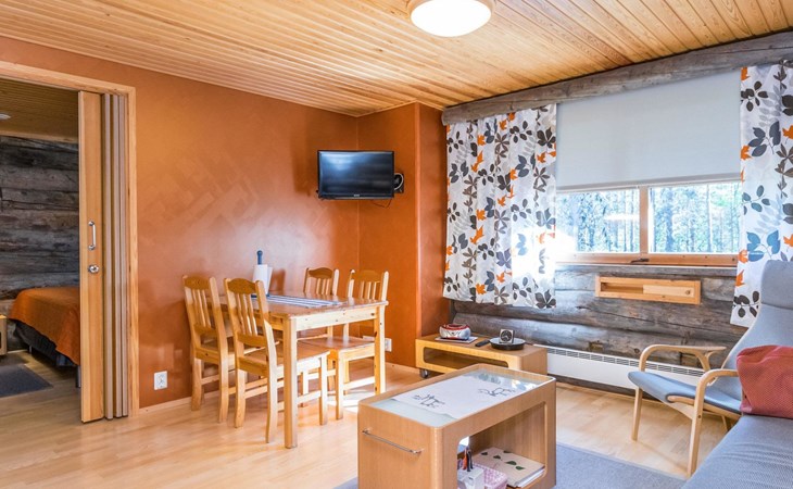 The apartment has a convenient kitchen-living room with access to a bedroom separated by a sliding door. The bedroom has two beds for a good night's sleep. In addition, the living room has a sofa bed, providing extra space for two if needed.