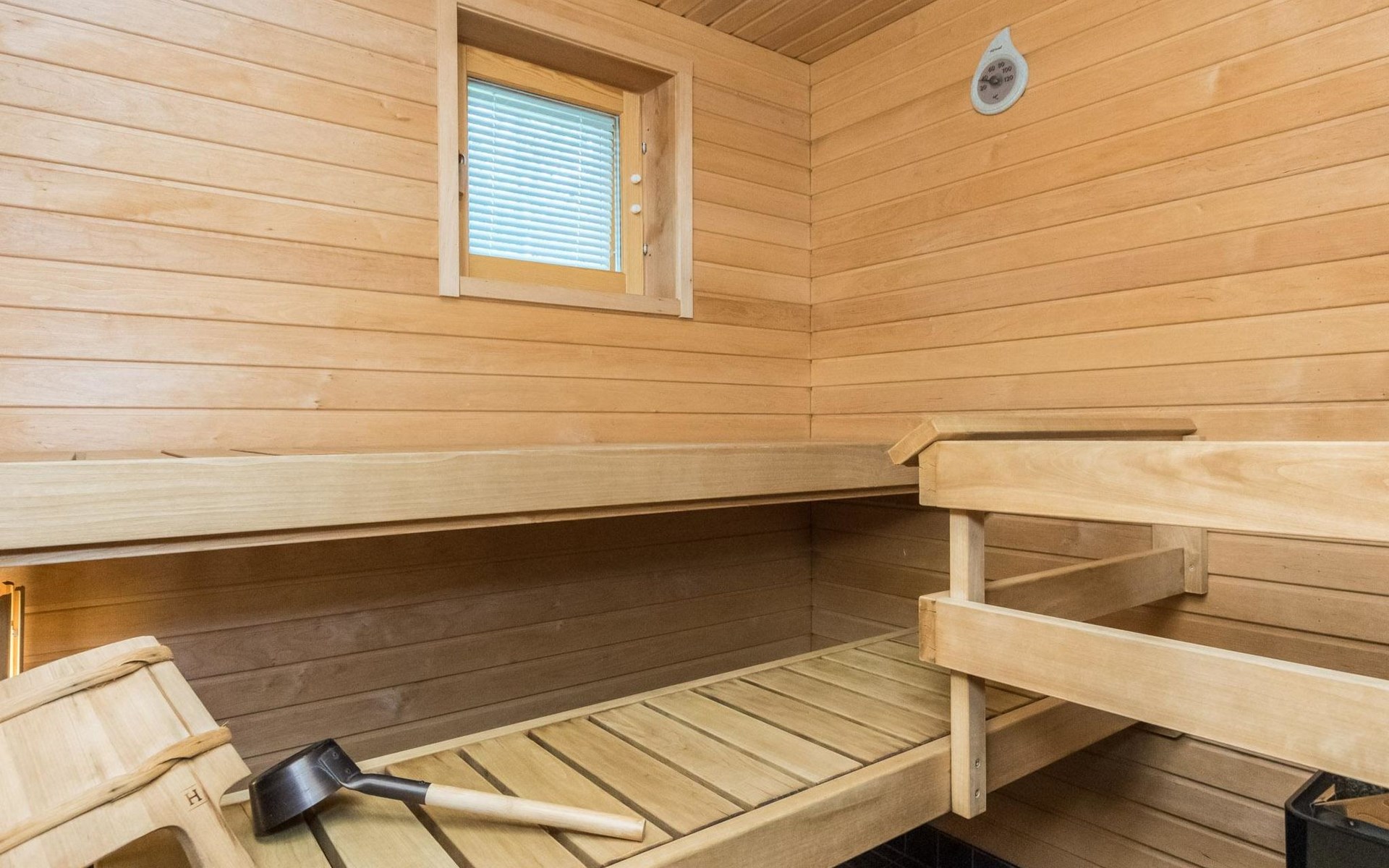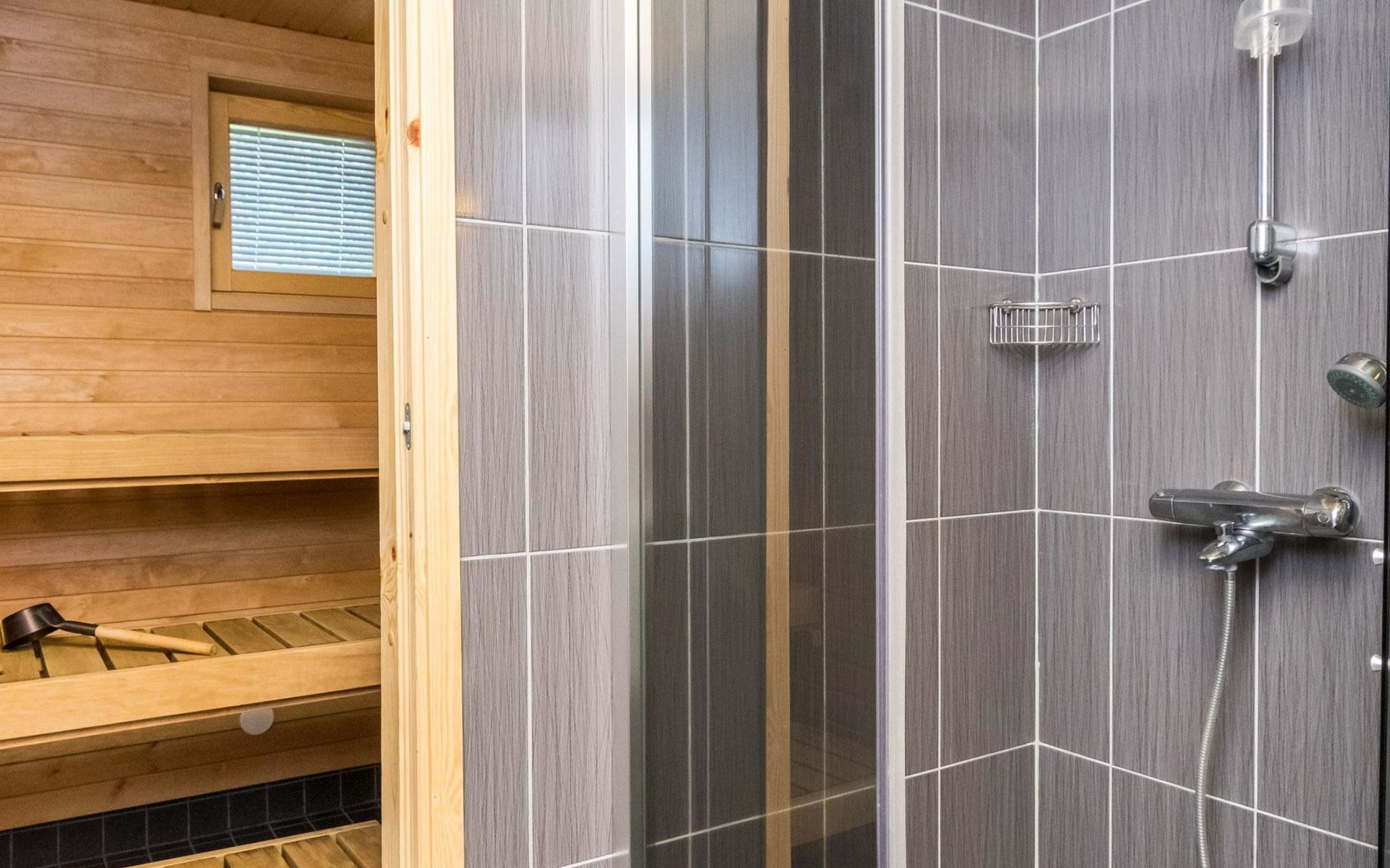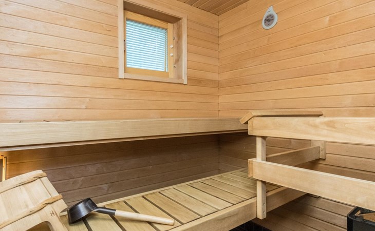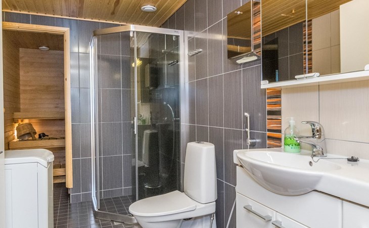 At the end of the day you can relax in the sauna. The washroom and toilet are located in the same room.