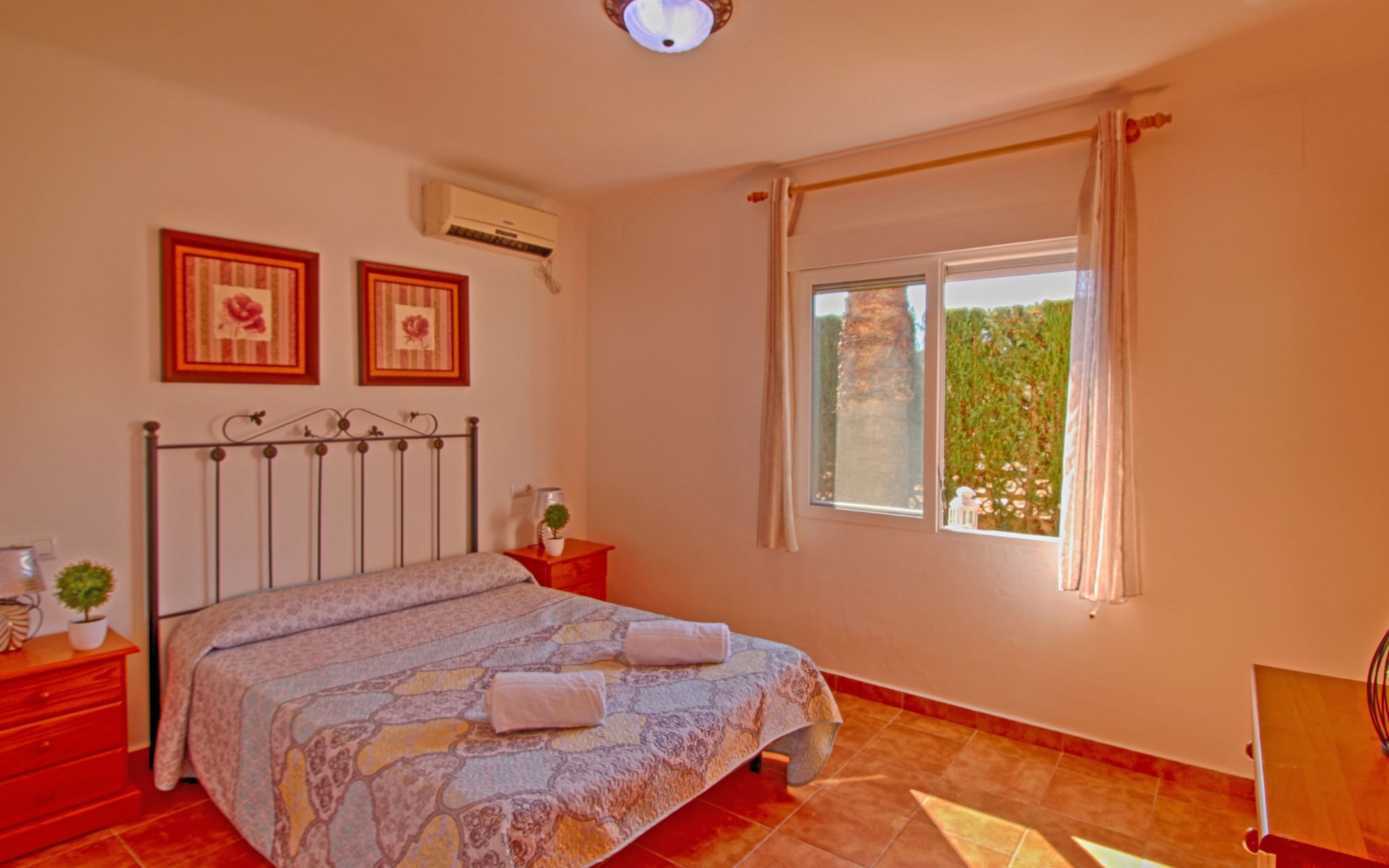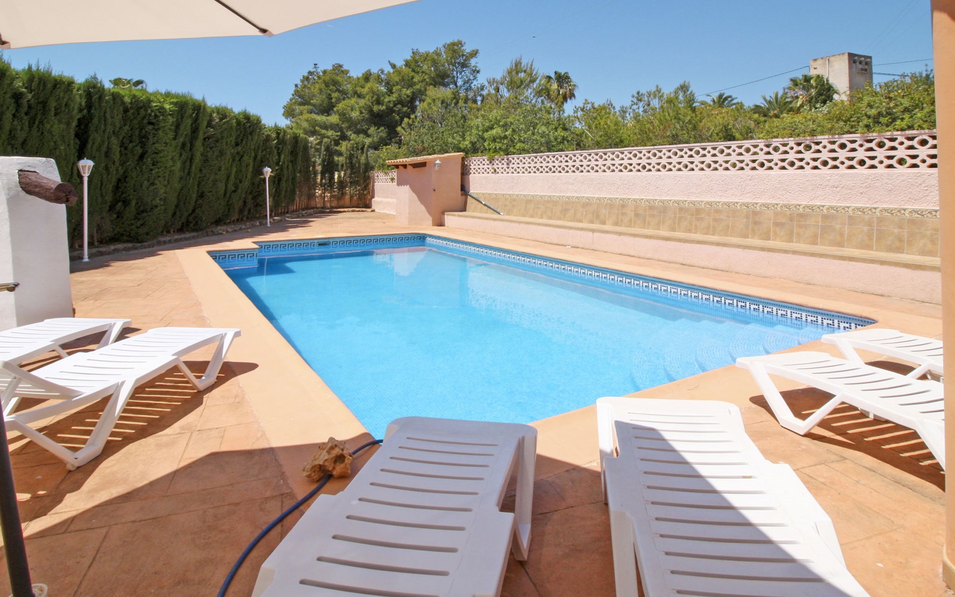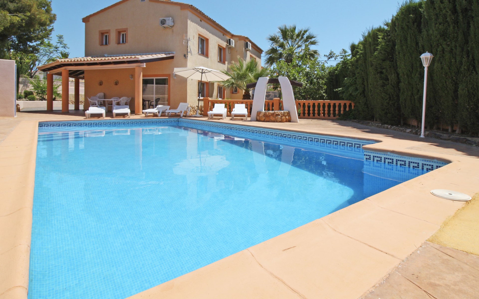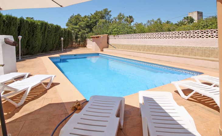 Los Pinos: Gemütliche, komfortable Villa "Bellavista". Im Ortsteil Los Pinos, 3.5 km vom Zentrum von Calpe, 60 km vom Zentrum von Alicante, 120 km vom Zentrum von Valencia, 900 m vom Meer, 1.7 km vom Strand, in einer Sackgasse. Zur Alleinbenutzung: Grundstück 705 m2 (eingezäunt) mit Pflanzen und Bäumen, Schwimmbad eckig (8 x 4 m, saisonale Verfügbarkeit: 01.Jan. - 31.Dez.). Aussendusche, Parkplatz (für 3 Autos) auf dem Grundstück. Supermarkt 1.6 km, Restaurant 500 m, Bushaltestelle 550 m, Sandstrand 2 km. Tennis 4 km. Nahe gelegene Sehenswürdigkeiten: Parque de atracciones Terra Mítica 35 km, Parque acuático Aqualandia 25 km. Wandergebiete: Parque natural Peñon de Ifach 3 km.