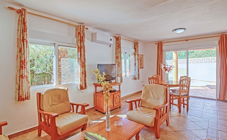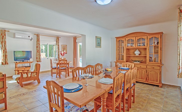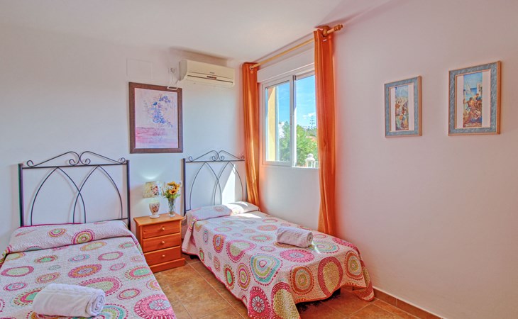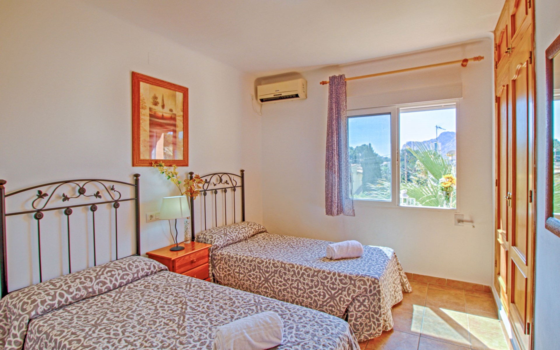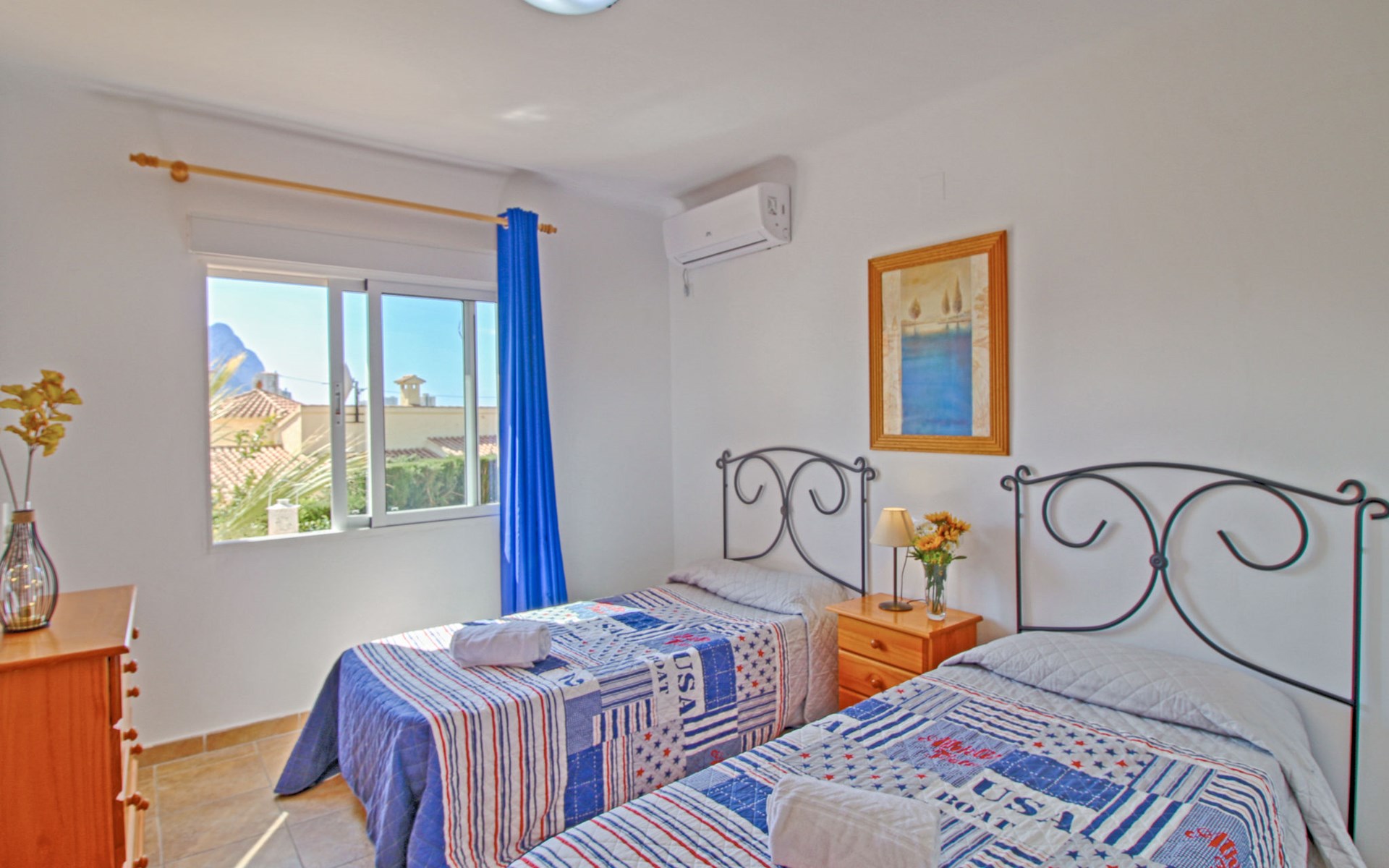 Los Pinos: Gemütliche, komfortable Villa "Bellavista". Im Ortsteil Los Pinos, 3.5 km vom Zentrum von Calpe, 60 km vom Zentrum von Alicante, 120 km vom Zentrum von Valencia, 900 m vom Meer, 1.7 km vom Strand, in einer Sackgasse. Zur Alleinbenutzung: Grundstück 705 m2 (eingezäunt) mit Pflanzen und Bäumen, Schwimmbad eckig (8 x 4 m, saisonale Verfügbarkeit: 01.Jan. - 31.Dez.). Aussendusche, Parkplatz (für 3 Autos) auf dem Grundstück. Supermarkt 1.6 km, Restaurant 500 m, Bushaltestelle 550 m, Sandstrand 2 km. Tennis 4 km. Nahe gelegene Sehenswürdigkeiten: Parque de atracciones Terra Mítica 35 km, Parque acuático Aqualandia 25 km. Wandergebiete: Parque natural Peñon de Ifach 3 km.