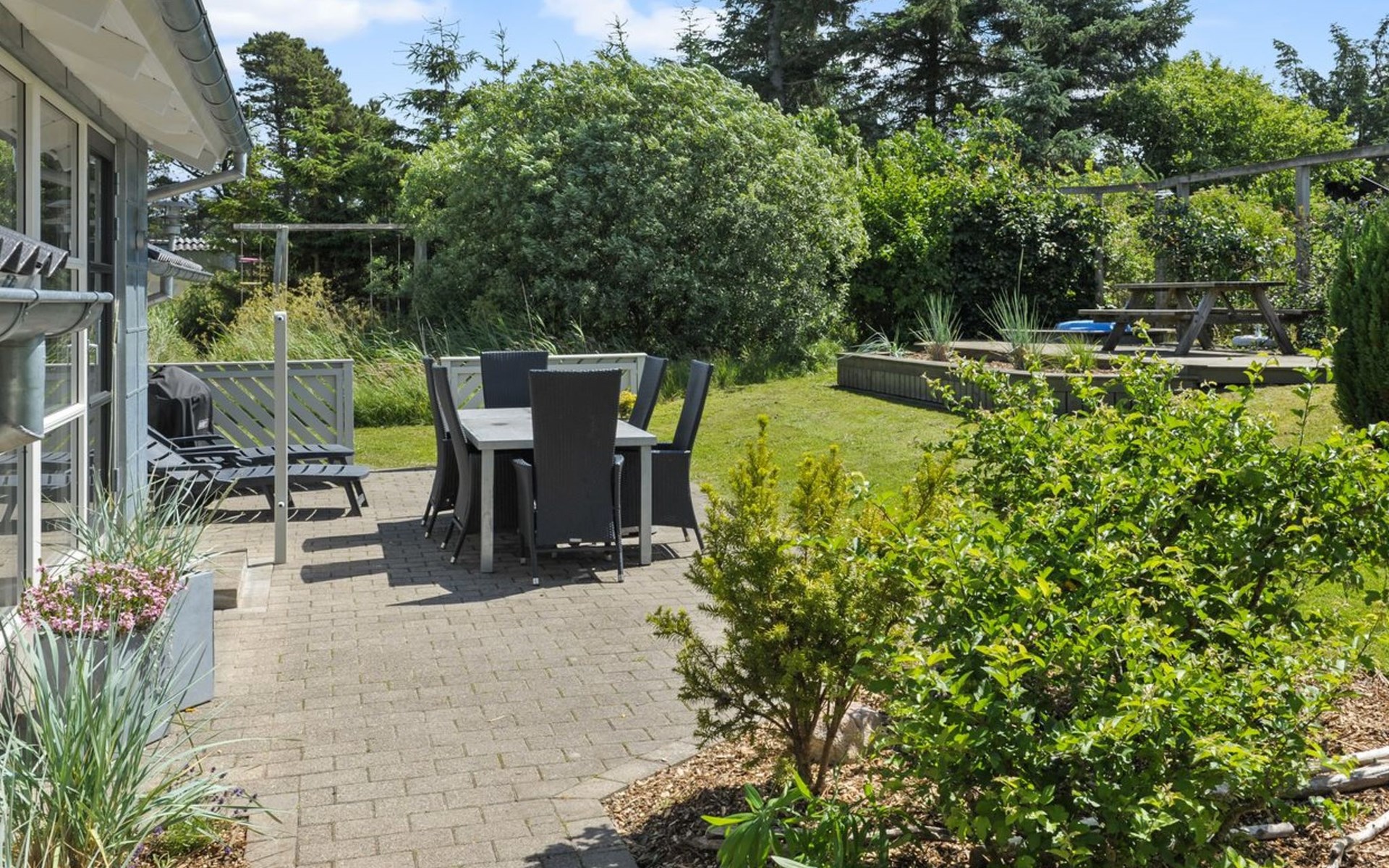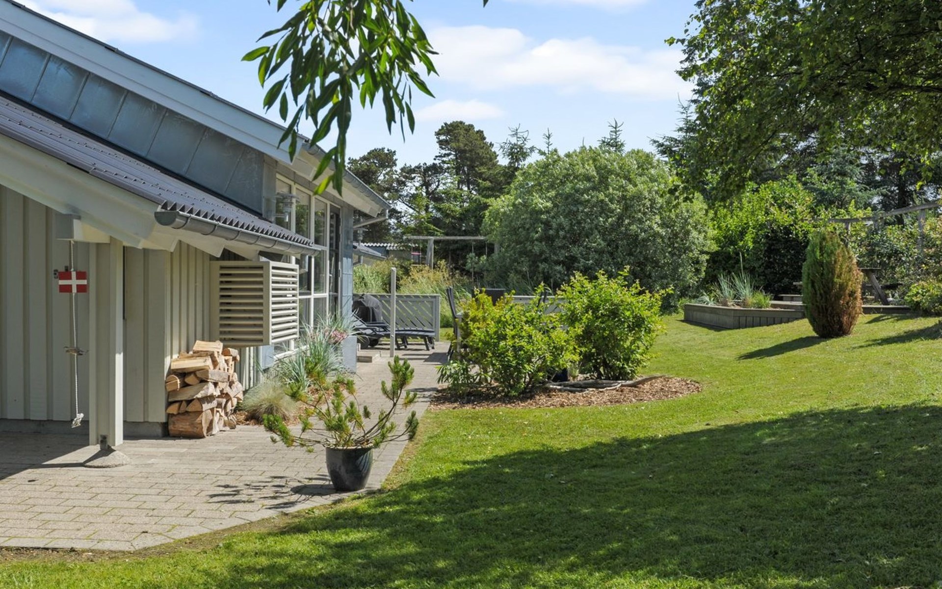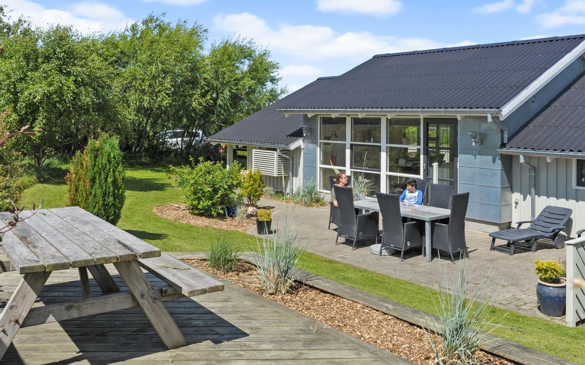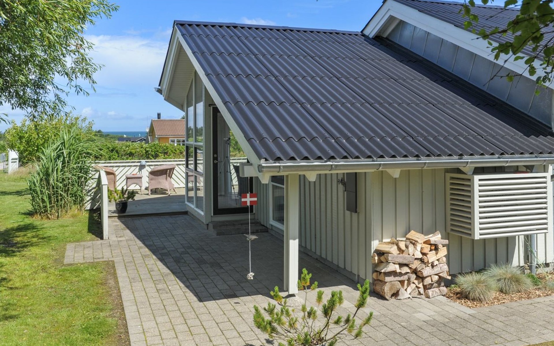 Einfamilienhaus, Baujahr 1993. 625 m vom Meer. Zur Alleinbenutzung: naturbelassenes Grundstück 1'250 m2. Terrasse (70 m2), Grill, Kinderspielplatz (Schaukel). Im Hause: Sauna, Waschmaschine, Wäschetrockner. Parkplatz beim Haus. E-Ladestation. Lebensmittelgeschäft 4 km. Der Besitzer akzeptiert keine Jugendgruppen.