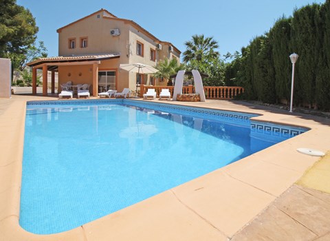 Sehr grosse, gemütliche Villa "La Esquina", auf 2 Stockwerken. Im Ortsteil La Lluca, im Ort, 7 km vom Zentrum von Javea - El Arenal, ruhige, sonnige Lage, 7 km vom Meer, 7 km vom Strand. Zur Alleinbenutzung: terrassierter Garten mit Rasen und Bäumen, Schwimmbad eckig (10 x 5 m, 80 - 210 cm tief, saisonale Verfügbarkeit: 01.Jan. - 31.Dez.) mit Innentreppe. Aussendusche, Gartenmöbel, Grill, Parkplatz (für 2 Autos). Supermarkt 3.5 km, Restaurant 1 km, Bushaltestelle "Estacion de autobuses Javea" 6 km, Sandstrand "El Arenal" 7 km. Sporthafen 7 km, Jacht-Hafen 7 km, Golfplatz (9 Loch) 1 km, Surfschule 7 km. Der Besitzer akzeptiert keine Jugendgruppen.