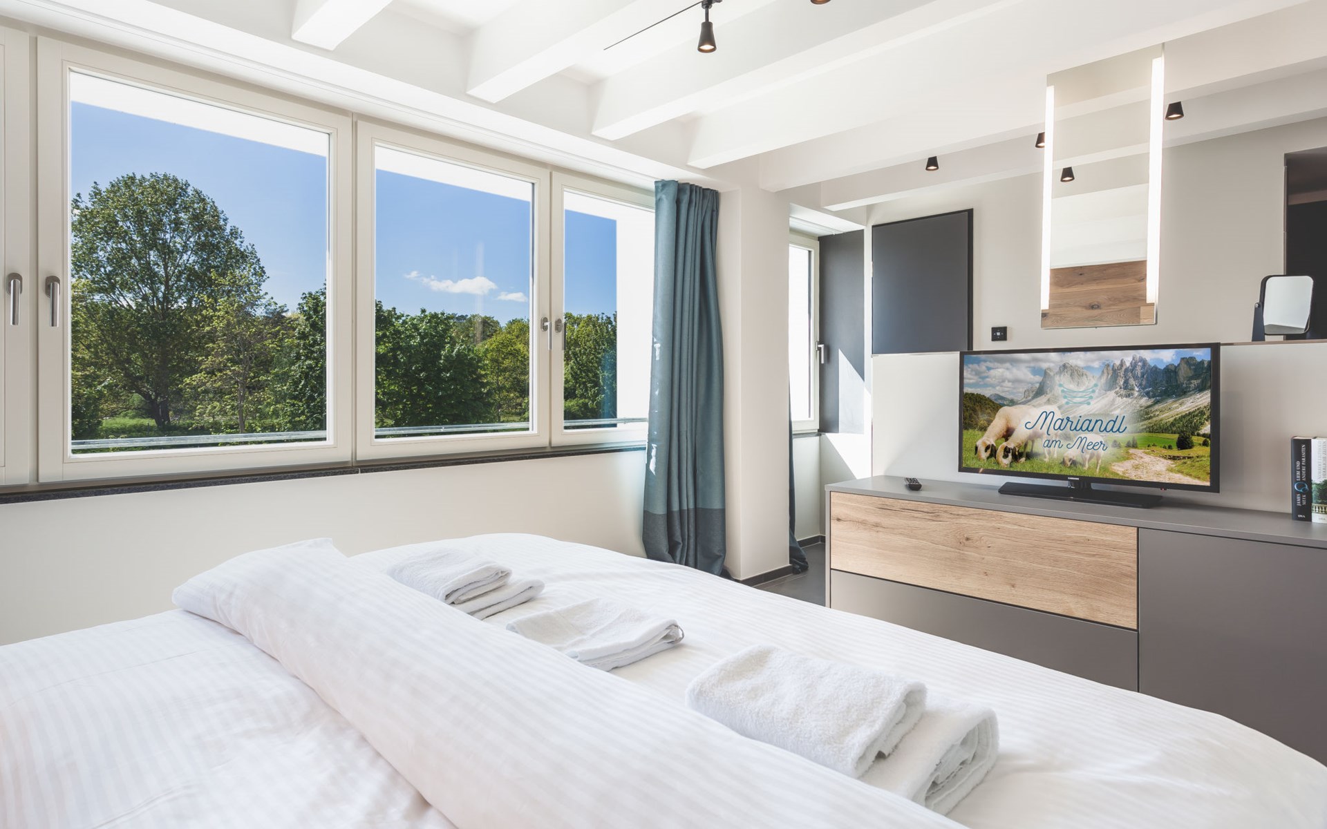 Moderne Ferienanlage "Mariandl am Meer", auf 6 Stockwerken, Baujahr 2019. 128 Wohnungen in der Residenz. Im Ortsteil Prora, 4 km vom Zentrum von Binz, 12 km vom Zentrum von Bergen, 38 km vom Zentrum von Stralsund, 100 m vom Meer, direkter Zugang zum Strand. Zur Mitbenutzung: Schwimmbad, Hallenbad (10 x 6 m, saisonale Verfügbarkeit: 01.Jan. - 31.Dez.). In der Anlage: Empfang, Restaurant, Sauna, Wellnessbereich, Fahrstuhl, Einstellraum für Fahrräder, Zentralheizung. Frühstück möglich (extra). Parkplatz (beschränkte Anzahl, extra) auf dem Grundstück, Gemeinschaftsgarage (extra). Einkaufsgeschäft 1.2 km, Supermarkt 4 km, Bushaltestelle "Prora, Südstrasse" 1.7 km, Sandstrand 100 m. Golfplatz (18 Loch) 6 km. Restaurant mit eingeschränkten Öffnungszeiten.
