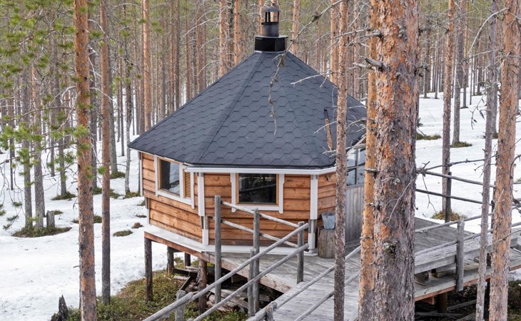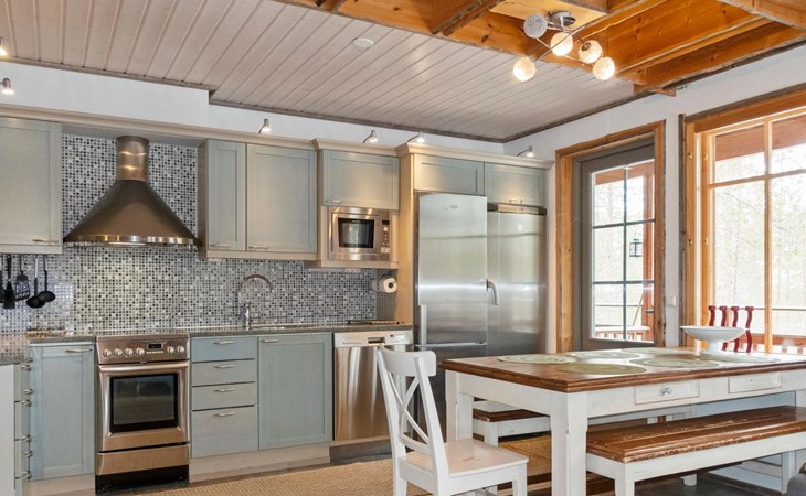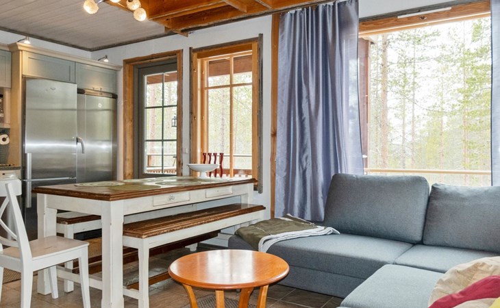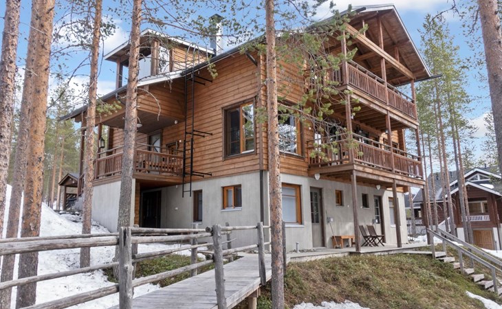Wooden apartment in semi-detached house situated in Levi, on Länsirinne ski slope.