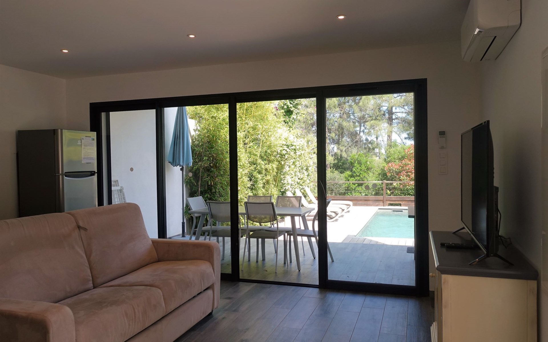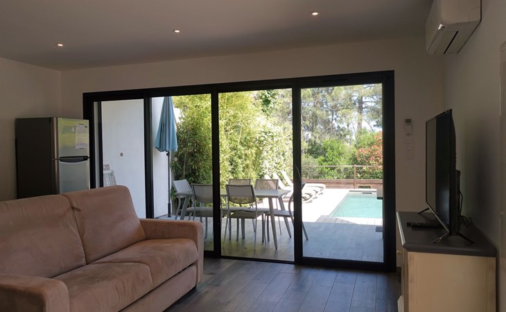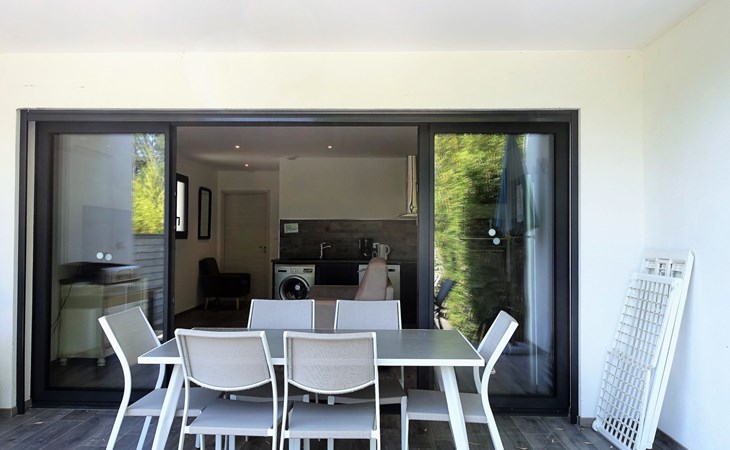 Reihenhaus "Les Jardins d'Ève", Baujahr 2019, umgeben von Bäumen. 8 km vom Zentrum von Solenzara, 33 km vom Zentrum von Porto Vecchio, 105 km vom Zentrum von Bastia, sonnige Lage, 150 m vom Meer, direkter Zugang zum Strand. Zur Alleinbenutzung: Schwimmbad beheizt (7 x 3 m, 150 cm tief, saisonale Verfügbarkeit: 02.Apr. - 01.Okt.) mit Alarmanlage. Parkplatz auf dem Grundstück. Einkaufsgeschäft 1.5 km, Supermarkt 8 km, Bushaltestelle 9 km, Sandstrand "Baie de Canella" 900 m, Felsstrand 300 m. Wandergebiete: Aiguilles de Bavella 39 km. Bitte beachten: Fahrzeug empfohlen.