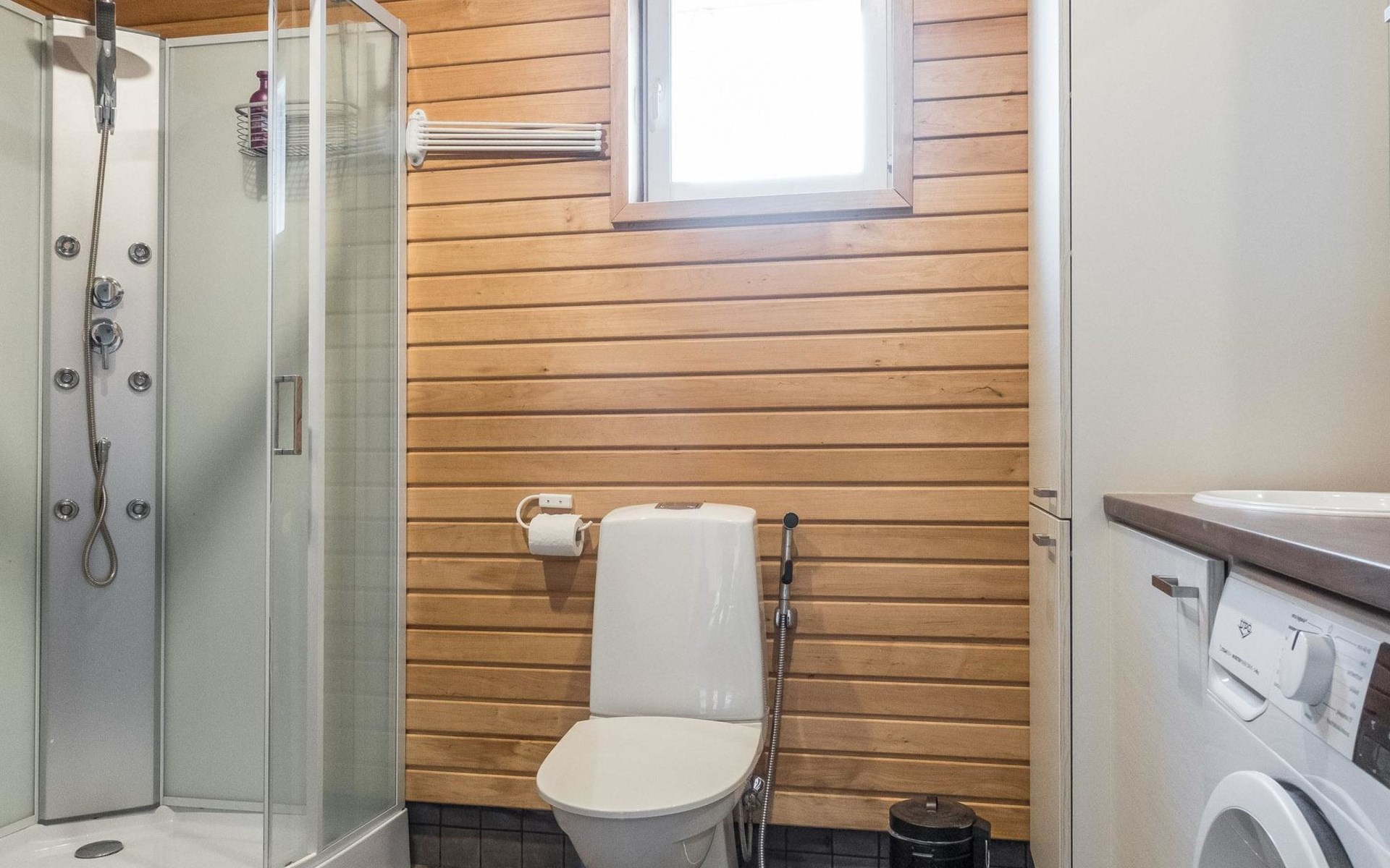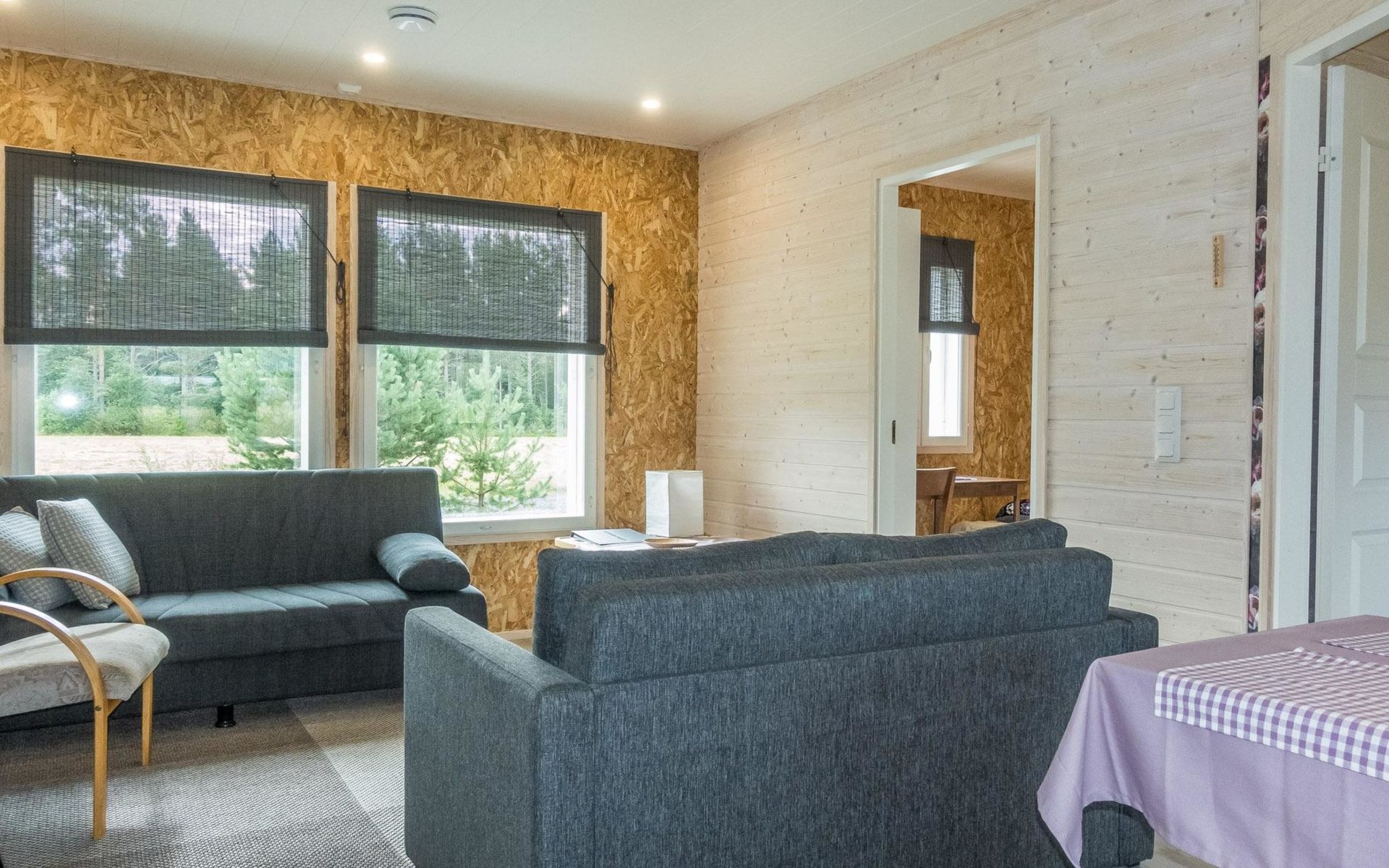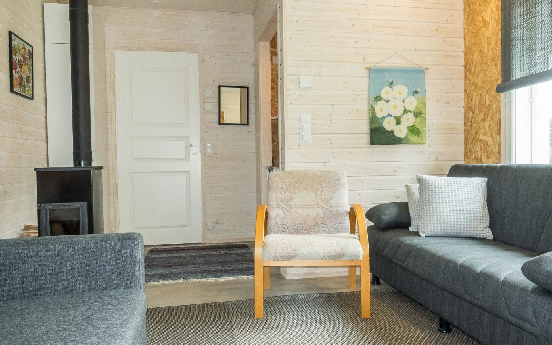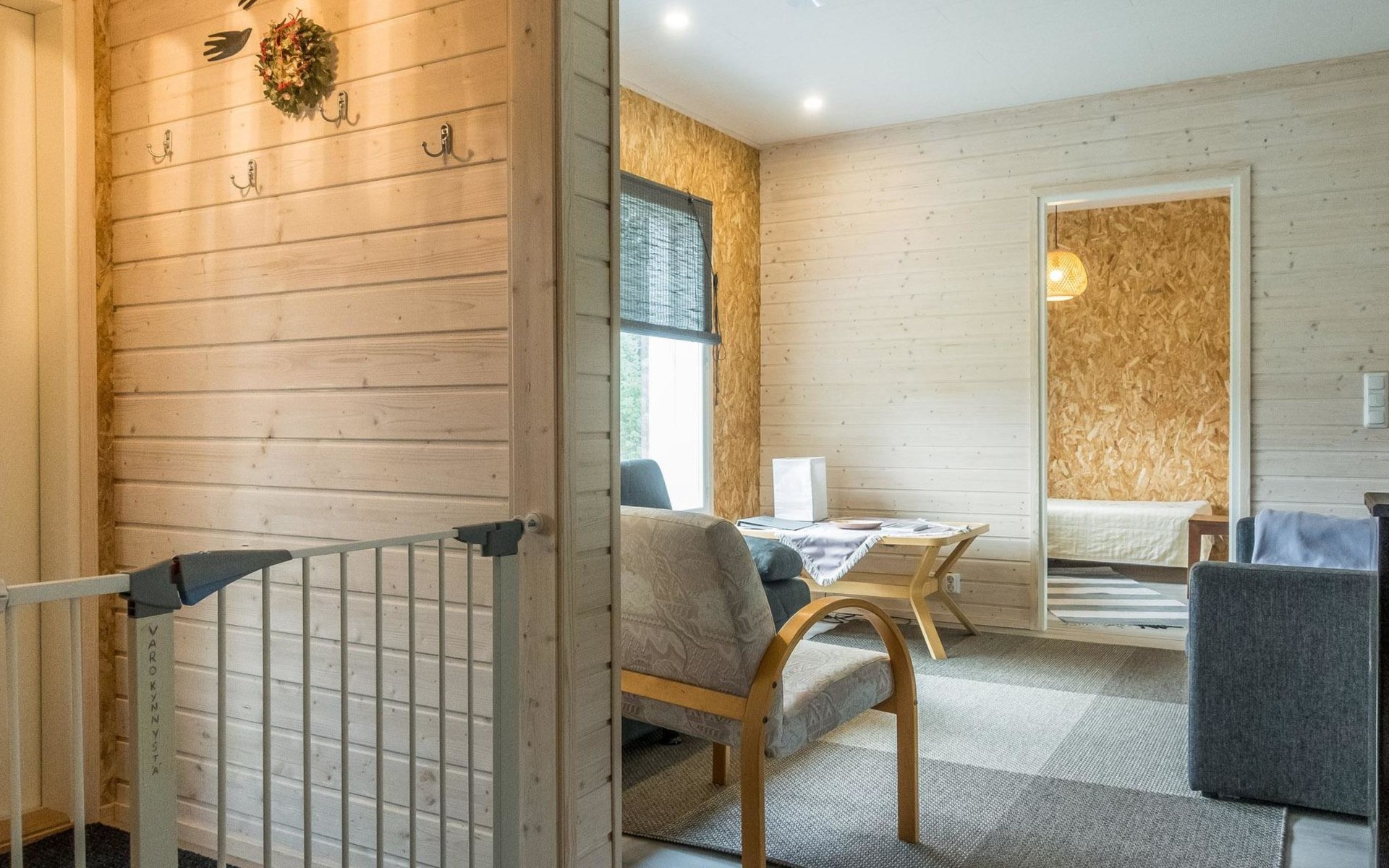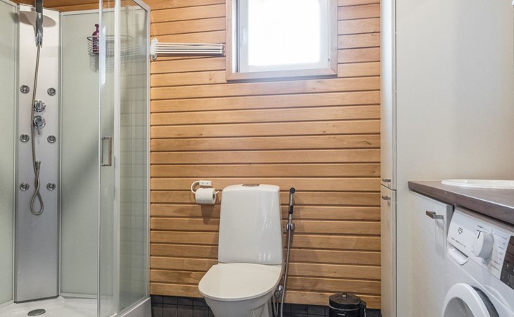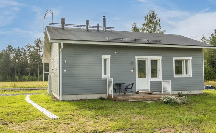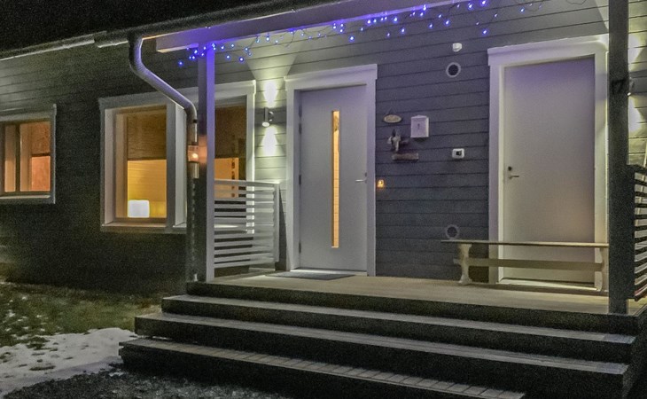 Pets are allowed, but only in the entrance area of the house. There is a pet gate between the entrance and the living area. Bringing pets into the living area is prohibited. Illuminated jogging track and ski trail, as well as Frisbee golf, are 800 m away.