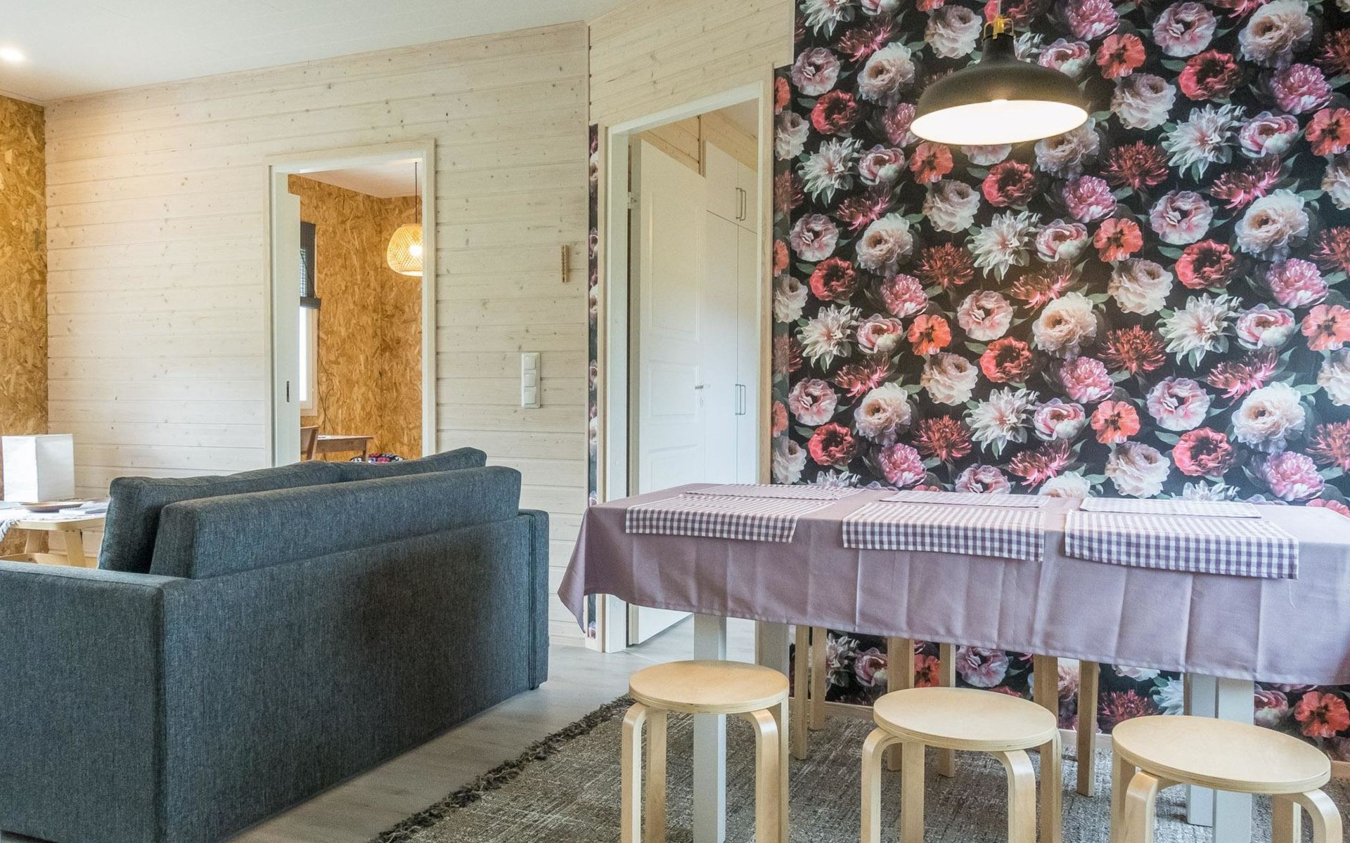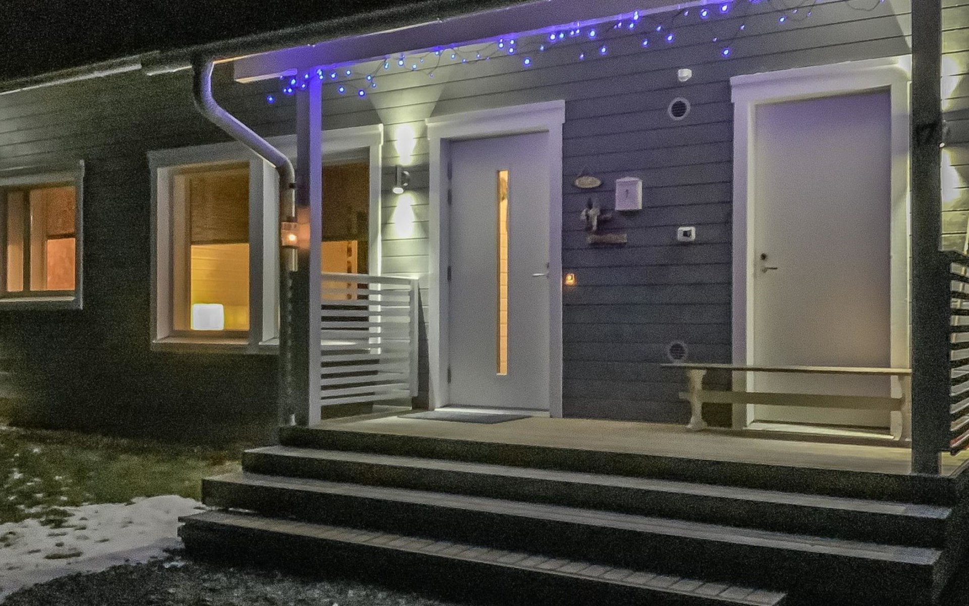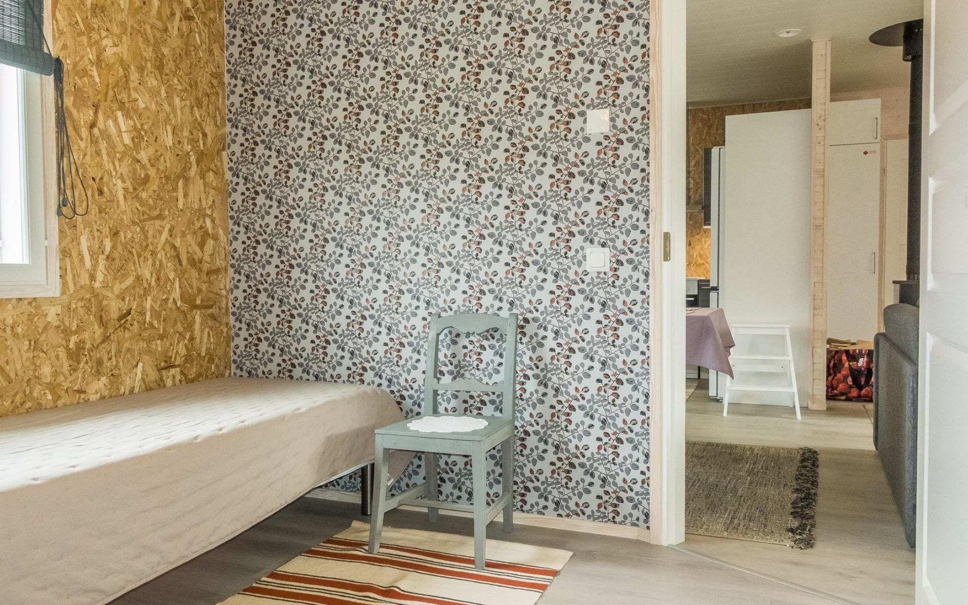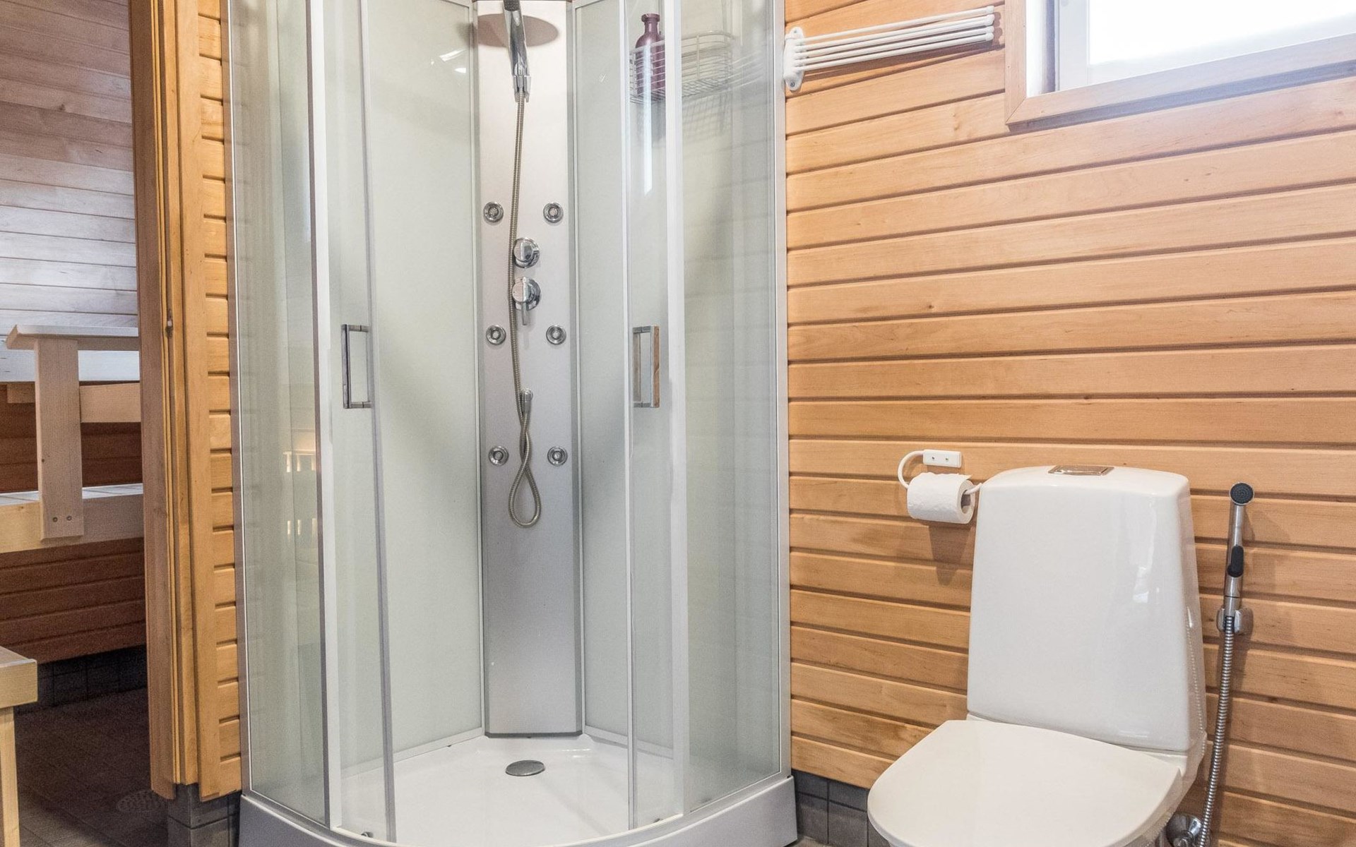 Pets are allowed, but only in the entrance area of the house. There is a pet gate between the entrance and the living area. Bringing pets into the living area is prohibited. Illuminated jogging track and ski trail, as well as Frisbee golf, are 800 m away.