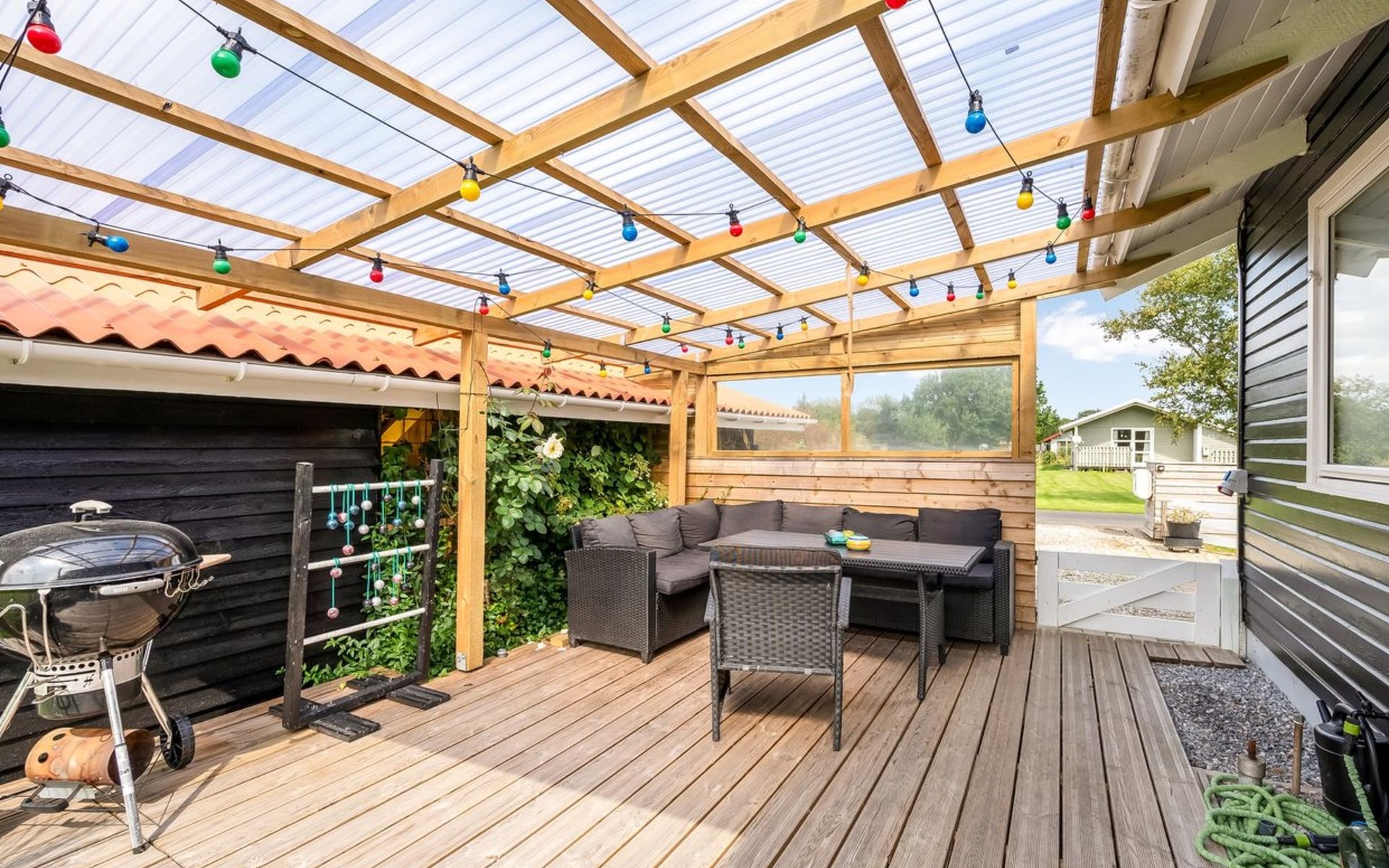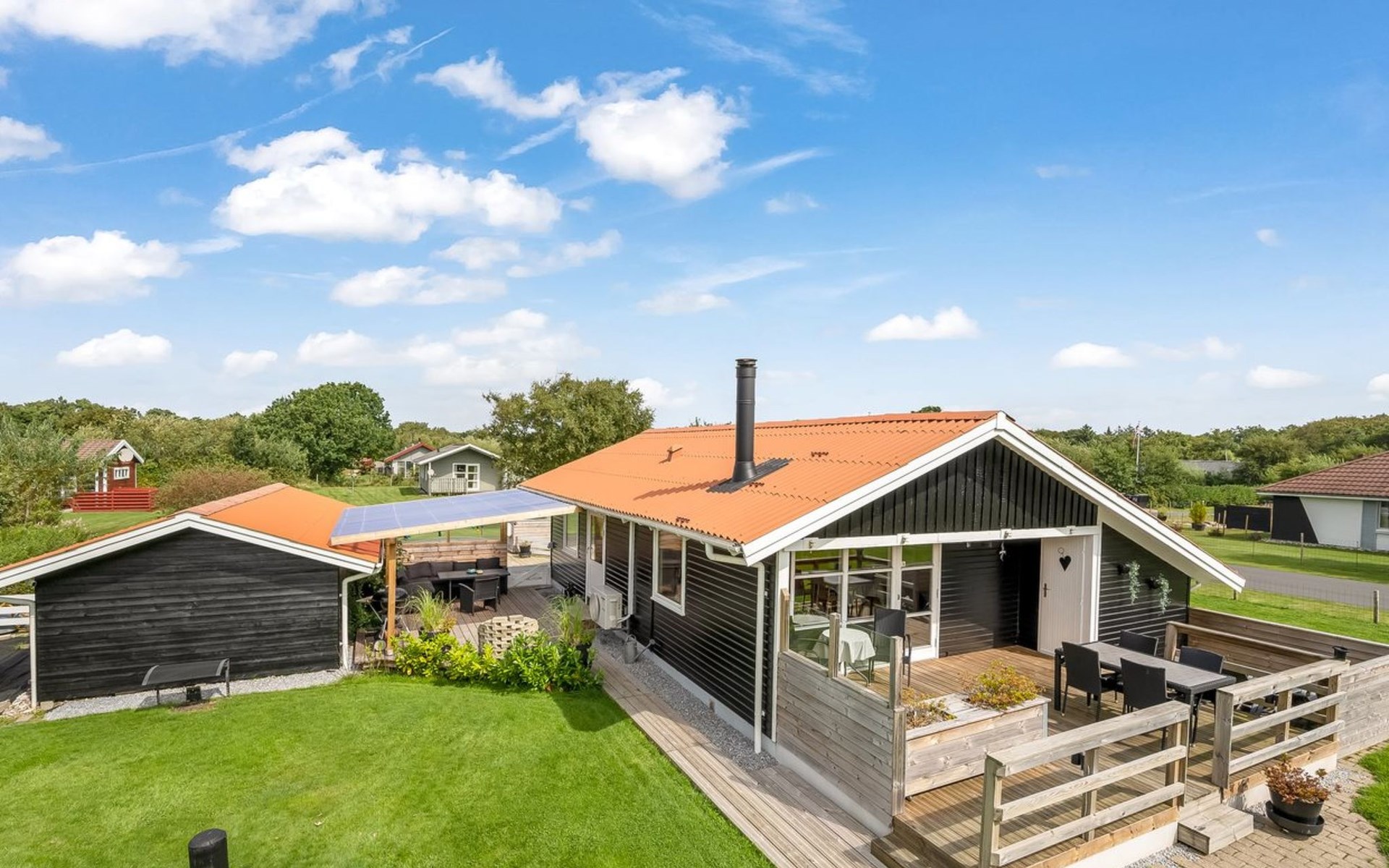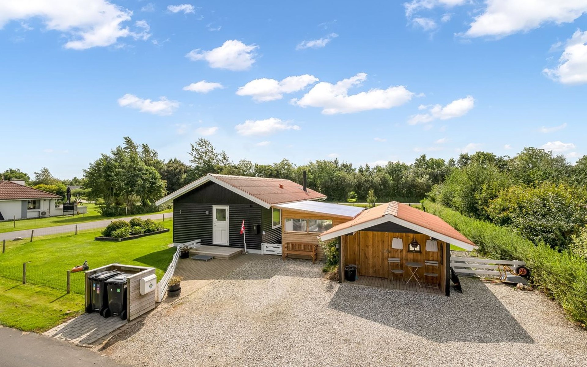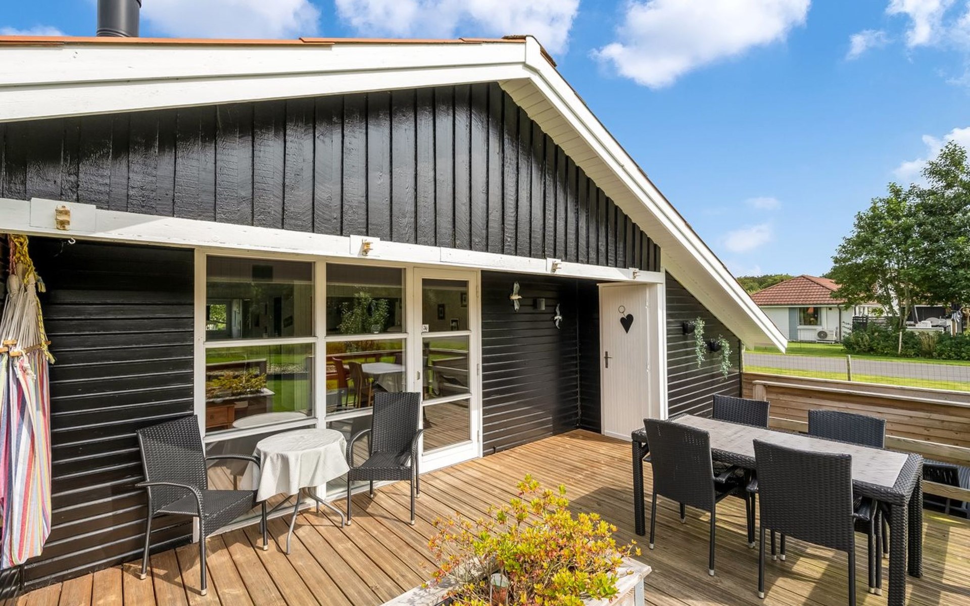 Einfamilienhaus, Baujahr 1986. 7.2 km vom Meer. Zur Mitbenutzung: Garten. Zur Alleinbenutzung: naturbelassenes Grundstück 987 m2, Garten (eingezäunt). Terrasse (26 m2), Grill. Im Hause: Waschmaschine. Parkplatz beim Haus. E-Ladestation. Lebensmittelgeschäft 800 m. Der Besitzer akzeptiert keine Jugendgruppen.