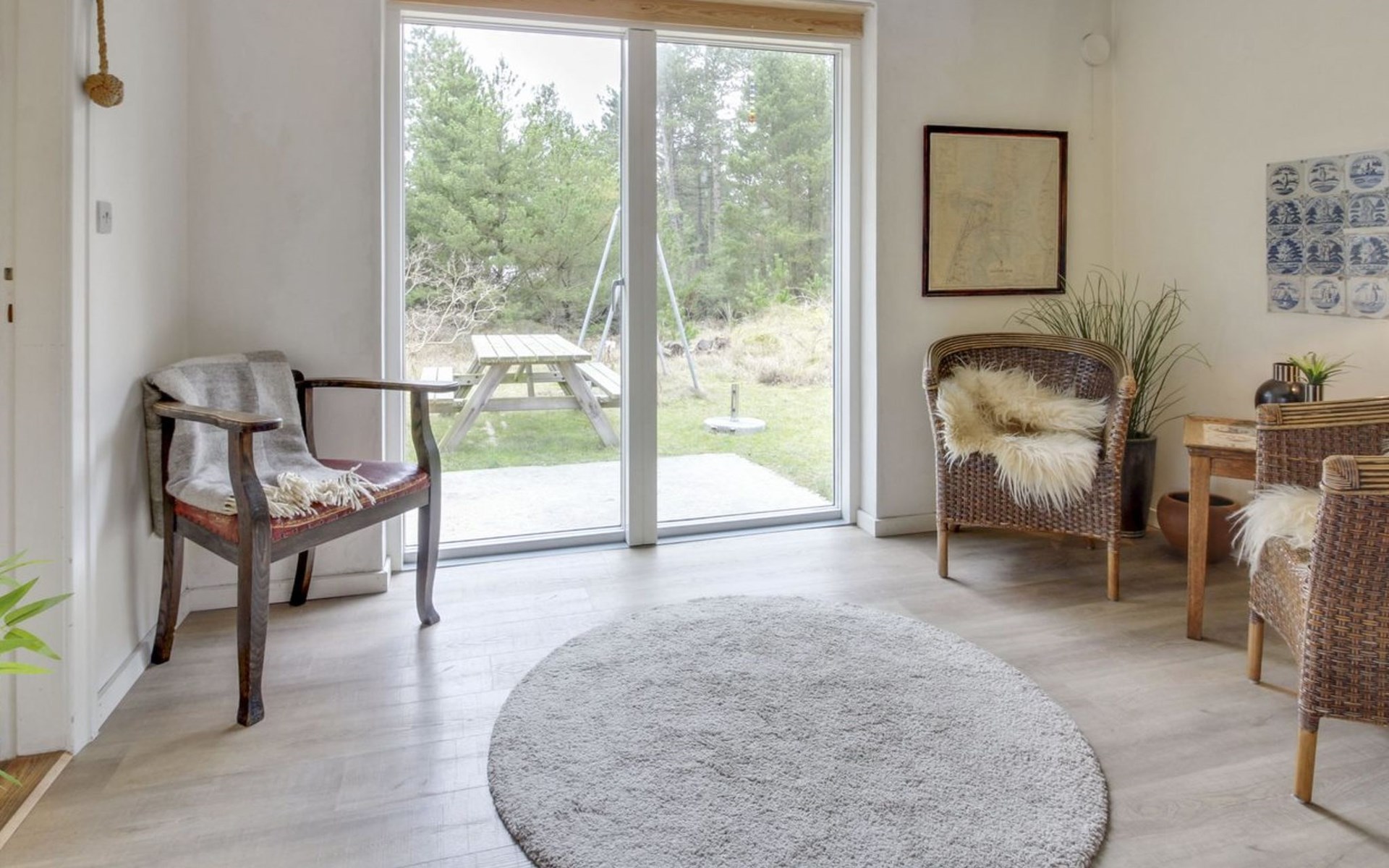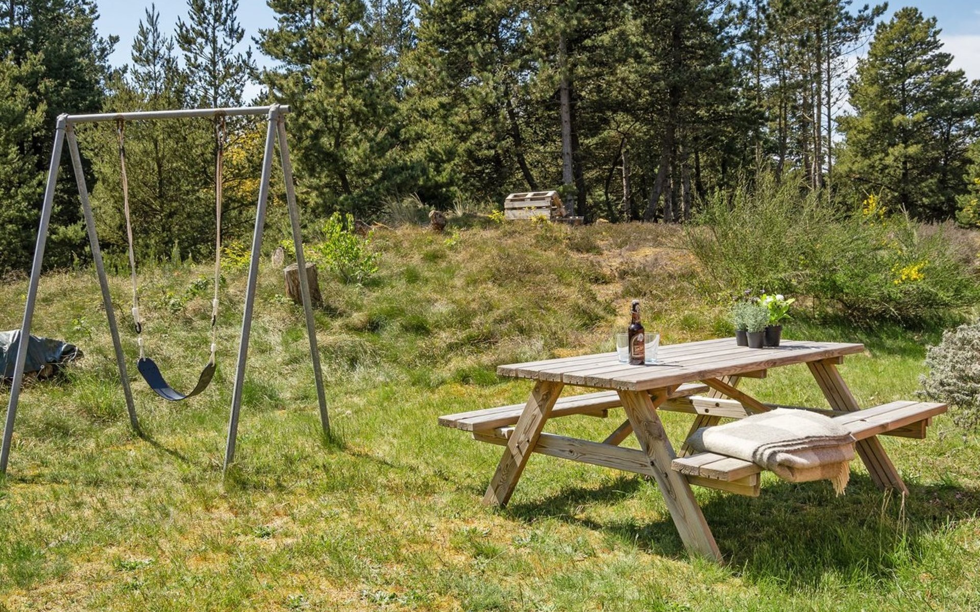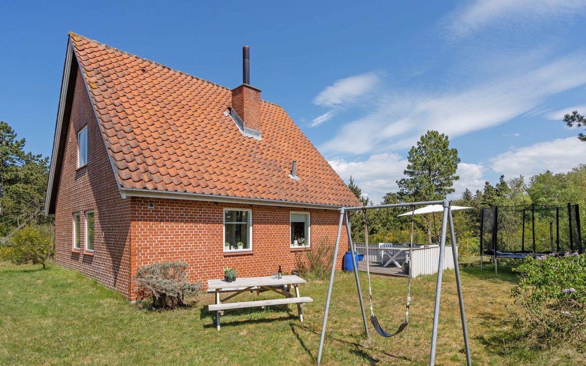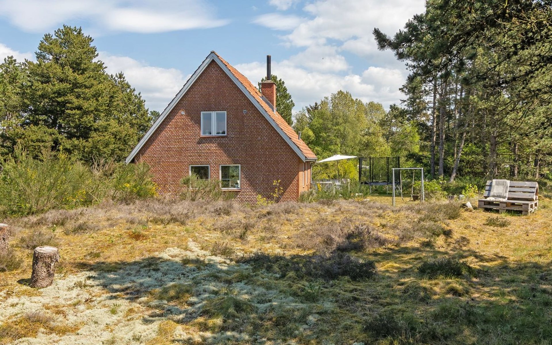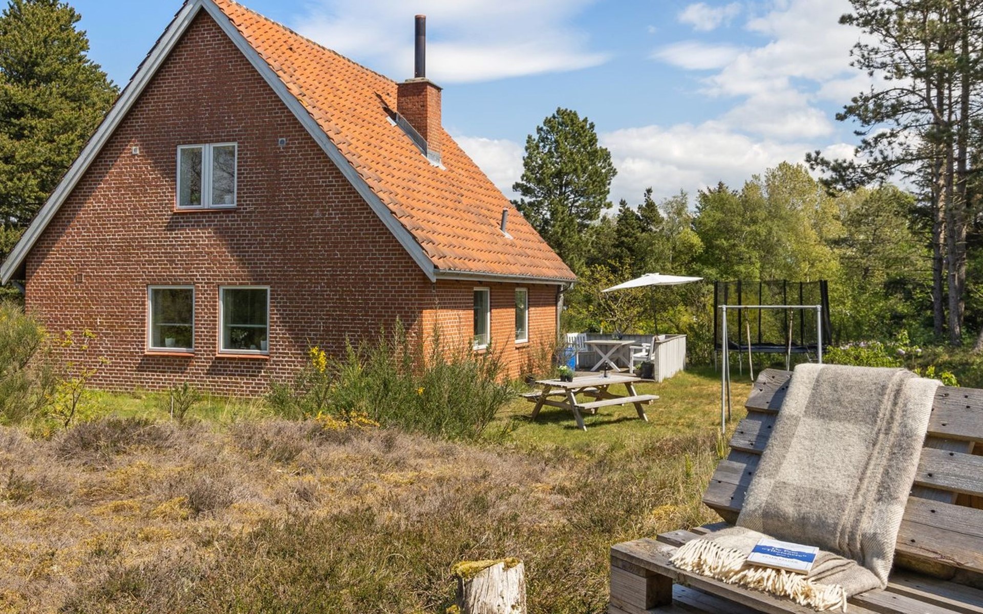 Einfamilienhaus, Baujahr 1962. 3.5 km vom Meer. Zur Alleinbenutzung: naturbelassenes Grundstück 2'657 m2. Terrasse (40 m2), Kinderspielplatz (Schaukel), Parkplatz beim Haus. Lebensmittelgeschäft 500 m. Golfplatz 1.8 km. Der Besitzer akzeptiert keine Jugendgruppen.