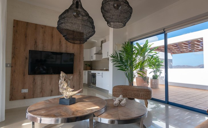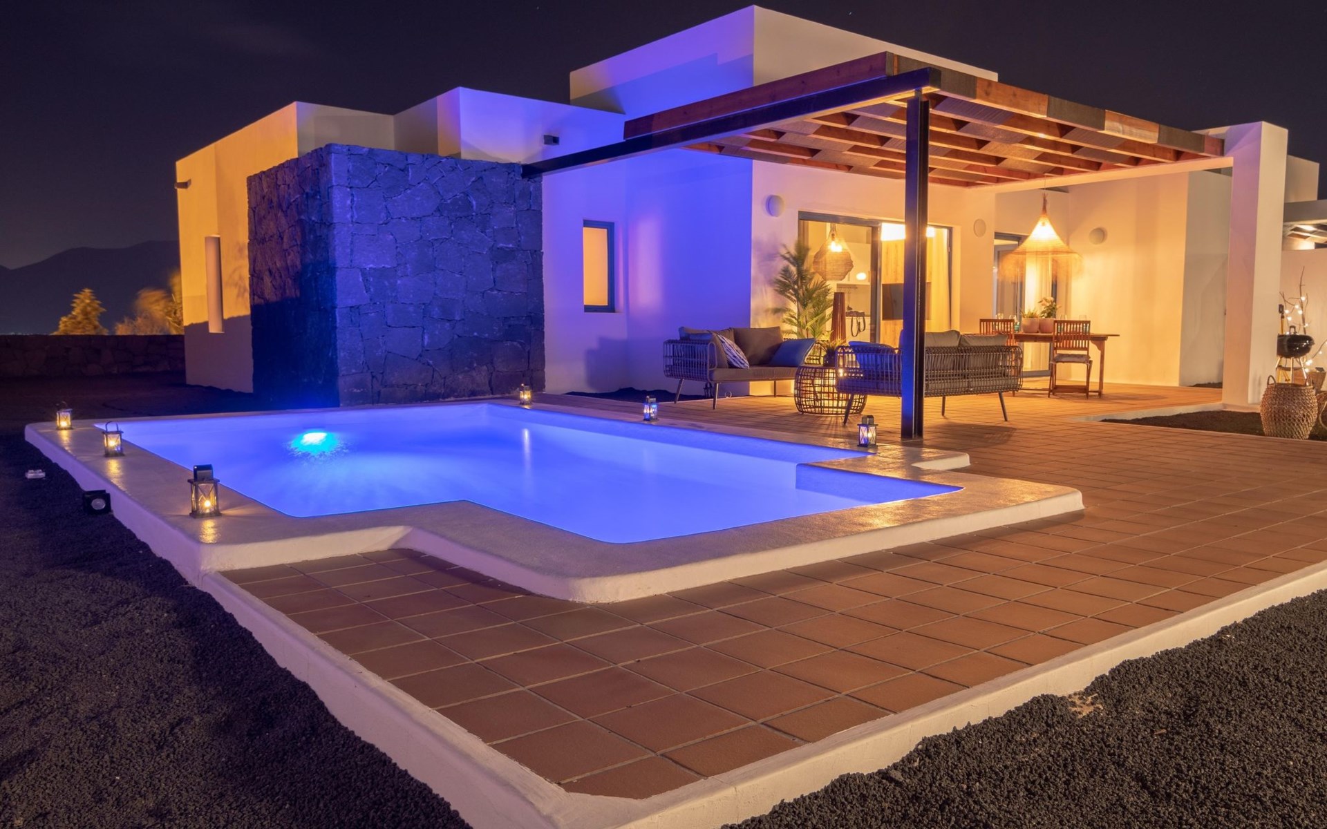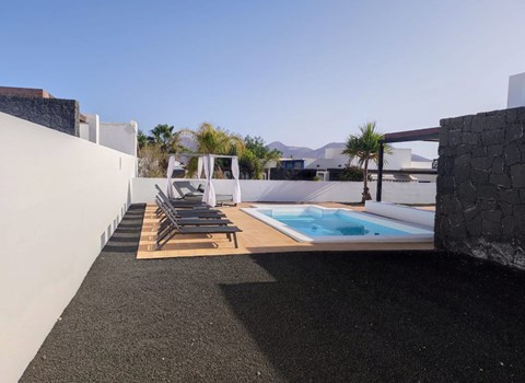 Bellavista 3 km von Playa Blanca: Schönes Reihenhaus "Bellavista". 2.5 km vom Meer. Zur Alleinbenutzung: Grundstück 500 m2, Schwimmbad eckig, beheizt (6 x 4 m, saisonale Verfügbarkeit: 01.Jan. - 31.Dez.) mit Innentreppe. Grill. Treppenweg (14 Stufen) bis zum Haus. Supermarkt 500 m, Restaurant 1.5 km, Bushaltestelle "El Pueblito" 550 m, Sandstrand "Flaamingo" 2.5 km. Golfplatz (18 Loch) 32 km, Reitstall 1.5 km. Nahe gelegene Sehenswürdigkeiten: Paque acúatico Agualava 1.8 km. Bitte beachten: Fahrzeug empfohlen.