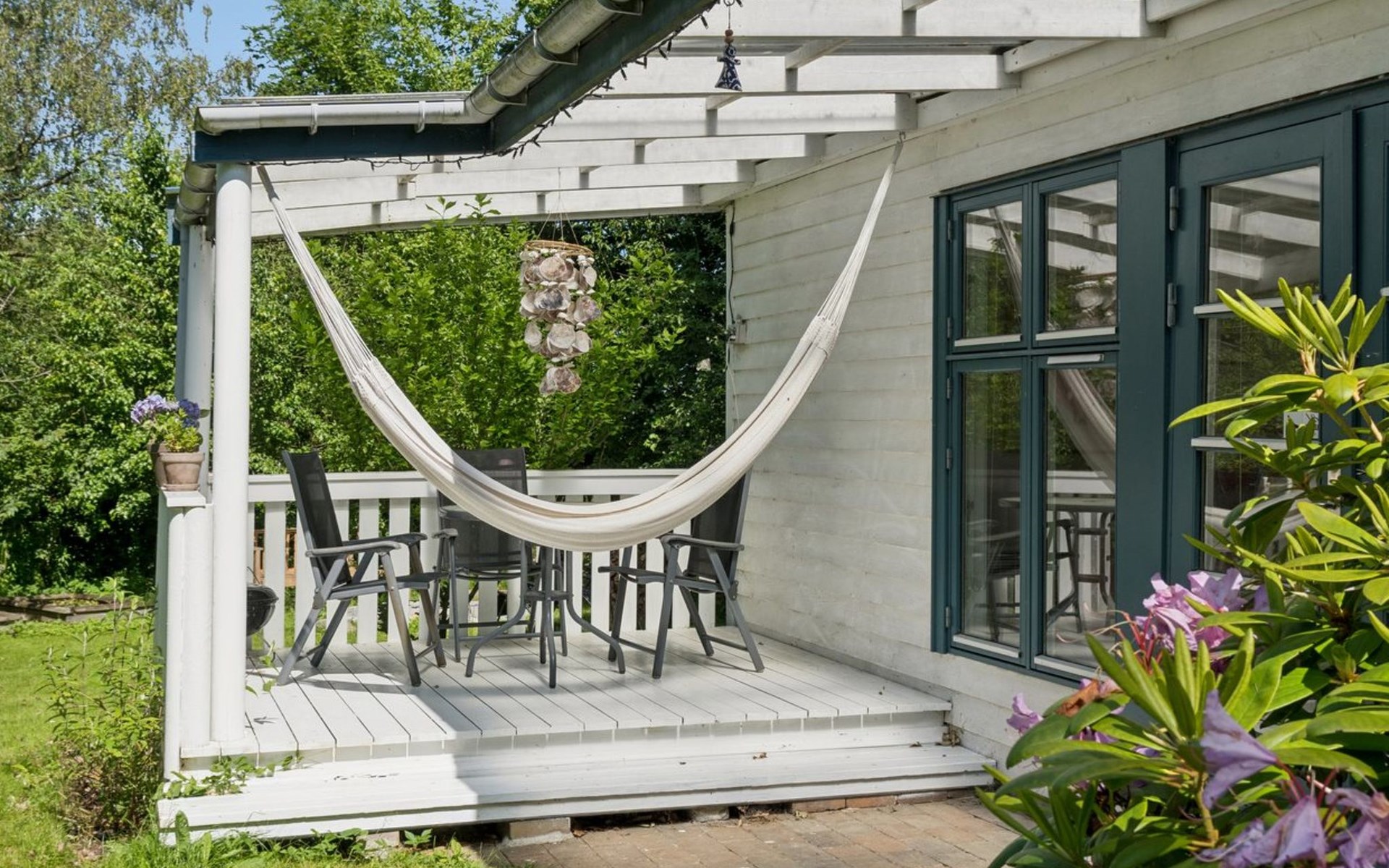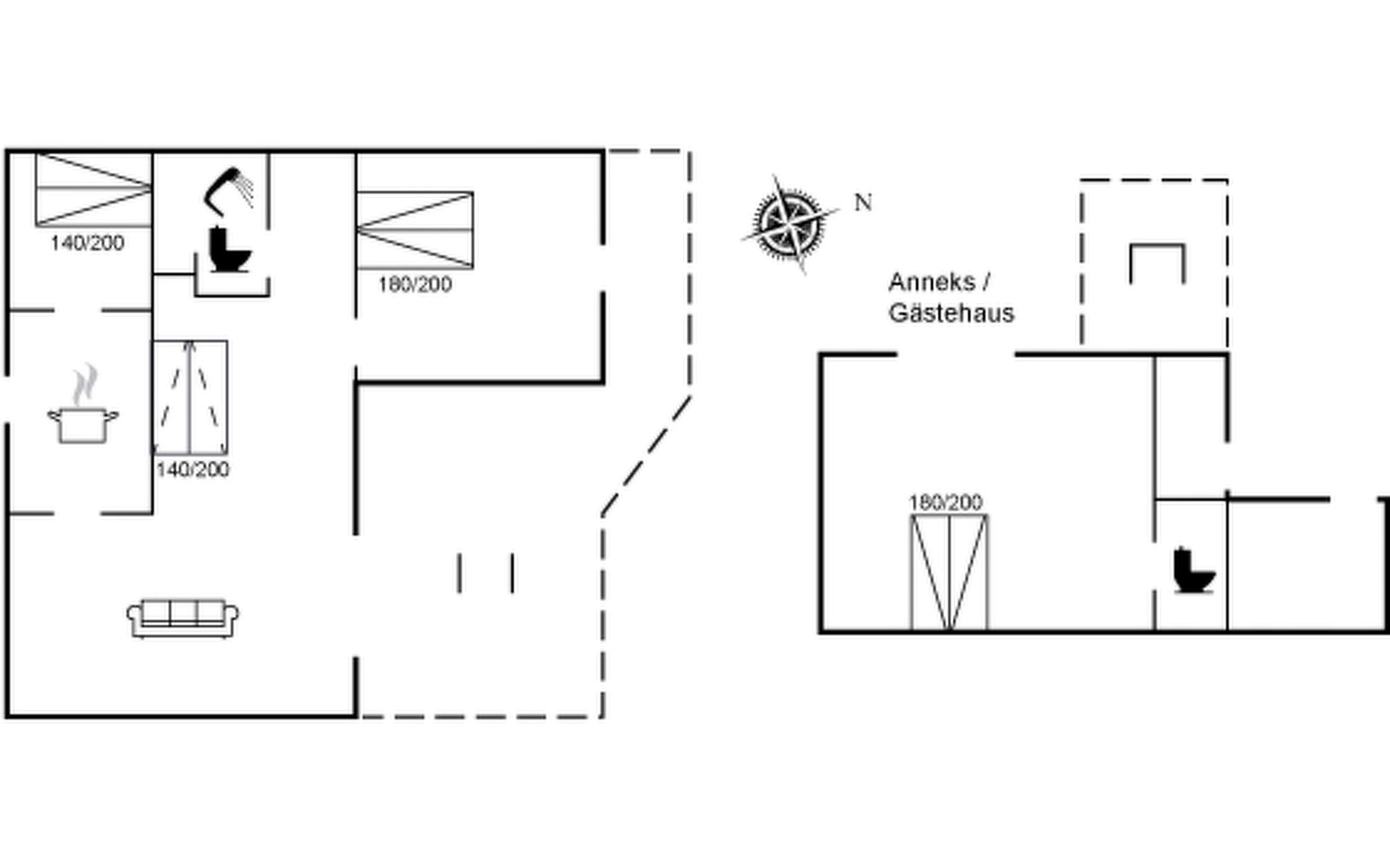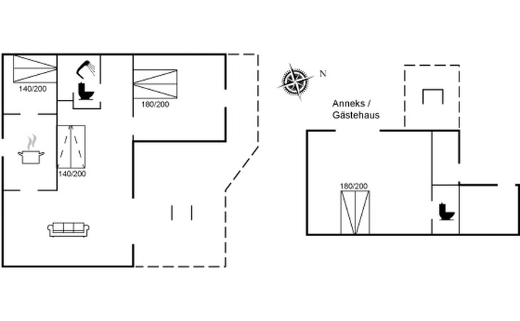 Einfamilienhaus, Baujahr 1994. 325 m vom Meer. Zur Alleinbenutzung: Grundstück 1'284 m2, gepflegter Garten. Terrasse (50 m2), Grill. Im Hause: Waschmaschine. Parkplatz beim Haus. Lebensmittelgeschäft 5.7 km. Golfplatz 19.4 km. Der Besitzer akzeptiert keine Jugendgruppen.
