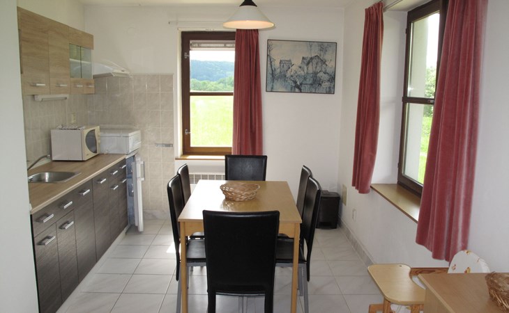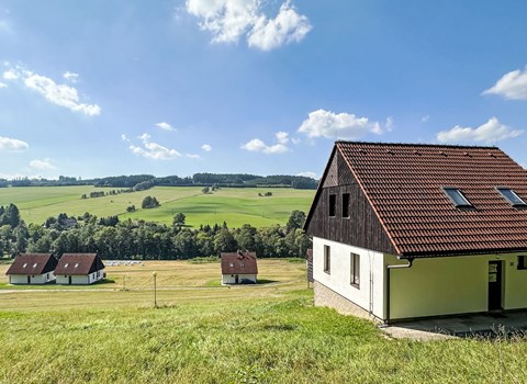 Stárkov 18 km von Náchod: Ferienanlage "Stárkov", 450 m.ü.M., Baujahr 1997, umgeben von Wiesen. 22 Häuser im Ferienresort. Am Ortsrand, sonnige, erhöhte Lage am Hang, direkt am Waldrand, 24 km vom See, 10 km vom Skigebiet, im Grünen. Zur Mitbenutzung: Grundstück 10 ha, Wiese, Teich, Schwimmbad (8 x 4 m, 150 cm tief, saisonale Verfügbarkeit: 15.Jun. - 16.Sep.). Tischtennis, Volleyball, Badminton, Volleyballfeld, Beachvolleyball, Sitzplatz, Grill, Feuerstelle, Kinderspielplatz (Rutschbahn, Schaukel, Sandkasten). In der Anlage: Empfang, Aufenthaltsraum, Bistro, Massage (extra). Billard, Spielzimmer, Tischfussball, Trampolin, Kiosk, Einstellraum für Fahrräder, Wäscherei (extra), Fahrradverleih. Wäschewechsel (zusätzlich extra). Handtuchwechsel (zusätzlich extra). Wohnungsreinigung möglich (extra). Brötchenservice möglich auf Anfrage. Einkaufsservice vor Anreise möglich. Zufahrt bis 200 m zum Haus. Zentralparkplätze. Lebensmittelgeschäft 1 km, Supermarkt 8 km, Restaurant 1 km, Café 10 m, Bushaltestelle "Stárkov, mlékárna" 50 m, Bahnstation "Hronov" 8 km, Hallenbad 18 km. Golfplatz (9 Loch) 26 km, Segelschule 26 km, Tennis 500 m, Minigolf, Reitstall 10 m, Wanderwege ab Haus, Radweg 10 m, Skilift 6 km, Skischule 17 km, Langlaufloipe 100 m, Eisfeld 8 km, Kinderspielplatz 10 m. Nahe gelegene Sehenswürdigkeiten: Adršpašsko-teplické skály 15 km, Náchod 17 km, Broumovské stěny 17 km, Ratibořice a Babiččino údolí 22 km, Broumov 24 km, Relaxpark Pec pod Sněžkou 50 km. Bekannte Skigebiete sind gut erreichbar: Radvanice 10 km, Petříkovice 17 km, Mladé Buky 36 km. Bekannte Seen in der Umgebung sind gut erreichbar: vodní nádrž Rozkoš 26 km. Bitte beachten: geeignet für Familien, Babyausstattung auf Anfrage (inkl.). Be- und Entladen am Ferienhaus möglich. Das Foto ist nur ein Hausbeispiel. Alle Häuser/Wohnungen sind individuell eingerichtet.