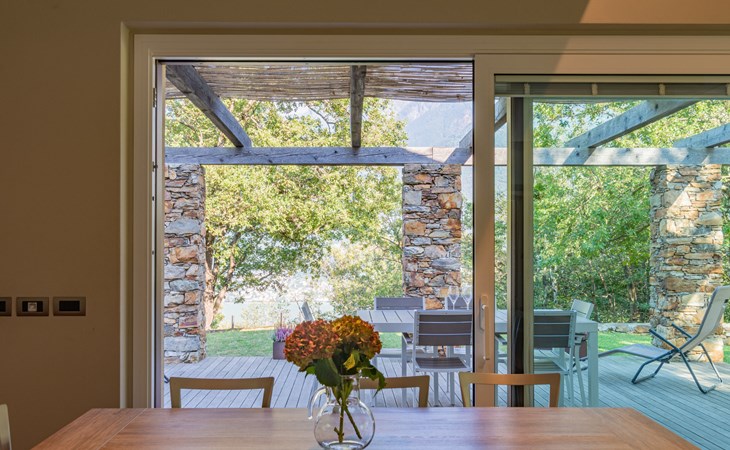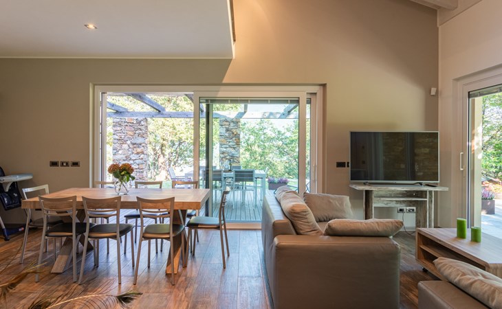 Modernes, komfortables Rustico "Motto dei Dossi", 420 m.ü.M., auf 2 Stockwerken. Im Weiler Albonico, 9 km vom Zentrum von Sorico, 70 km vom Zentrum von Como, 55 km vom Zentrum von Lecco, alleinstehende Lage, 9 km vom See, im Wald. Zur Alleinbenutzung: Grundstück 3 ha, Wiese. Zufahrt (200 m Naturweg). Parkplatz beim Haus auf dem Grundstück. Supermarkt 9 km, Bahnstation "Colico" 17 km, Sandstrand "Sorico (La Punta)" 9 km, Freibad 11 km. Jacht-Hafen 11 km, Golfplatz (18 Loch) 40 km, Surfschule 9 km, Reitstall 9 km, Wanderwege ab Haus 20 m. Nahe gelegene Sehenswürdigkeiten: Tempieto di San Fedelino. Bekannte Seen in der Umgebung sind gut erreichbar: Lago di Mezzola. Wandergebiete: Monte Berlinghera, Alpe di Mezzo, Stagni di Peschiera. Bitte beachten: Fahrzeug empfohlen.