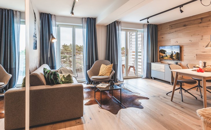 Moderne Ferienanlage "Mariandl am Meer", auf 6 Stockwerken, Baujahr 2019. 128 Wohnungen in der Residenz. Im Ortsteil Prora, 4 km vom Zentrum von Binz, 12 km vom Zentrum von Bergen, 38 km vom Zentrum von Stralsund, 100 m vom Meer, direkter Zugang zum Strand. Zur Mitbenutzung: Schwimmbad, Hallenbad (10 x 6 m, saisonale Verfügbarkeit: 01.Jan. - 31.Dez.). In der Anlage: Empfang, Restaurant, Sauna, Wellnessbereich, Fahrstuhl, Einstellraum für Fahrräder, Zentralheizung. Frühstück möglich (extra). Parkplatz (beschränkte Anzahl, extra) auf dem Grundstück, Gemeinschaftsgarage (extra). Einkaufsgeschäft 1.2 km, Supermarkt 4 km, Bushaltestelle "Prora, Südstrasse" 1.7 km, Sandstrand 100 m. Golfplatz (18 Loch) 6 km. Restaurant mit eingeschränkten Öffnungszeiten.