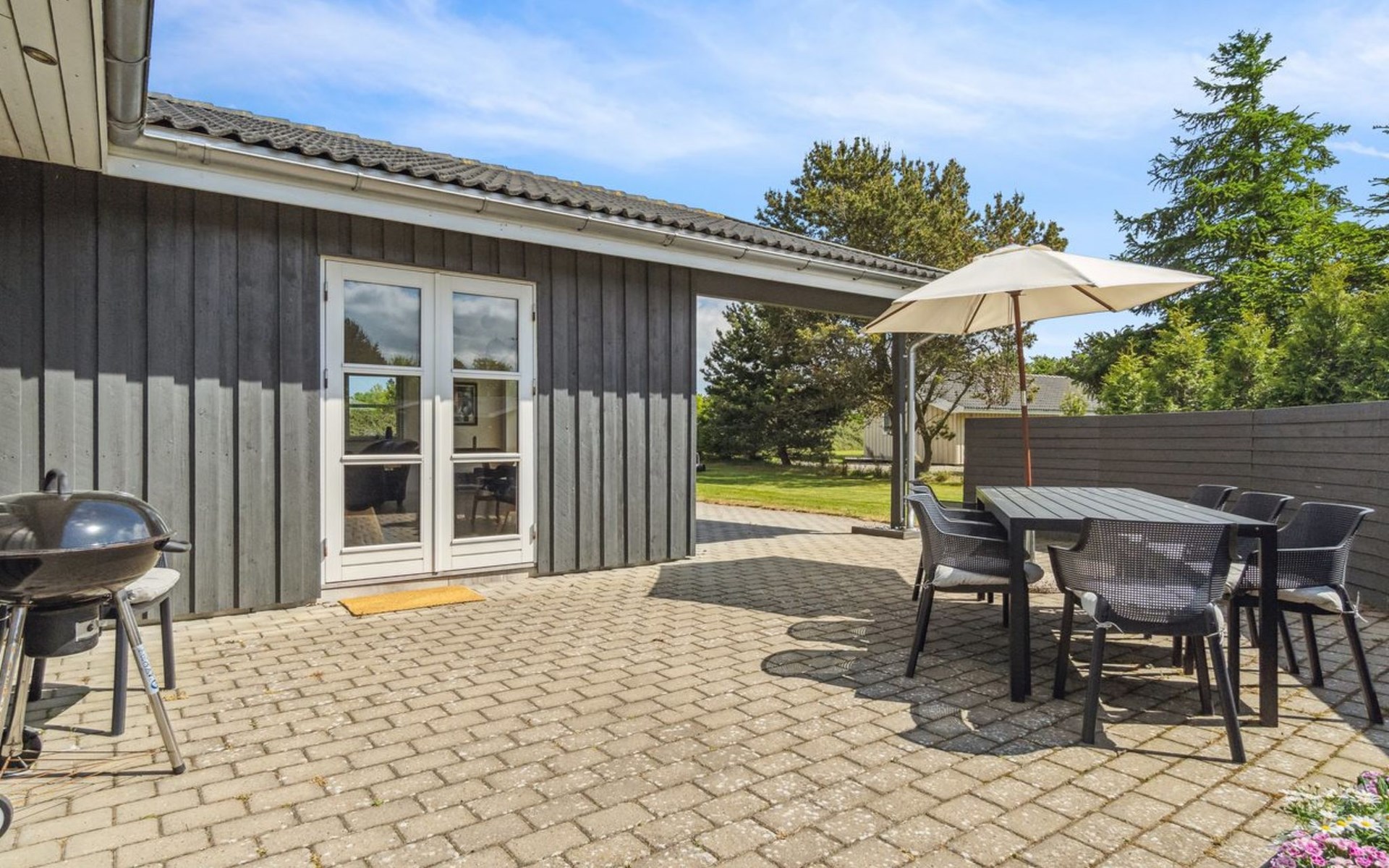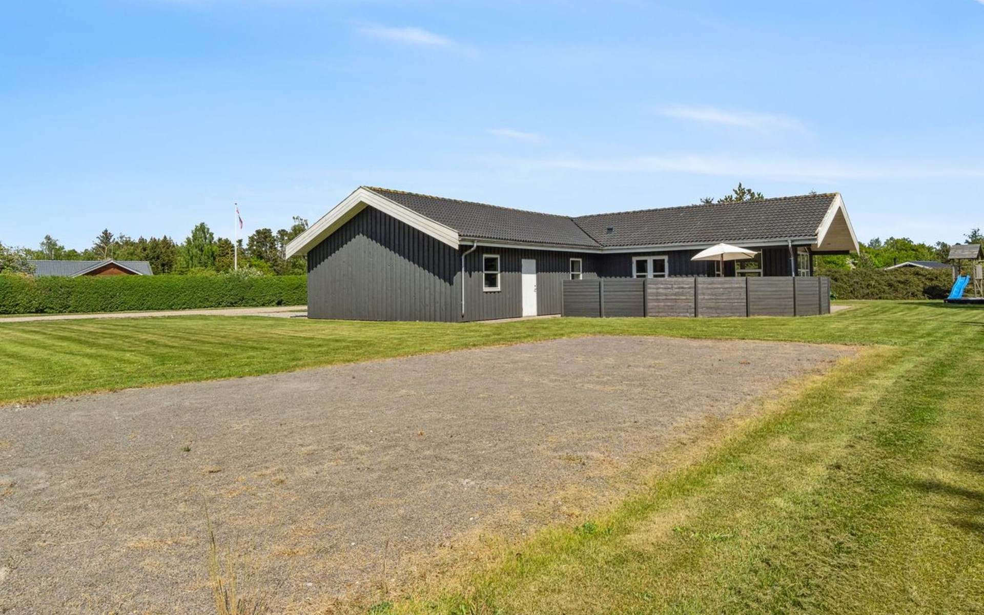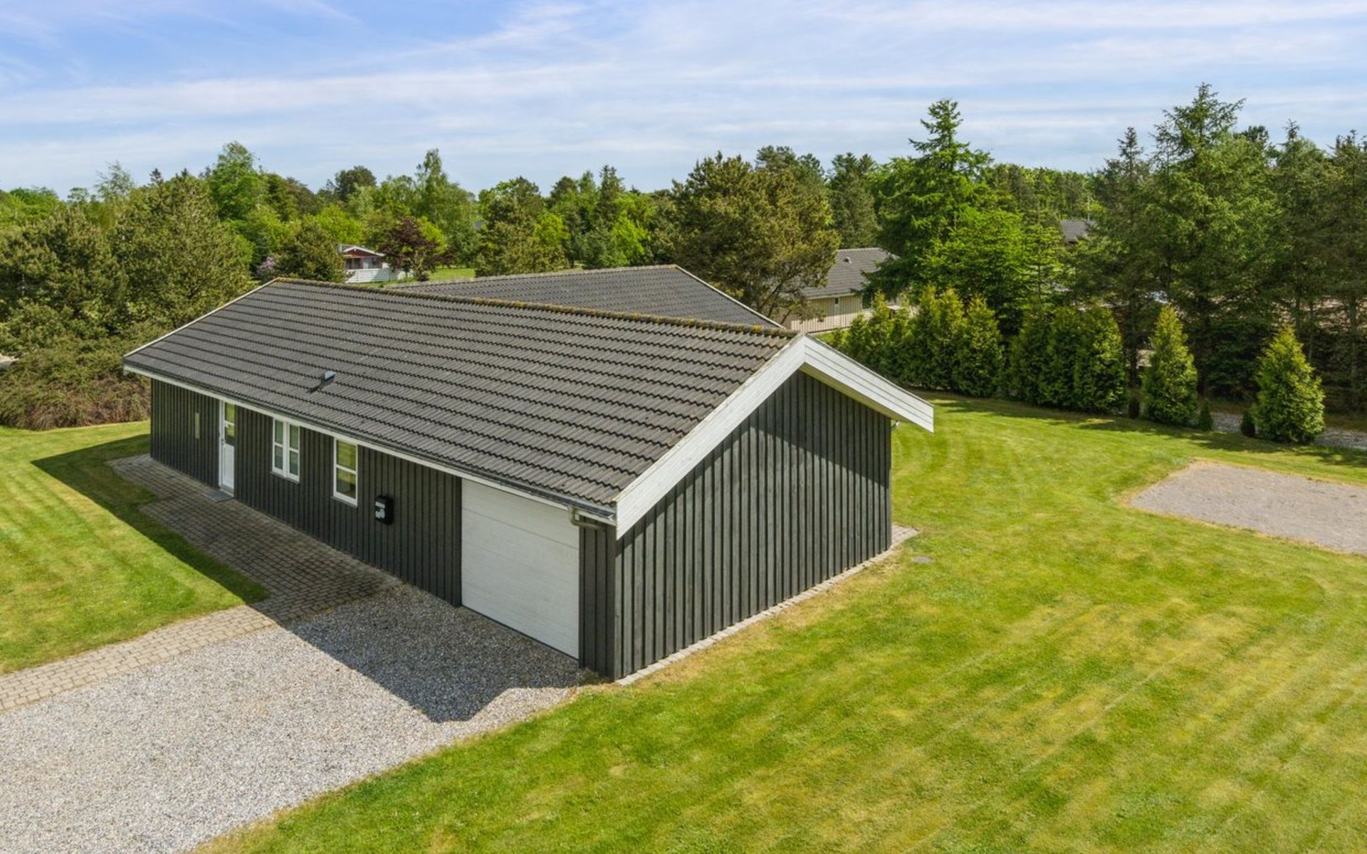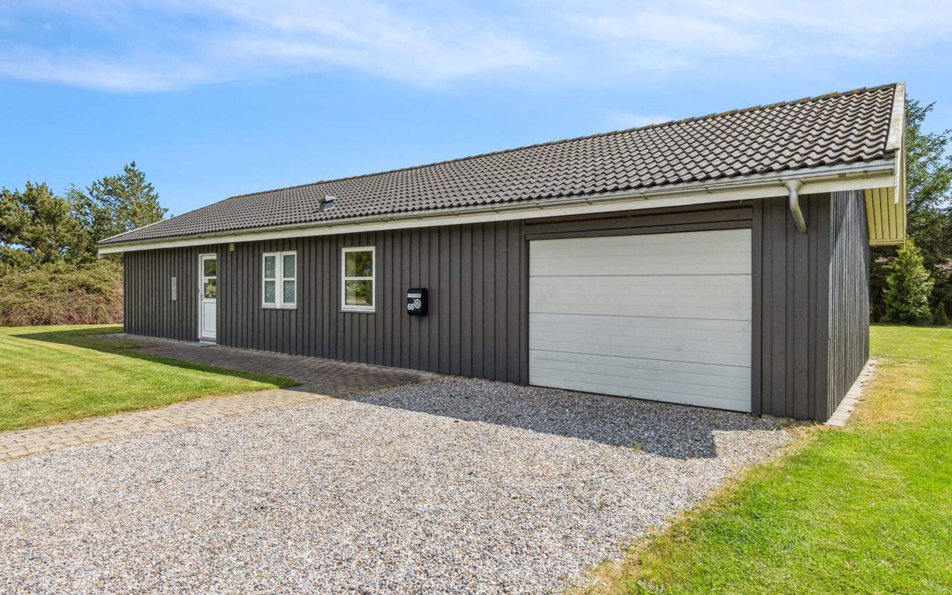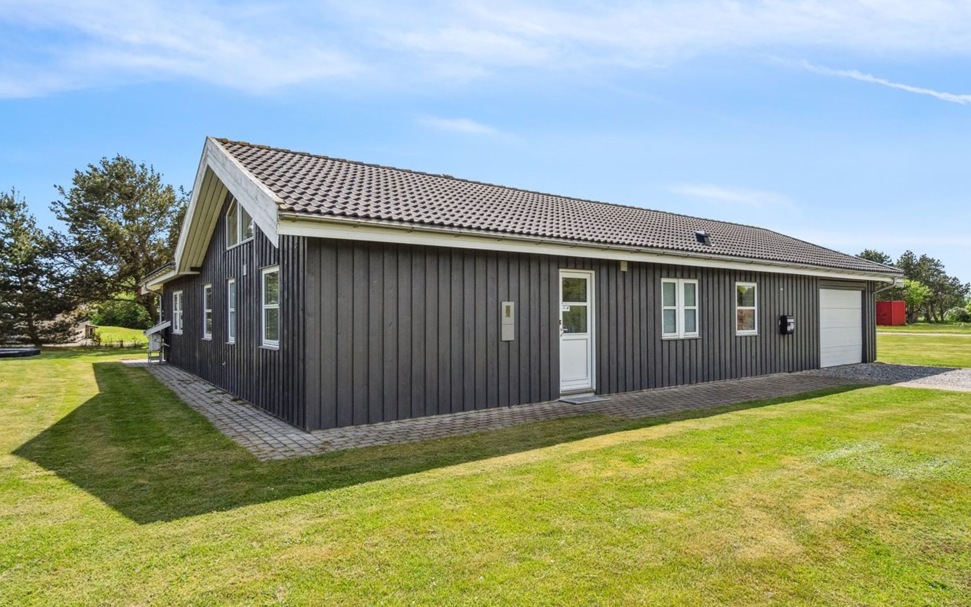Einfamilienhaus, Baujahr 2014. 5 km vom Meer. Zur Alleinbenutzung: naturbelassenes Grundstück 1'646 m2. Terrasse (40 m2), Grill, Kinderspielplatz (Schaukel). Im Hause: Trampolin, Waschmaschine, Wäschetrockner. Parkplatz beim Haus. Lebensmittelgeschäft 1 km. Der Besitzer akzeptiert keine Jugendgruppen.