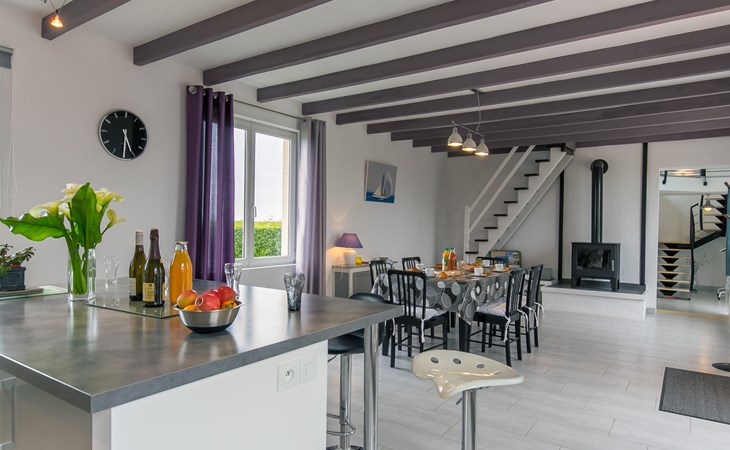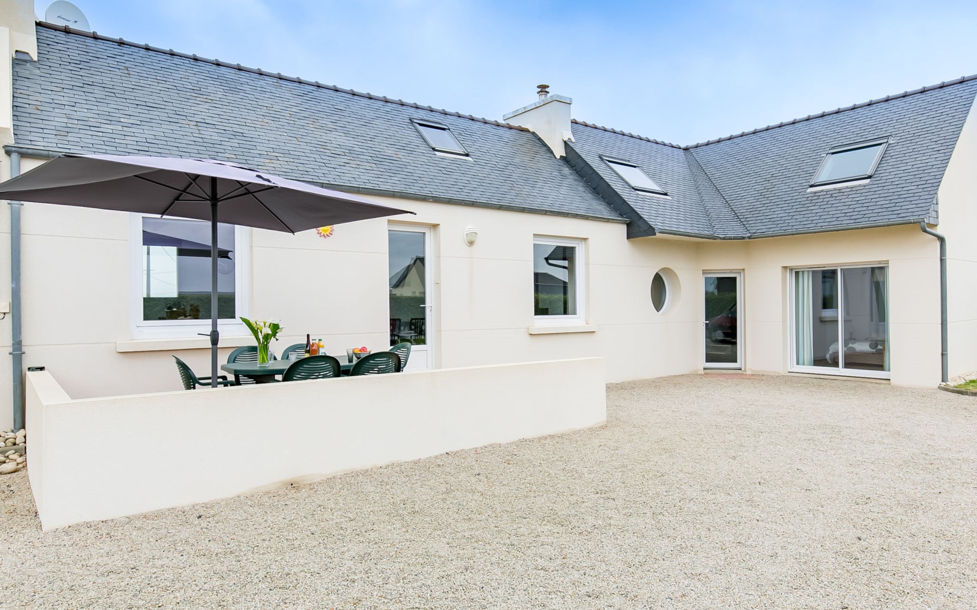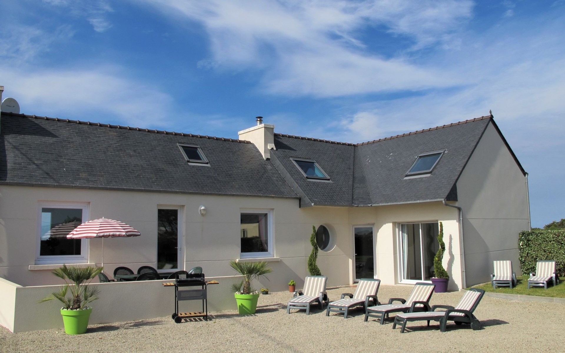 Schönes, gemütliches Einfamilienhaus "Brise Marine". Im Ortsteil Ruguel, 4 km vom Zentrum von Cléder, 10 km vom Zentrum von St. Pol-de-Léon, 25 km vom Zentrum von Morlaix, 400 m vom Meer, 400 m vom Strand, in einer Sackgasse, Richtung Süden. Zur Alleinbenutzung: Grundstück 600 m2 (eingezäunt), gepflegter Garten Rasen und Pflanzen. Im Hause: Einstellraum für Fahrräder. Abstellraum vorhanden. Parkplatz (für 2 Autos) auf dem Grundstück. Einkaufsgeschäft 3.7 km, Lebensmittelgeschäft 3.7 km, Supermarkt 4 km, Restaurant 3.3 km, Bäckerei 3.7 km, Café 3.5 km, Bushaltestelle 3.7 km, Sandstrand "Plage de Crac'h Zu" 400 m, Hallenbad 10 km. Golfplatz (9 Loch) 7 km, Tennis 3 km, Wanderwege ab Haus 100 m. Nahe gelegene Sehenswürdigkeiten: Parc de Loisirs 2 km, Roscoff, Jardin botanique, Île de Batz 16 km, Meneham 27 km, Oceanopolis Brest 60 km, Vallée des Saints (Centre Bretagne) 76 km. Wandergebiete: GR34, sentier des douaniers 399 m.