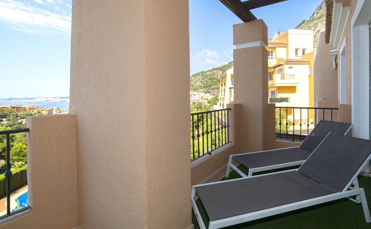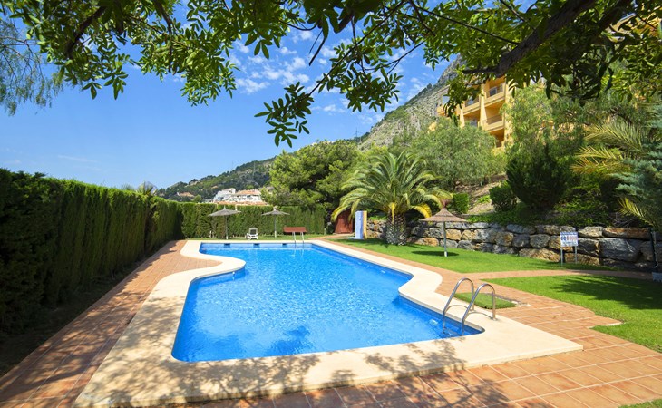 Mascarat: Schönes Appartementhaus "Residencial Jazmines". Im Ort, 6 km vom Zentrum von Calpe, am Ortsrand, 7 km vom Zentrum von Altea, ruhige, sonnige Lage, verkehrsberuhigte Zone, 950 m vom Meer, 950 m vom Strand. Zur Mitbenutzung: Grundstück (eingezäunt), Liegewiese, wunderschöner Garten zum Entspannen, Schwimmbad (16 x 9 m, saisonale Verfügbarkeit: 01.Jan. - 31.Dez.). Aussendusche. Im Hause: Fahrstuhl. Supermarkt 2.8 km, Restaurant 1.8 km, Bushaltestelle 5.4 km, Sandstrand "Playa Arenal Calpe" 6.5 km, Felsstrand "Playa Mascarat" 950 m. Sporthafen 1.8 km, Jacht-Hafen 1.8 km, Golfplatz (9 Loch) 8.5 km. Nahe gelegene Sehenswürdigkeiten: Aqualandia, Mundomar, Terra Mítica, Terra Natura, Benidorm Palace (Benidorm), Les Fonts de l'Algar, Castillo de Guadalest.