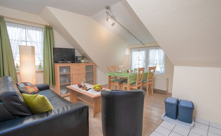 Mehrfamilienhaus. Im Ortszentrum von Norddeich, 1.2 km vom Meer, 1.2 km vom Strand. Im Hause: Zentralheizung. Parkplatz beim Haus. Supermarkt 300 m, Restaurant, Bäckerei 350 m, Café 700 m, Bushaltestelle 250 m, Bahnstation 1.4 km, Fähre 1.4 km, Sandstrand 1.2 km, Freibad 14 km, Hallenbad 1 km. Golfplatz (18 Loch) 8 km, Surfschule 1.2 km, Tennis 2 km, Minigolf 1 km.