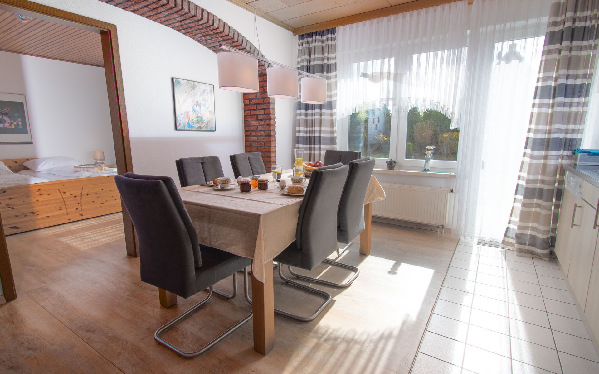 Mehrfamilienhaus. Im Ortszentrum von Norddeich, 1.2 km vom Meer, 1.2 km vom Strand. Im Hause: Zentralheizung. Parkplatz beim Haus. Supermarkt 300 m, Restaurant, Bäckerei 350 m, Café 700 m, Bushaltestelle 250 m, Bahnstation 1.4 km, Fähre 1.4 km, Sandstrand 1.2 km, Freibad 14 km, Hallenbad 1 km. Golfplatz (18 Loch) 8 km, Surfschule 1.2 km, Tennis 2 km, Minigolf 1 km.