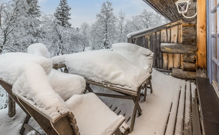 The 75 square meter apartment has a kitchen/living room, 2 bedrooms, a fireplace room, a bathroom, a sauna, 2 toilets, a balcony and a terrace. In addition, there is a ski maintenance rack in the outdoor storage.