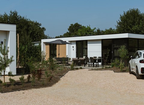 Das Domus 4 ist ein modernes und elegantes Ferienhaus mit allem Komfort, den man von zu Hause kennt. Dieses freistehende und ebenerdige Chalet ist für maximal 4 Personen geeignet. Der Gemeinschaftsraum verfügt über eine gemütliche Sitzecke mit Fernseher, eine geräumige Essecke und eine Küche mit Spülmaschine, Kombi-Mikrowelle und Kühlschrank mit Gefrierfach. Außerdem gibt es 2 Schlafzimmer im Chalet, 1 Schlafzimmer mit einem Doppelbett und 1 Schlafzimmer mit zwei Einzelbetten. Das Badezimmer hat eine Dusche, eine Toilette und ein Waschbecken. Außerdem gibt es eine separate Toilette. Draußen befindet sich ein großer Garten mit einer möblierten Terrasse. Direkt am Domus 4 kann 1 Auto geparkt werden und es gibt kostenloses WLAN.