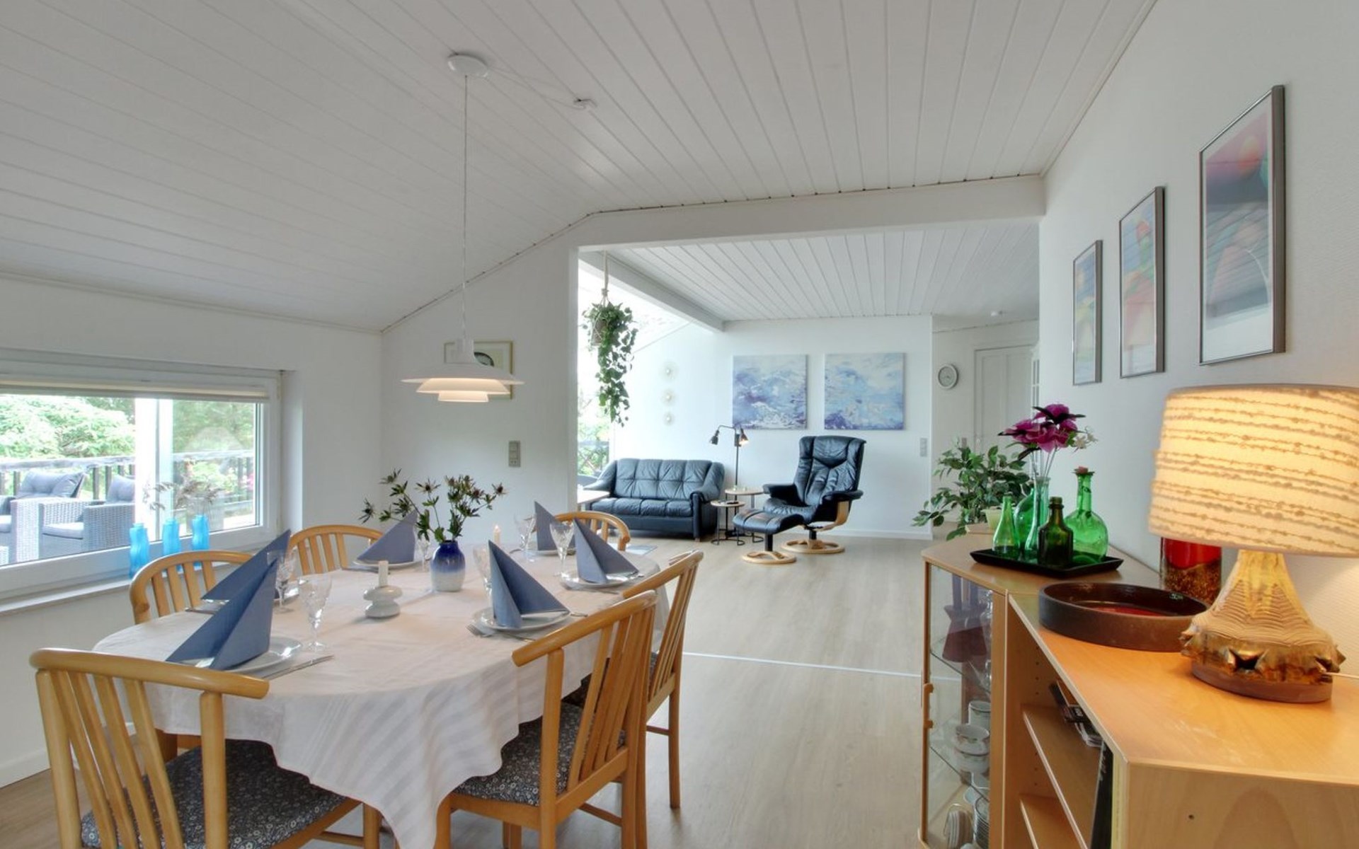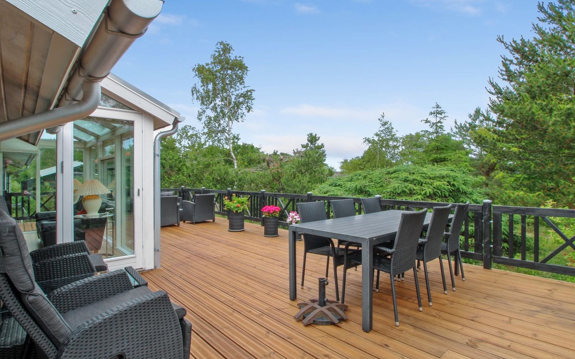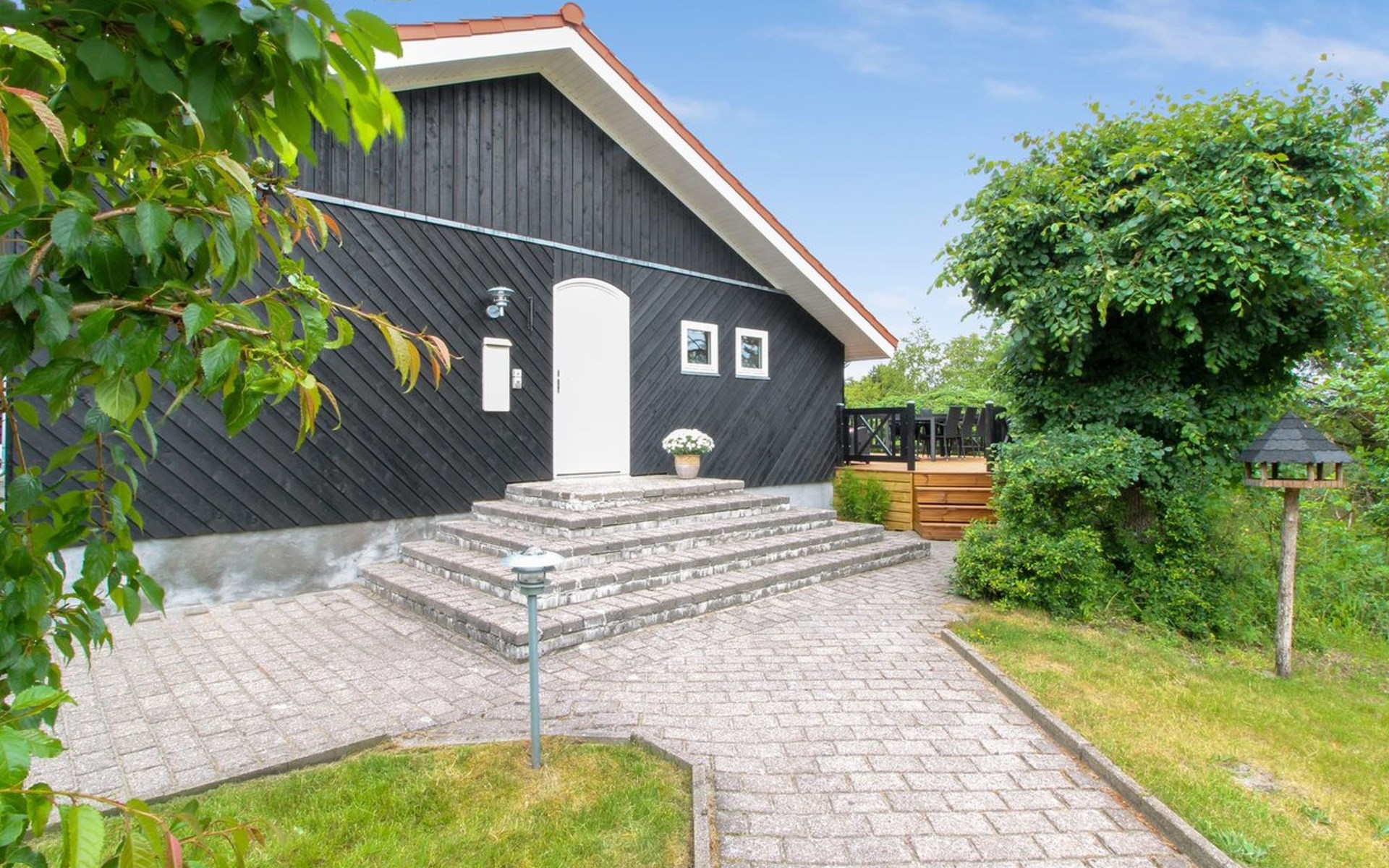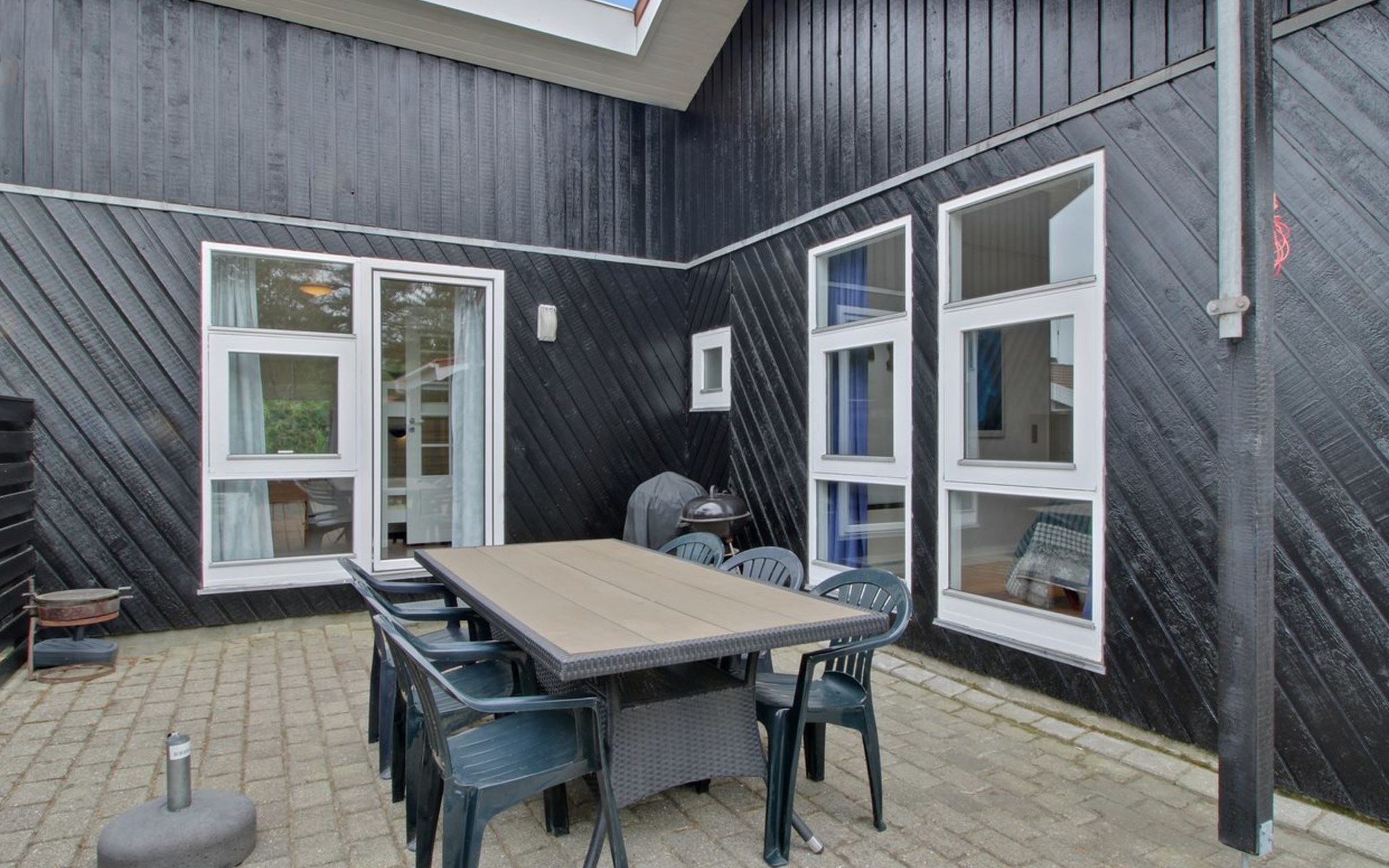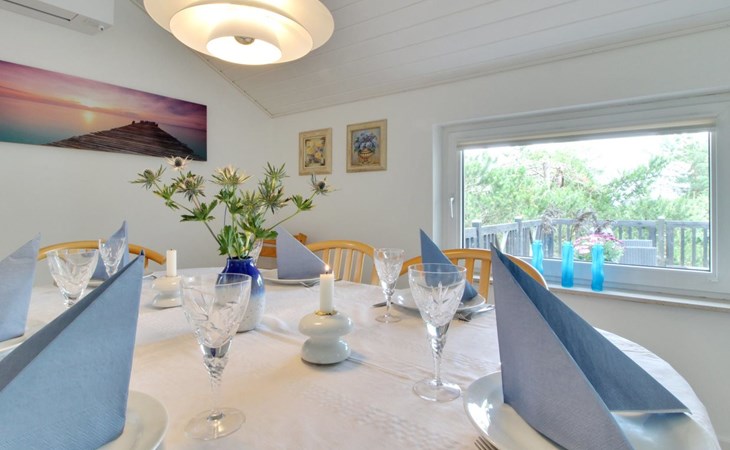 Einfamilienhaus, Baujahr 1991. 150 m vom Meer. Zur Alleinbenutzung: naturbelassenes Grundstück 1'100 m2. Terrasse (115 m2), Grill, Kinderspielplatz (Schaukel). Im Hause: Sauna, Tischfussball, Waschmaschine, Wäschetrockner. Parkplatz beim Haus. Lebensmittelgeschäft 3 km. Der Besitzer akzeptiert keine Jugendgruppen.