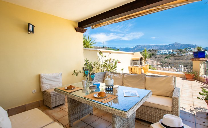 Gemütliches, komfortables Appartementhaus "Lily". Im Villenviertel, 1 km vom Meer, 1 km vom Strand, Richtung Süden. Zur Mitbenutzung: Schwimmbad nierenförmig (15 x 5 m, 110 - 180 cm tief, saisonale Verfügbarkeit: 01.Apr. - 31.Okt.). Aussendusche, Terrasse, Gartenmöbel, Grill. Einkaufsgeschäft 1.5 km, Lebensmittelgeschäft 1.5 km, Supermarkt 1.5 km, Einkaufszentrum 20 km, Restaurant 1.5 km, Bäckerei 1.5 km, Café 1.5 km, Fußgängerzone 2 km, Fahrradverleih 2 km, Biergarten 2 km, Bushaltestelle 900 m, Bahnstation "Malaga" 50 km, Fähre "Malaga" 50 km, Tauchzentrum 2 km. Sporthafen 18 km, Jacht-Hafen 18 km, Golfplatz (18 Loch) 23 km, Surfschule 18 km. Nahe gelegene Sehenswürdigkeiten: Nerja 3.5 km, Frigiliana 6 km, Torrox 10 km, Almuñecar 23 km, La Herradura 17 km, Torre del Mar 16 km. Bekannte Skigebiete sind gut erreichbar: Sierra Nevada 70 km. Wandergebiete: Sierra Tejeda, Sierra Alpujares, Las Alpujarras. Bitte beachten: Fahrzeug empfohlen. Der Besitzer akzeptiert keine Jugendgruppen. Be- und Entladen am Ferienhaus möglich.