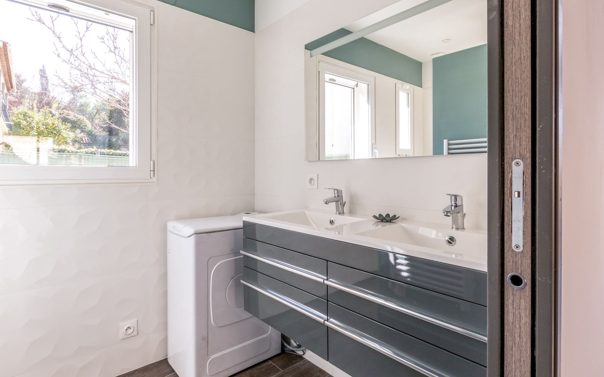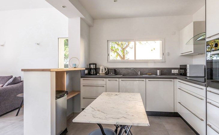 Toulon: Villa "Mont des oiseaux", Baujahr 1960, renoviert im Jahre 2019. Im Ort, 3 km vom Zentrum von de Toulon, ruhige, sonnige Lage, 3.5 km vom Meer, 3.5 km vom Strand, in einer Sackgasse. Zur Mitbenutzung: Grundstück (eingezäunt), öffentliche Parkplätze auf der Strasse. Einkaufsgeschäft, Lebensmittelgeschäft, Bushaltestelle 300 m, Fähre "pour la Corse" 3.2 km, Sandstrand "Mourillon" 3.5 km. Tennis 1.5 km, Luftseilbahn 3 km, Kinderspielplatz 1 km. Bitte beachten: Fahrzeug empfohlen.