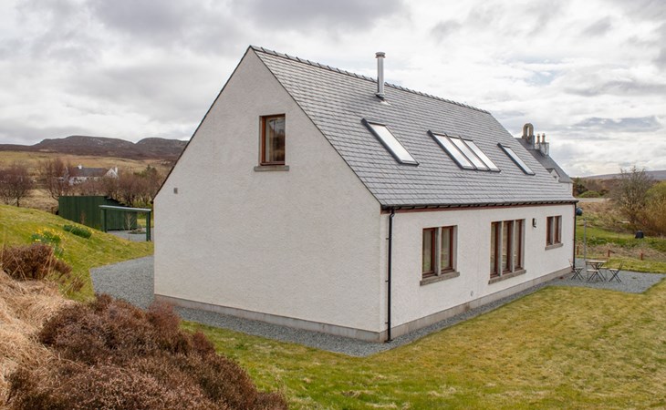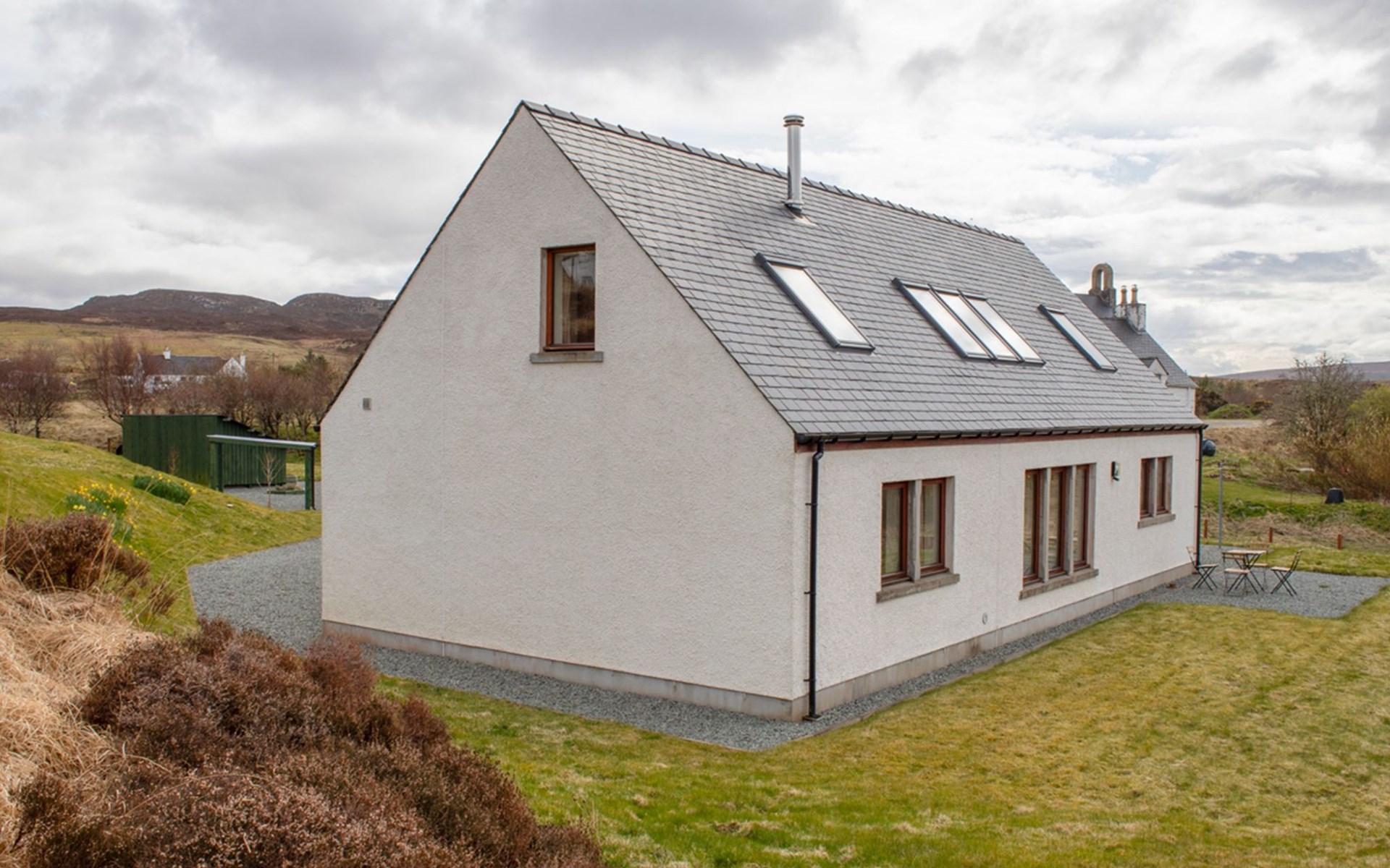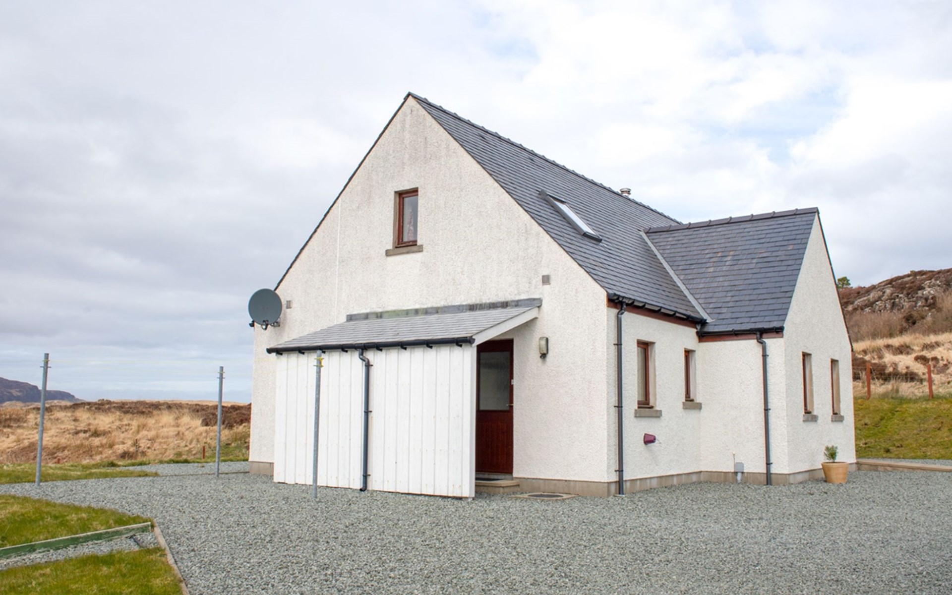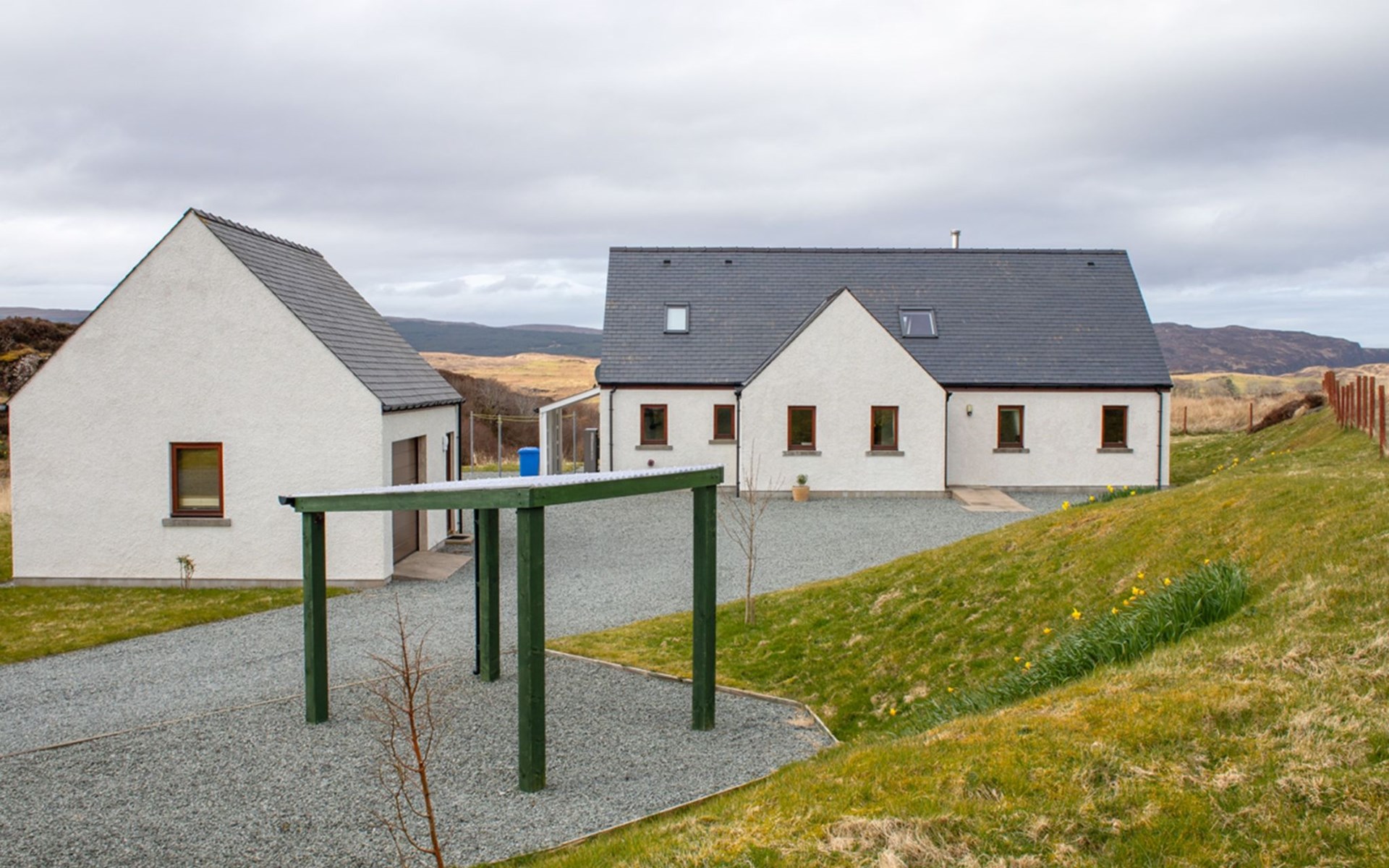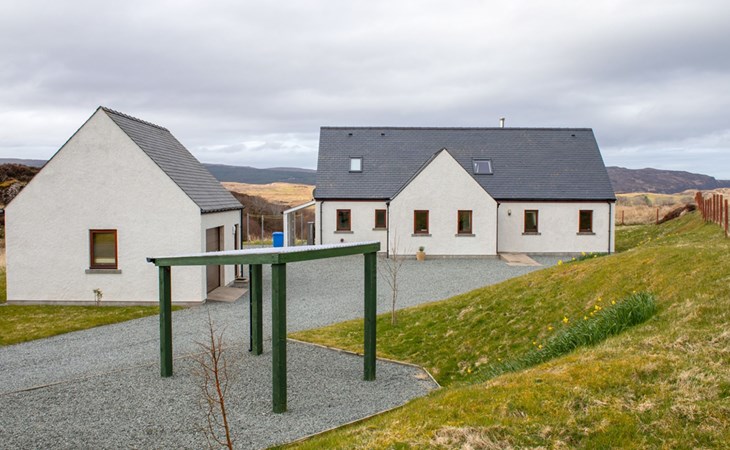 Sehr modernes, schönes, komfortables Chalet "Solace". Zur Alleinbenutzung: Garten (eingezäunt). Im Hause: Internetzugang, Wireless LAN, Zentralheizung, Wäscherei, Waschmaschine, Wäschetrockner. Parkplatz (für 3 Autos) beim Haus. Einkaufsgeschäft 16 km, Lebensmittelgeschäft 16 km, Restaurant 3 km, Bar 16 km, Café 16 km, Bushaltestelle "Church" 500 m. Nahe gelegene Sehenswürdigkeiten: Dunvegan Castle & Gardens 16 km, The Fairy Glen 30 km, Skye Museum of Island Life 37 km. Bitte beachten: Fahrzeug empfohlen.