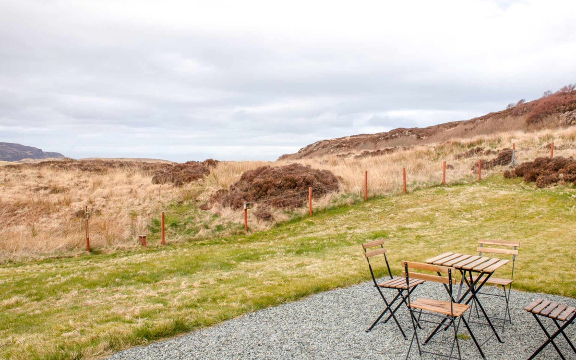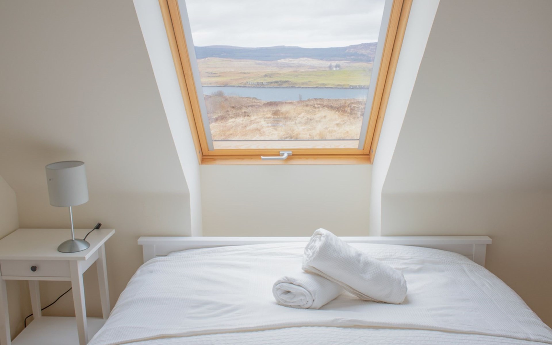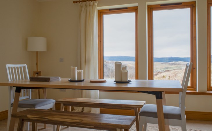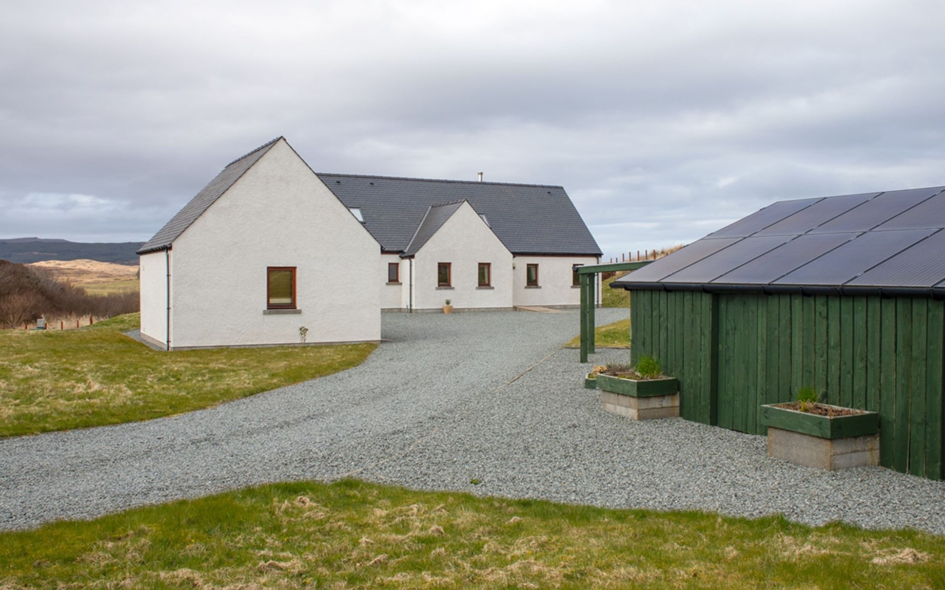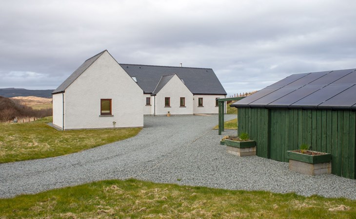 Sehr modernes, schönes, komfortables Chalet "Solace". Zur Alleinbenutzung: Garten (eingezäunt). Im Hause: Internetzugang, Wireless LAN, Zentralheizung, Wäscherei, Waschmaschine, Wäschetrockner. Parkplatz (für 3 Autos) beim Haus. Einkaufsgeschäft 16 km, Lebensmittelgeschäft 16 km, Restaurant 3 km, Bar 16 km, Café 16 km, Bushaltestelle "Church" 500 m. Nahe gelegene Sehenswürdigkeiten: Dunvegan Castle & Gardens 16 km, The Fairy Glen 30 km, Skye Museum of Island Life 37 km. Bitte beachten: Fahrzeug empfohlen.