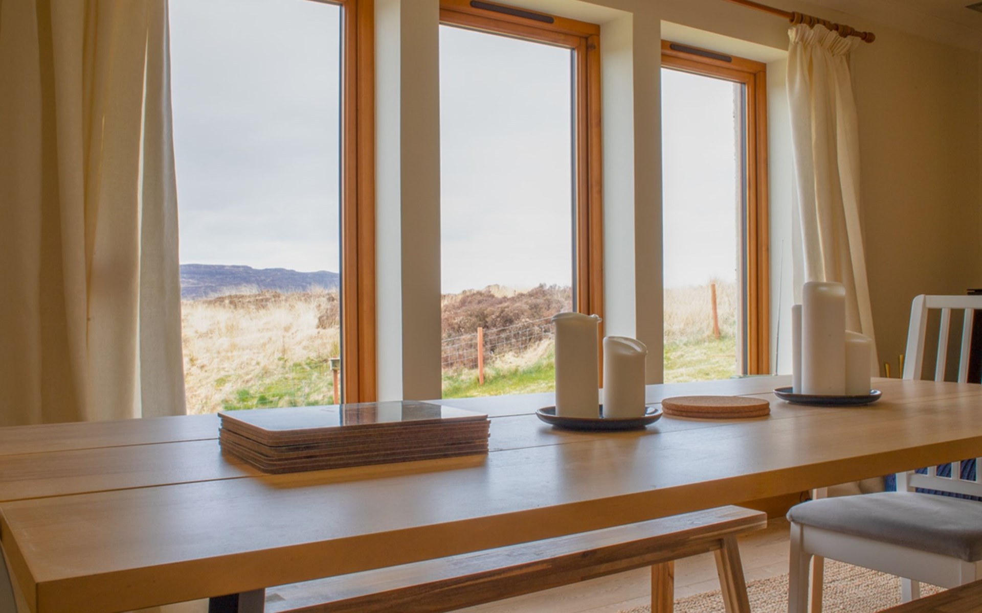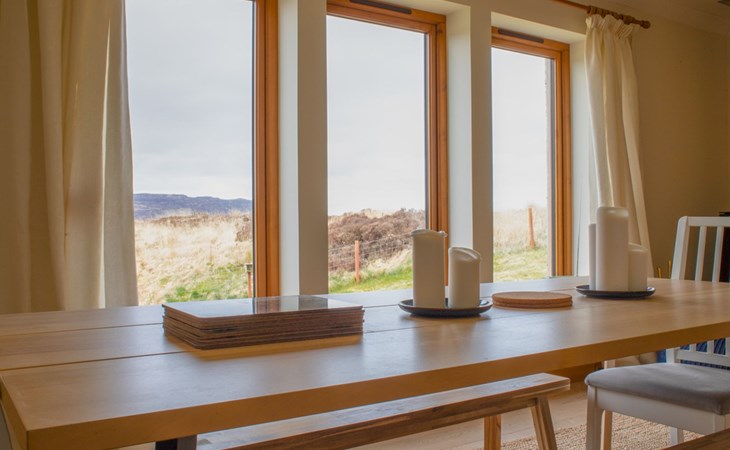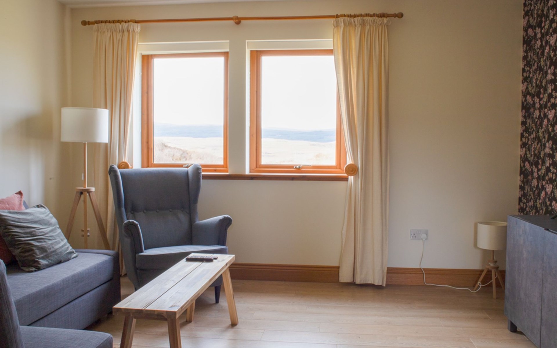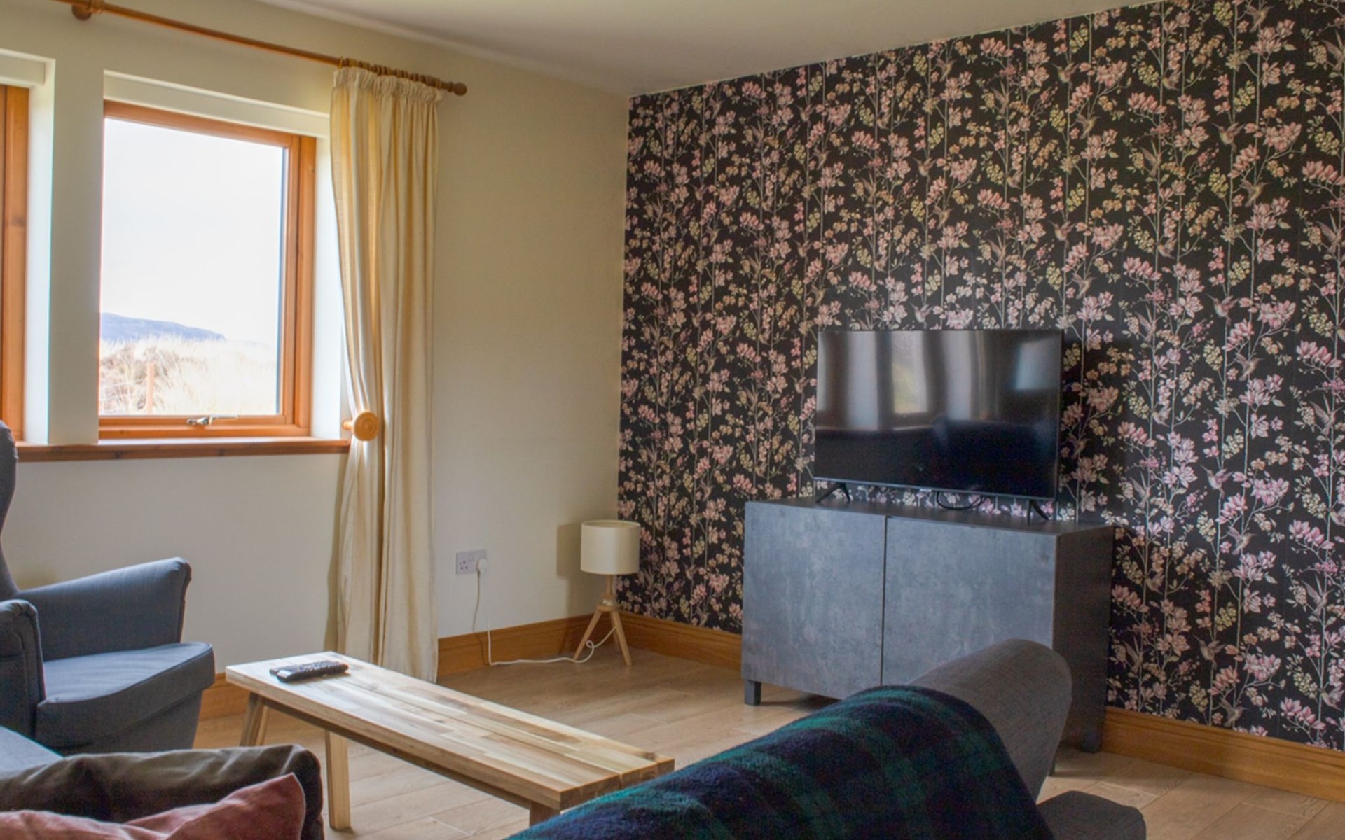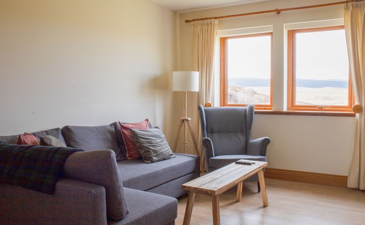 Sehr modernes, schönes, komfortables Chalet "Solace". Zur Alleinbenutzung: Garten (eingezäunt). Im Hause: Internetzugang, Wireless LAN, Zentralheizung, Wäscherei, Waschmaschine, Wäschetrockner. Parkplatz (für 3 Autos) beim Haus. Einkaufsgeschäft 16 km, Lebensmittelgeschäft 16 km, Restaurant 3 km, Bar 16 km, Café 16 km, Bushaltestelle "Church" 500 m. Nahe gelegene Sehenswürdigkeiten: Dunvegan Castle & Gardens 16 km, The Fairy Glen 30 km, Skye Museum of Island Life 37 km. Bitte beachten: Fahrzeug empfohlen.