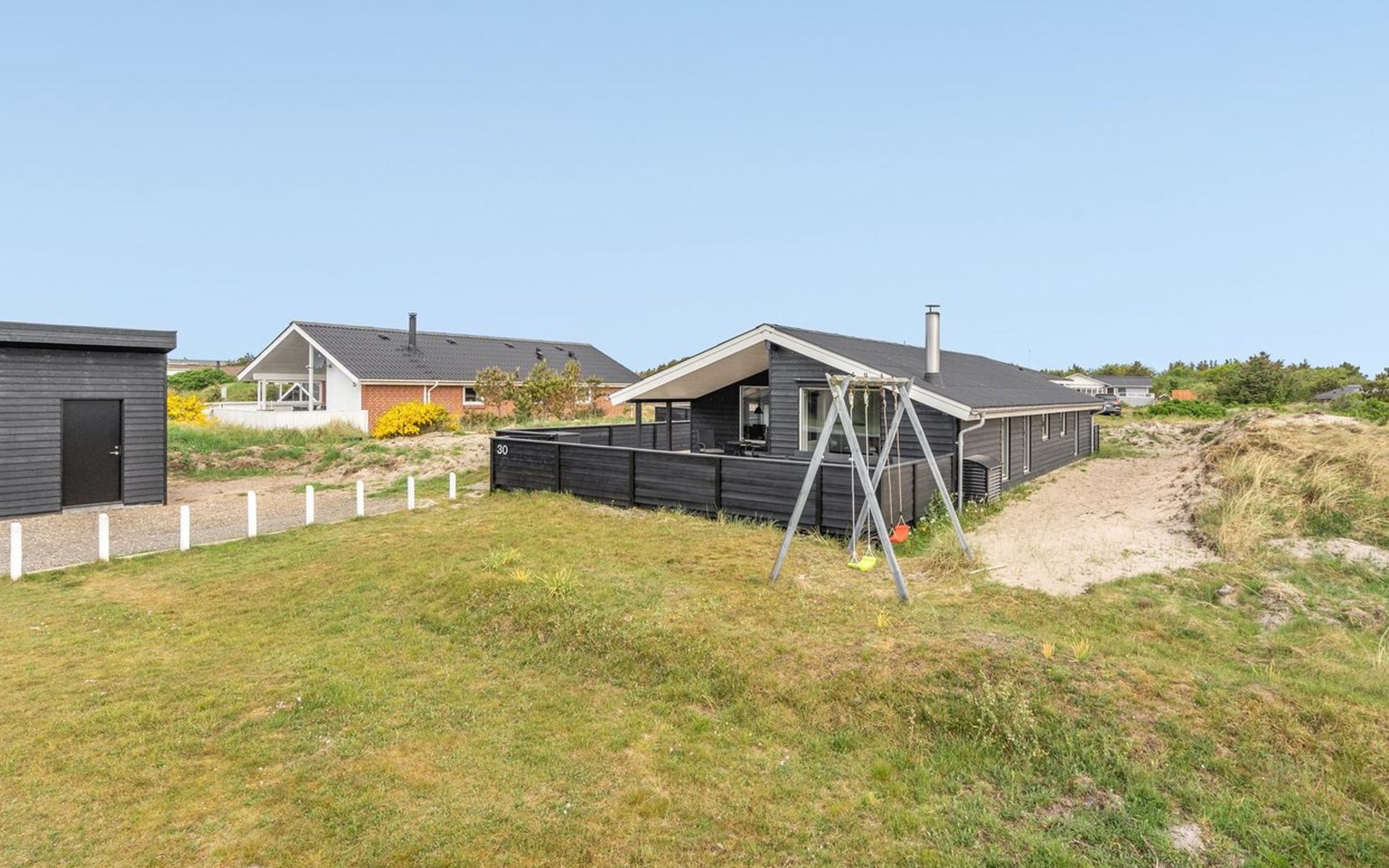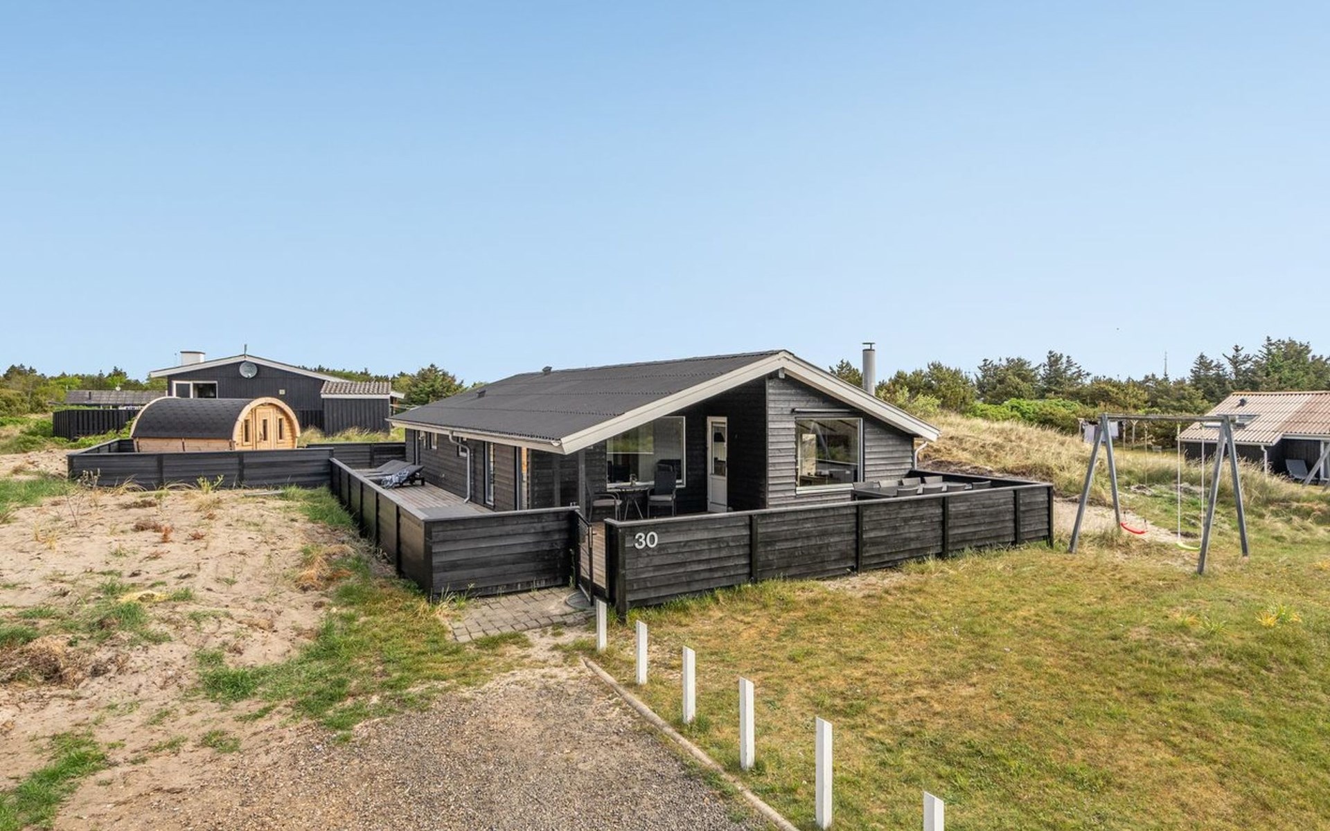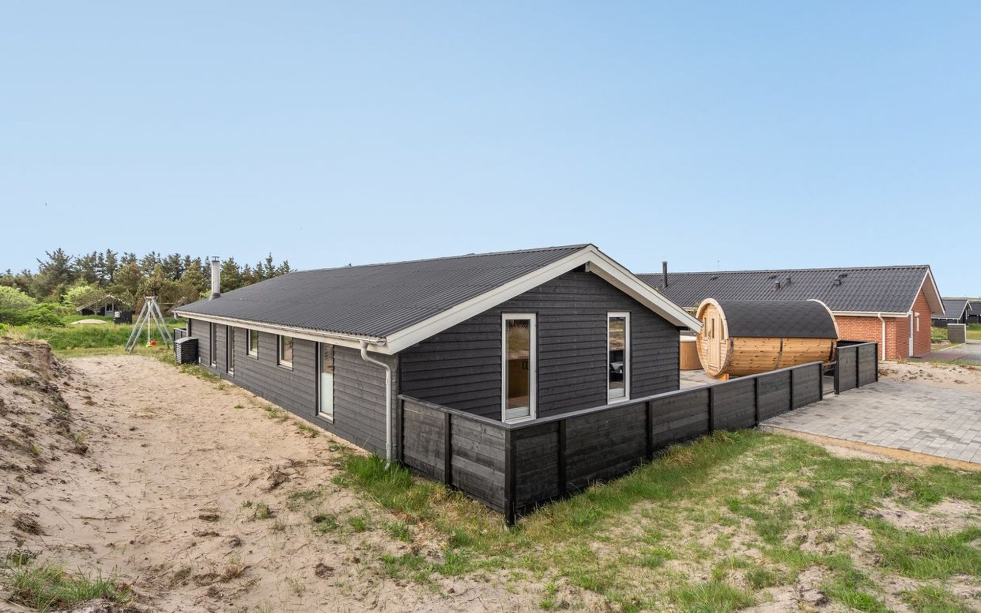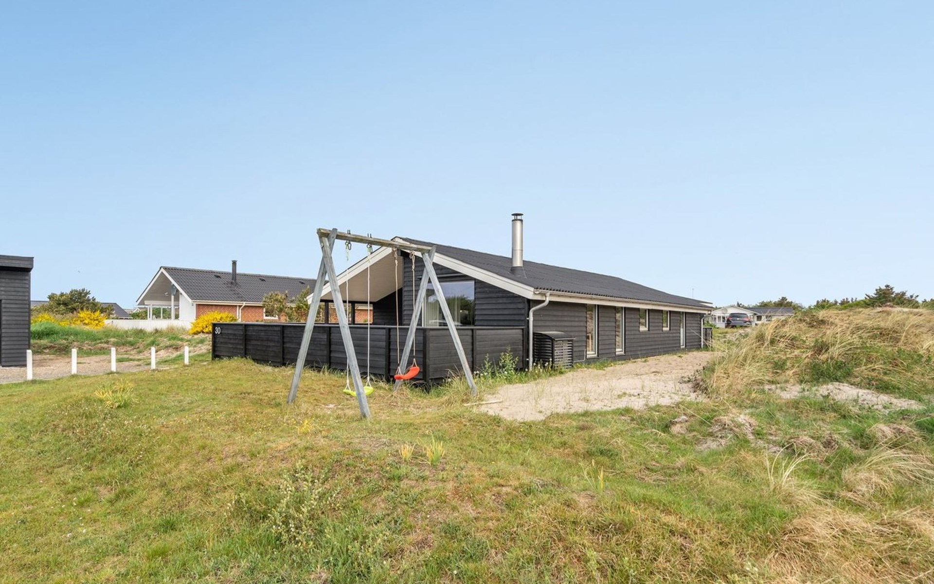 Einfamilienhaus, Baujahr 1984. 850 m vom Meer. Zur Alleinbenutzung: naturbelassenes Grundstück 1'251 m2. Terrasse (80 m2), Kinderspielplatz (Schaukel). Im Hause: Sauna, Waschmaschine, Wäschetrockner. Lebensmittelgeschäft 300 m. Der Besitzer akzeptiert keine Jugendgruppen.