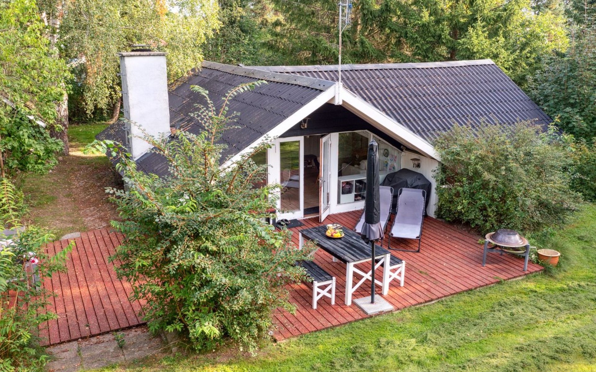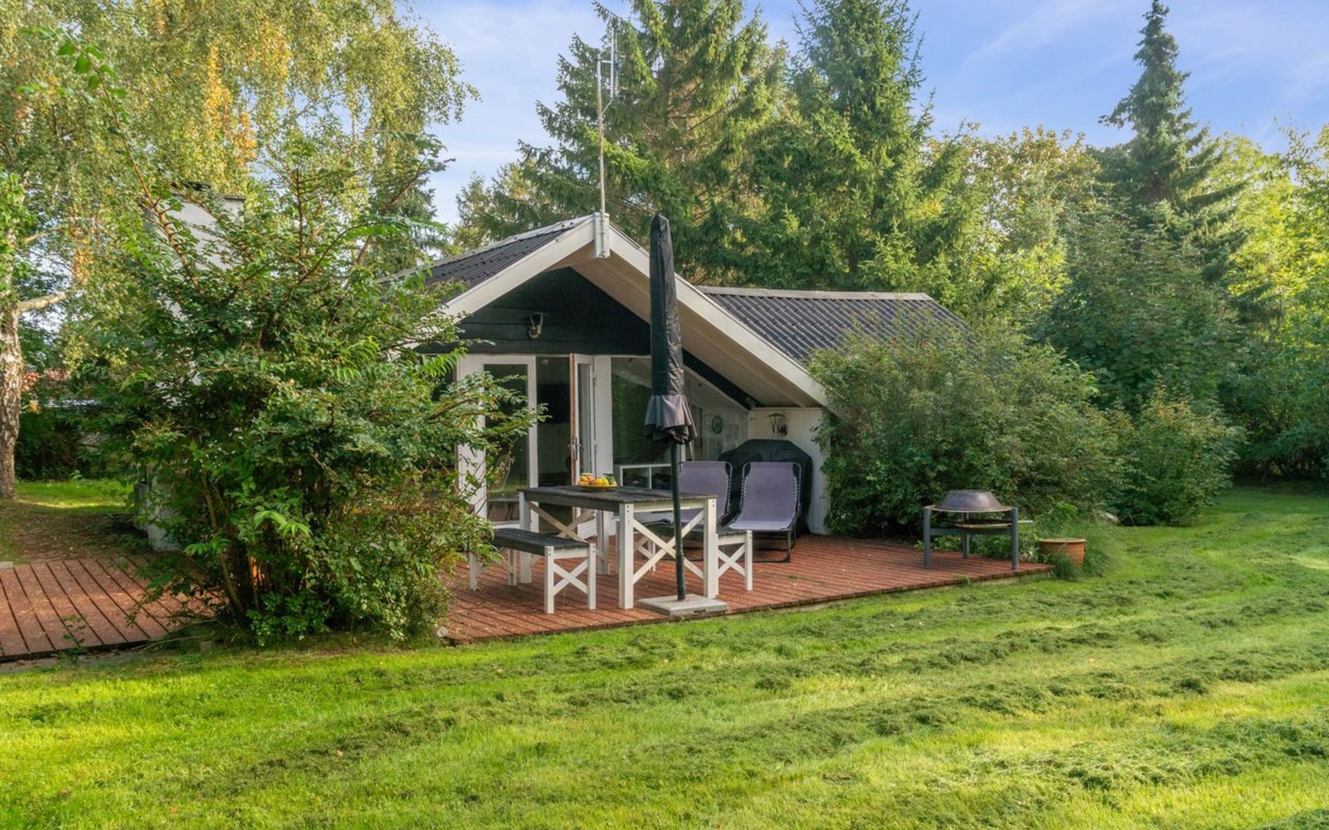 Einfamilienhaus, Baujahr 1976. 3.2 km vom Meer. Zur Alleinbenutzung: Grundstück 1'000 m2, gepflegter Garten. Terrasse (40 m2), Grill, Kinderspielplatz (Schaukel). Im Hause: Trampolin. Parkplatz beim Haus. E-Ladestation. Lebensmittelgeschäft 2 km. Golfplatz 14 km. Der Besitzer akzeptiert keine Jugendgruppen.
