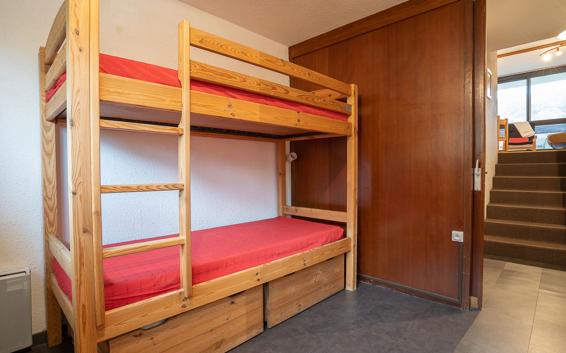 Residenz "Brelin". Erhöhte Lage, direkt am Skigebiet. In der Anlage: Restaurant, Einkaufsmöglichkeit, Fahrstuhl, Skiraum. Öffentliche Parkplätze. Lebensmittelgeschäft 20 m, Einkaufszentrum, Restaurant 250 m, Bushaltestelle "Gare routière Les Menuires" 1 km. Sportzentrum 500 m, Skisportanlagen 50 m, Skipisten 20 m. Bekannte Skigebiete sind gut erreichbar: 3 Vallées. Bitte beachten: Das Foto ist nur ein Hausbeispiel. Weitere Unterkünfte sind buchbar. Die Residenz "Brelin" ist mit dem Zentrum "La Croisette" durch einen öffentlichen Aufzug (gratis) verbunden.